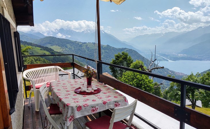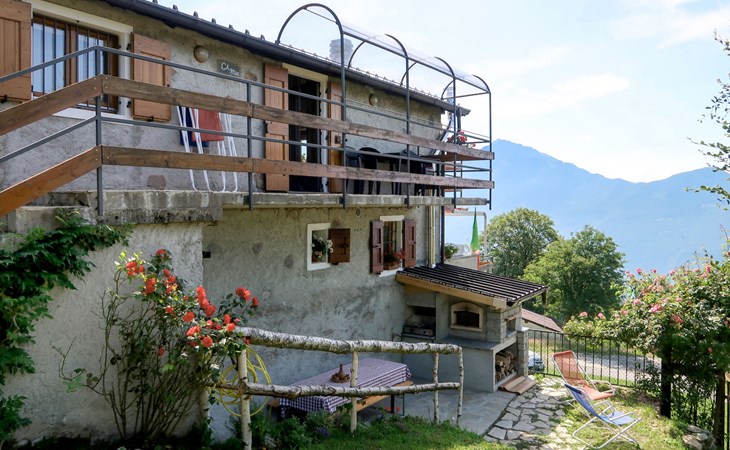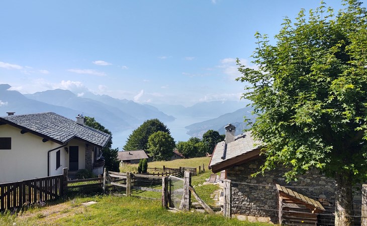 Rustic 3-family house "Mia e Giulia", 1'115 m a.s.l.. Above Peglio, in the hamlet Bodone 12 km from the centre of Gravedona, 60 km from the centre of Como, 64 km from the centre of Lecco, in an elevated position on a slope, 12 km from the lake, in the countryside. For shared use: property (fenced) with meadow. 5 km long narrow motor access (mountain road). Stepped path to the house. Parking at the house. Shop 5 km, supermarket 13 km, bus stop 5 km, railway station "Como" 60 km, pebble beach "Lido di Gravedona" 12 km, outdoor swimming pool 12 km. Marina 12 km, golf course (18 hole) 39 km. Nearby attractions: Chiesa Santa Maria del Tiglio Gravedona, Agriturismo Zertin. Well-known lakes can easily be reached: Lago di Mezzola. Hiking paths: Monte la Motta.