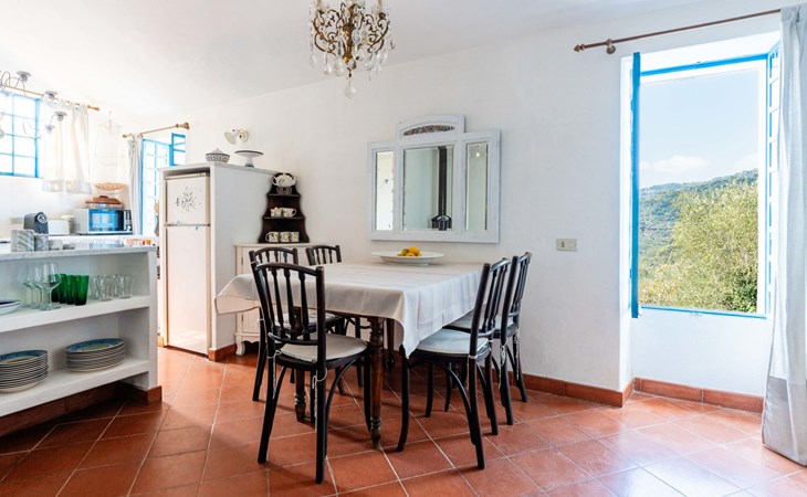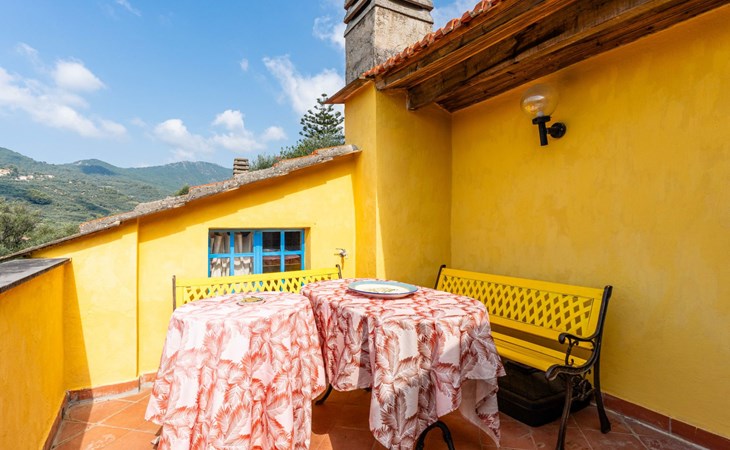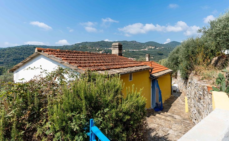 Cosy single-family house, 2 storeys. In the centre of Diano Borganzo 5 km from the centre of Diano Marina, 6 km from the centre of San Bartolomeo al Mare, 7 km from the centre of Cervo, in a secluded position, 5 km from the sea. 200 m long steep motor access. Public parking 50 m on the road. Grocery 3 km, supermarket 5 km, restaurant 3 km, bus stop 2.9 km. Please note: car recommended.