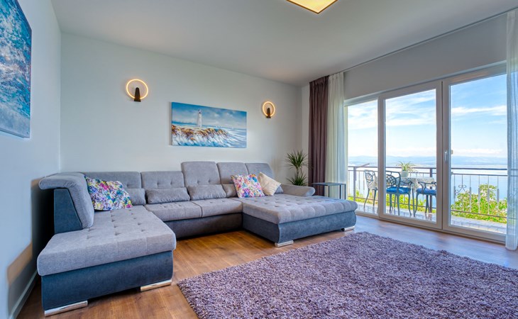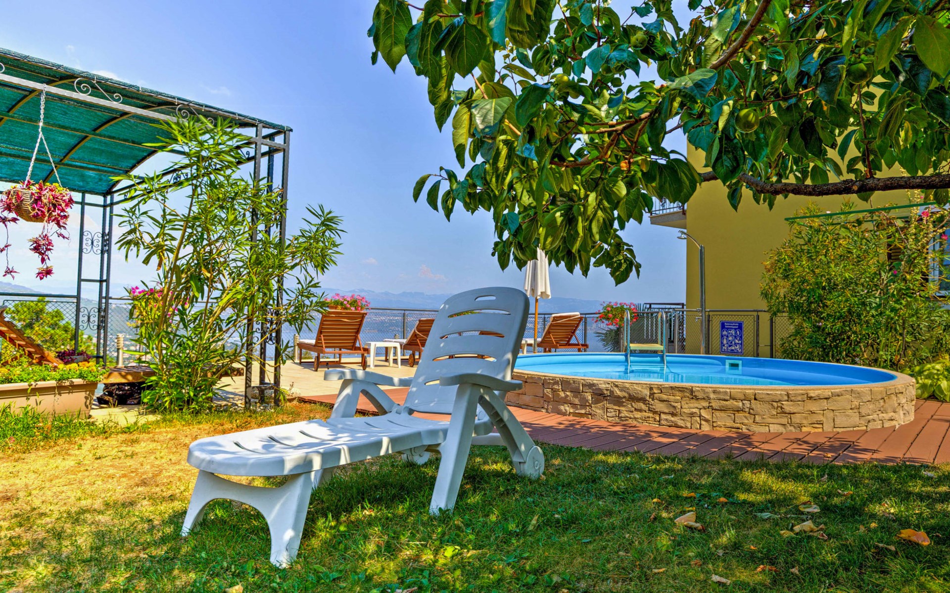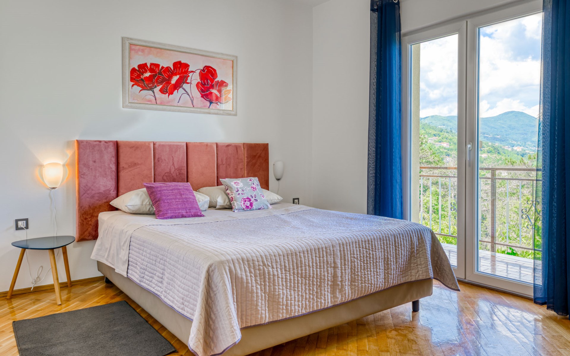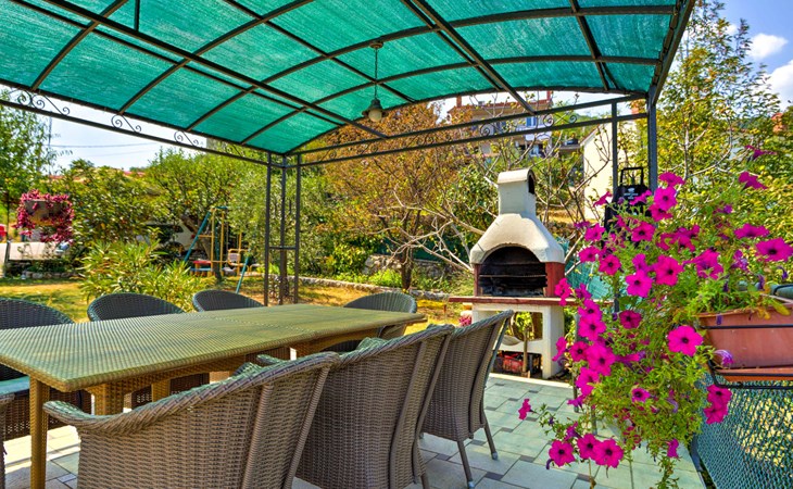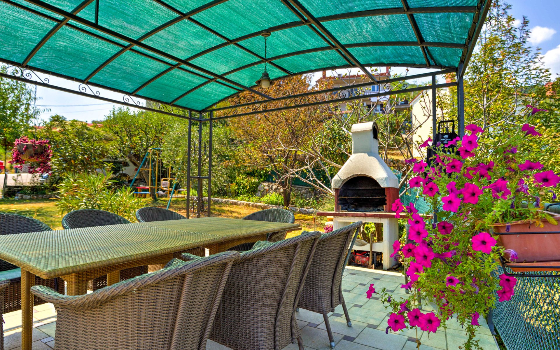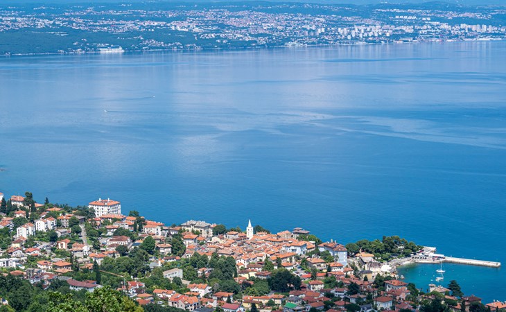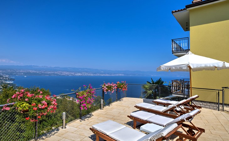 Tuliševica 5 km from Lovran: Apartment house "Laurus". Above Lovran, in the hamlet Tuliševica 8 km from the centre of Opatija, in a quiet, sunny position on a slope, 6 km from the sea, 6 km from the beach, in a cul-de-sac, in the countryside. For shared use: property 1'100 m2, lawn 200 m2, trees, swimming pool round (4 m diameter, depth 120 cm, seasonal availability: 01.May. - 15.Oct.). Terrace (30 m2), garden furniture, barbecue, children's playground (slide, swing). In the house: internet access, central heating system. Parking at the house on the premises. Shop 500 m, restaurant 1 km, bus stop 550 m, pebble beach 6 km, rocky beach 6 km, public bathing area 6 km. Tennis 6 km.