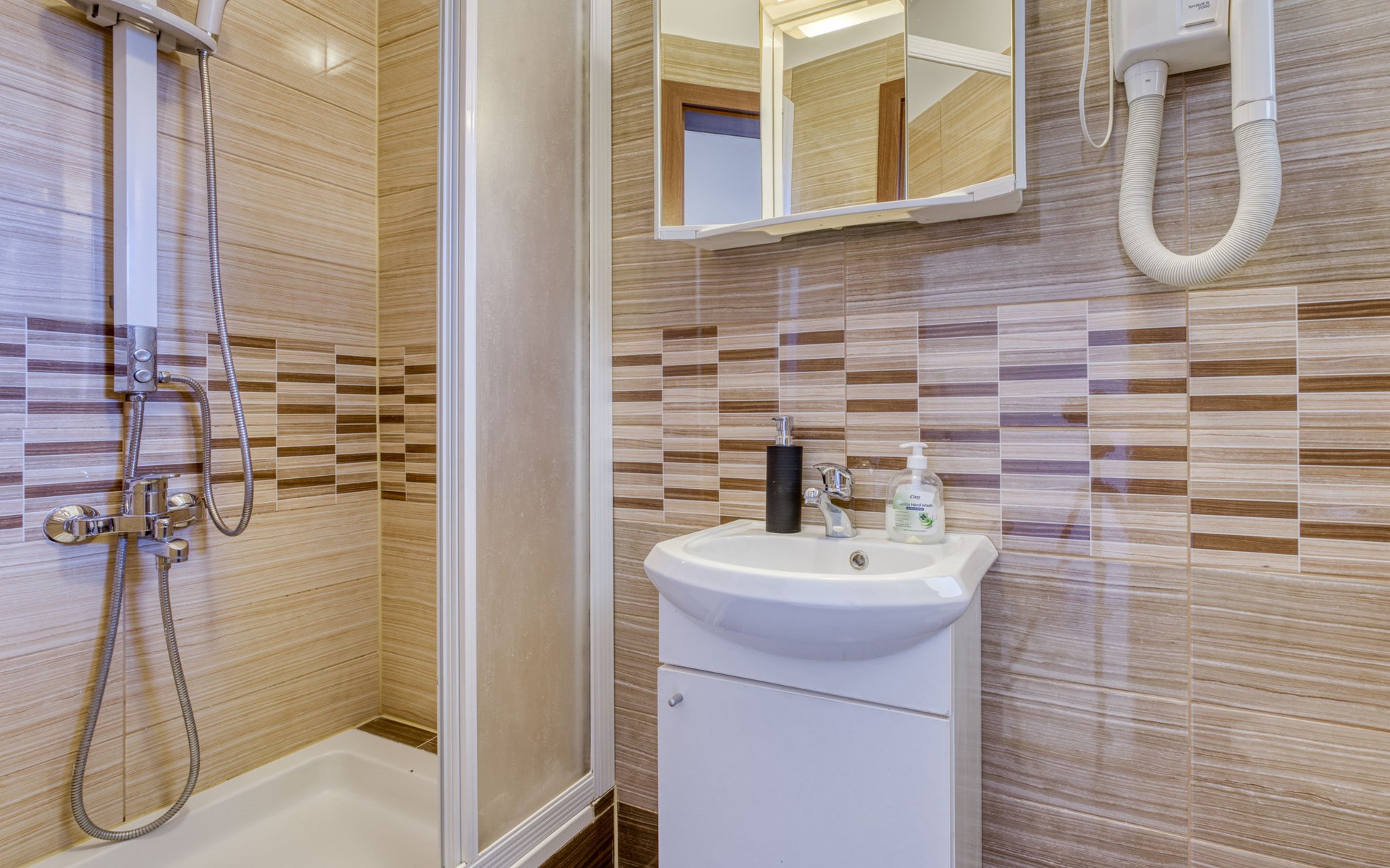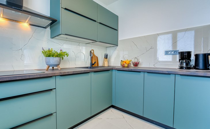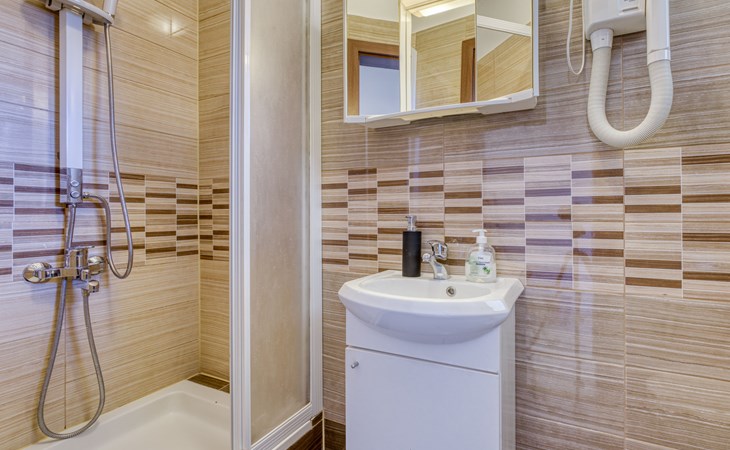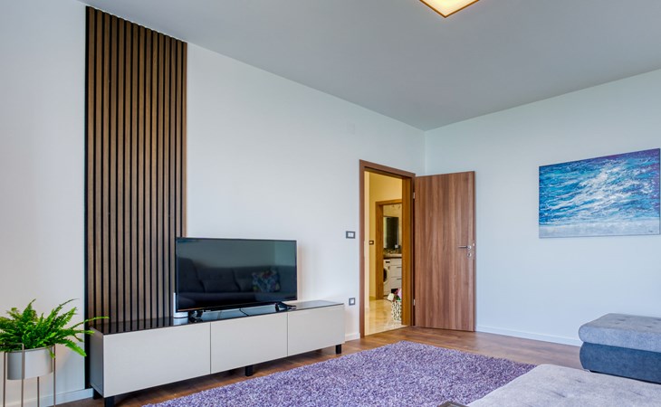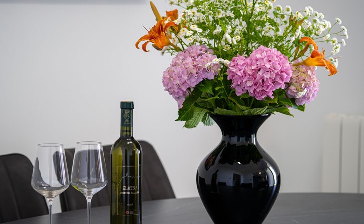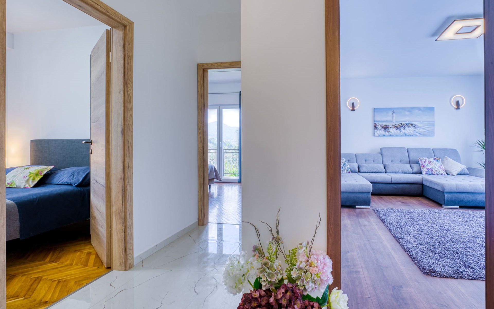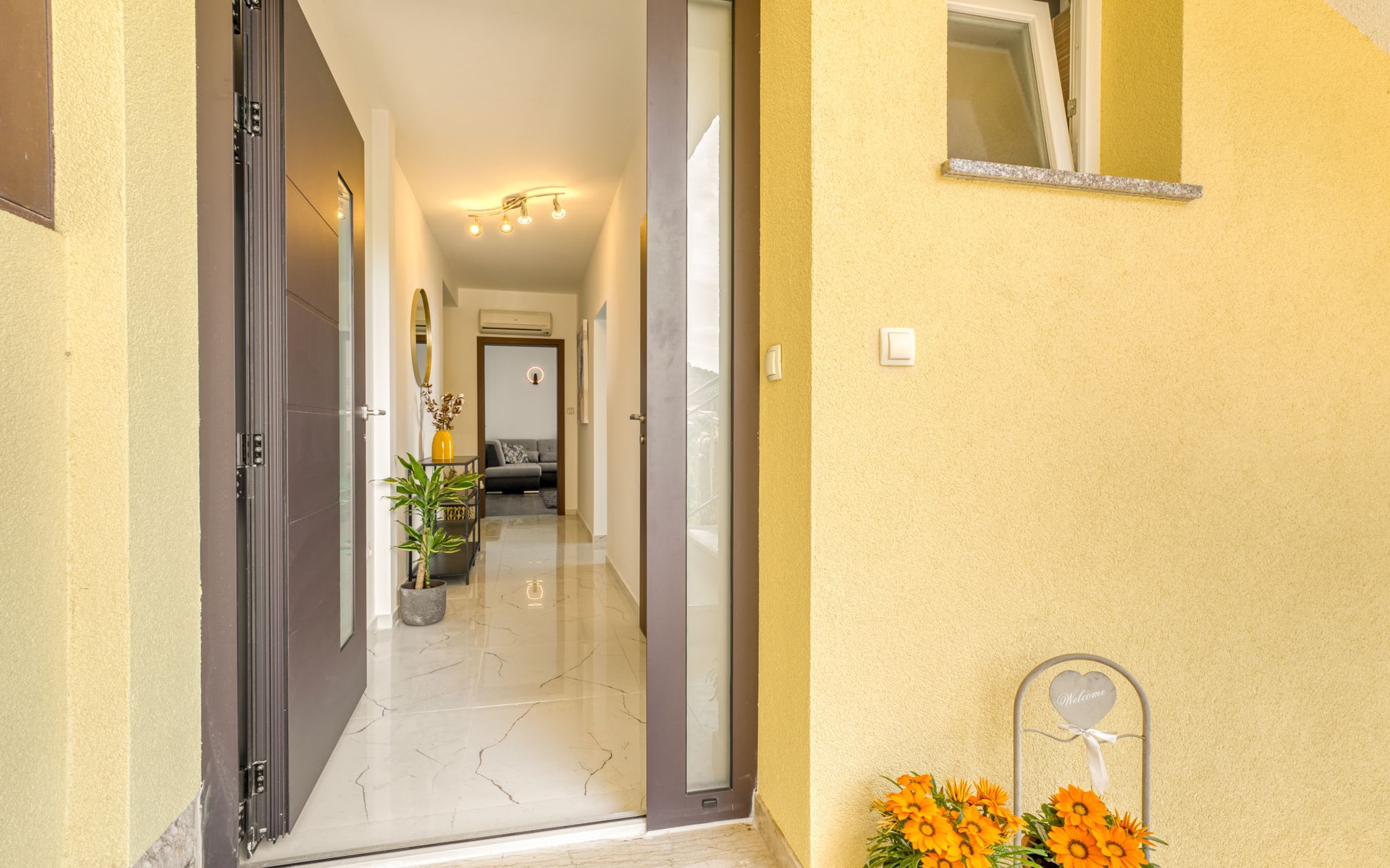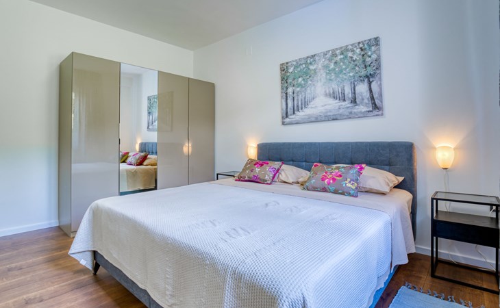 Tuliševica 5 km from Lovran: Apartment house "Laurus". Above Lovran, in the hamlet Tuliševica 8 km from the centre of Opatija, in a quiet, sunny position on a slope, 6 km from the sea, 6 km from the beach, in a cul-de-sac, in the countryside. For shared use: property 1'100 m2, lawn 200 m2, trees, swimming pool round (4 m diameter, depth 120 cm, seasonal availability: 01.May. - 15.Oct.). Terrace (30 m2), garden furniture, barbecue, children's playground (slide, swing). In the house: internet access, central heating system. Parking at the house on the premises. Shop 500 m, restaurant 1 km, bus stop 550 m, pebble beach 6 km, rocky beach 6 km, public bathing area 6 km. Tennis 6 km.