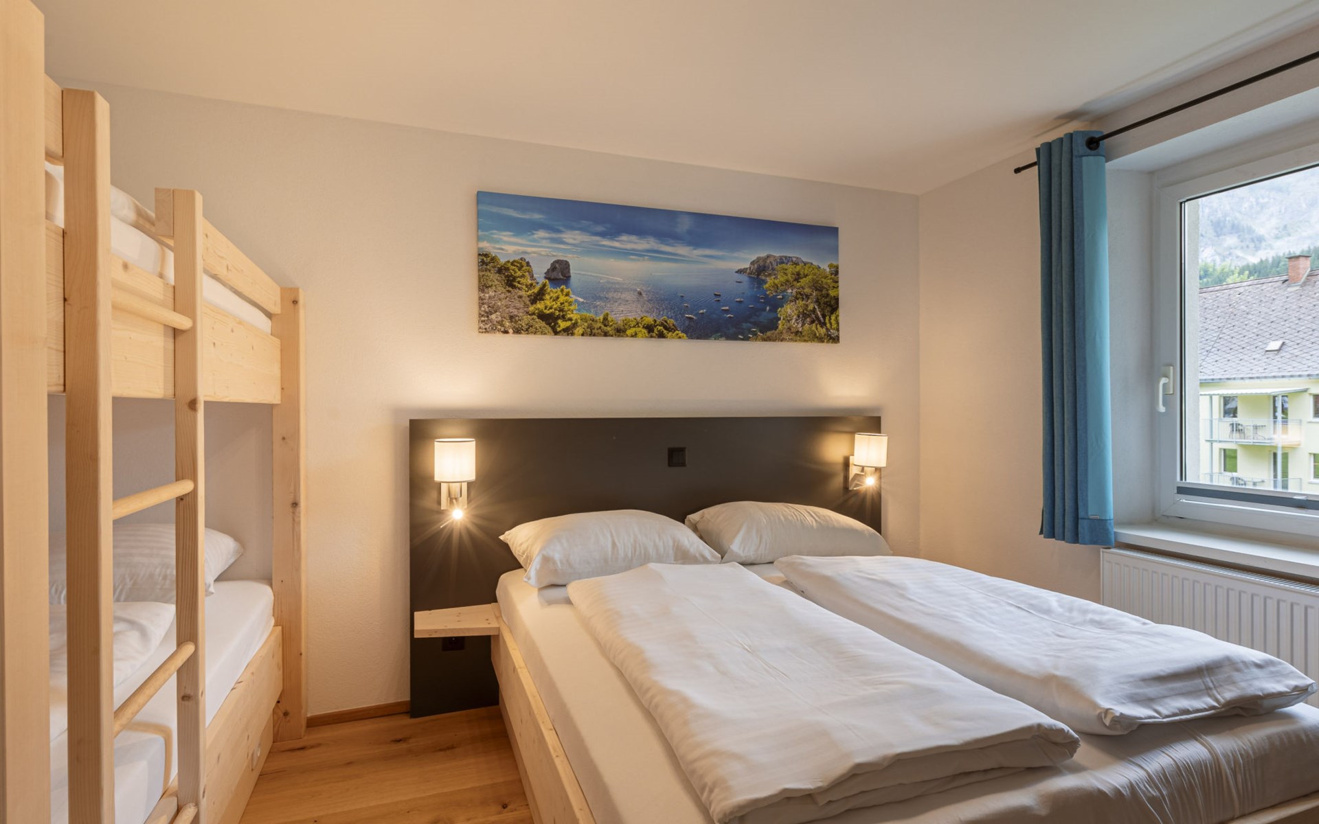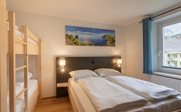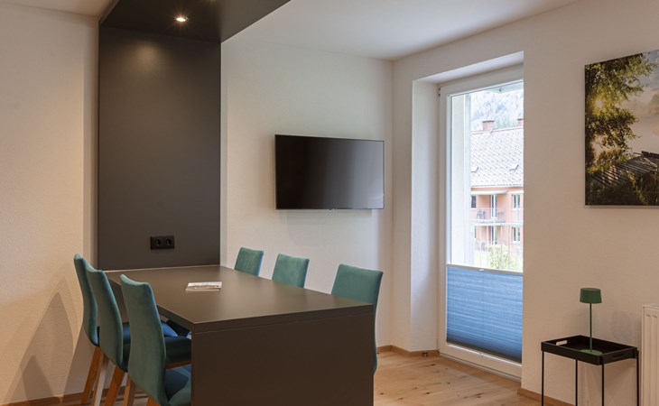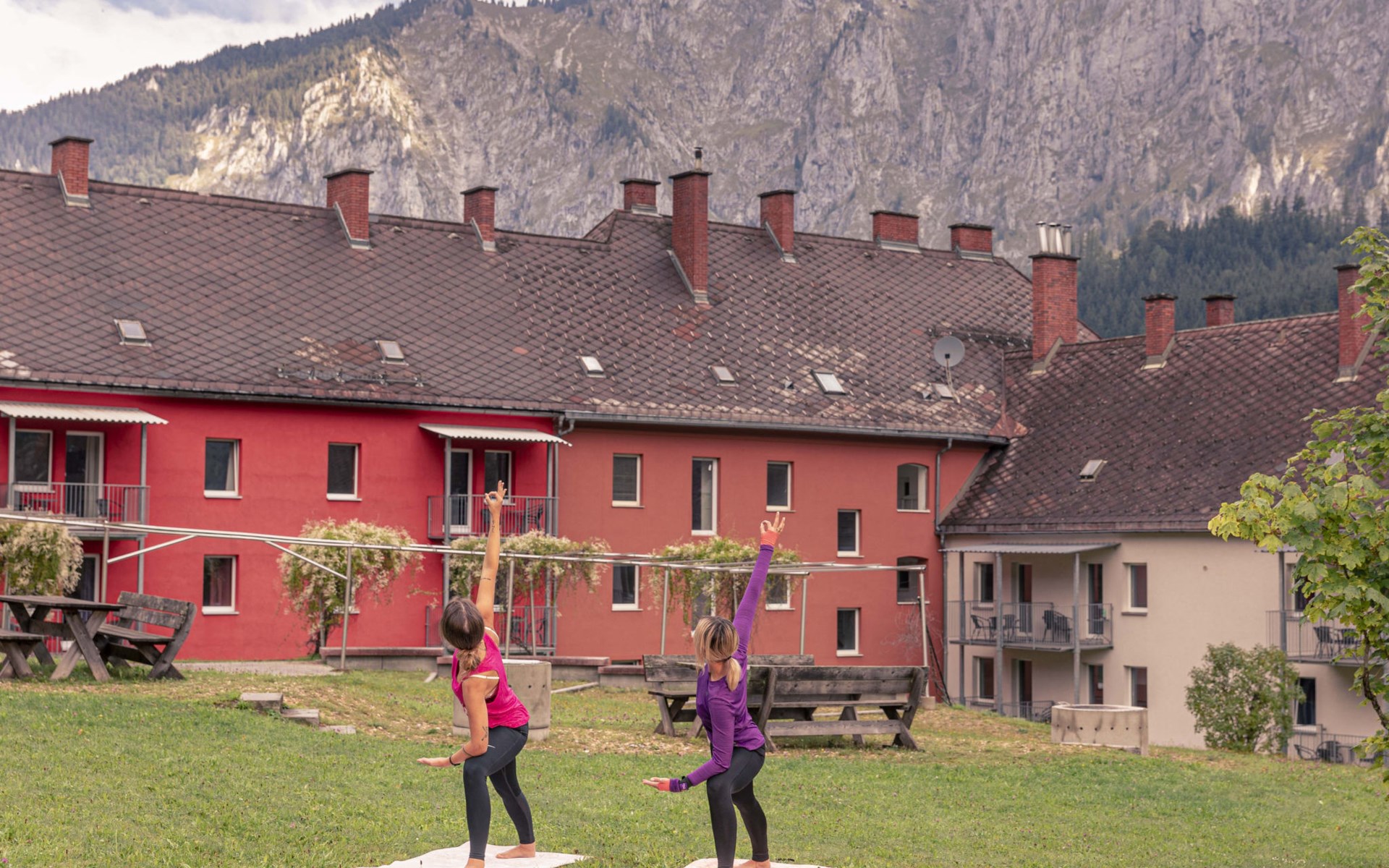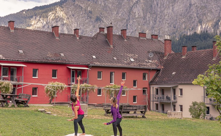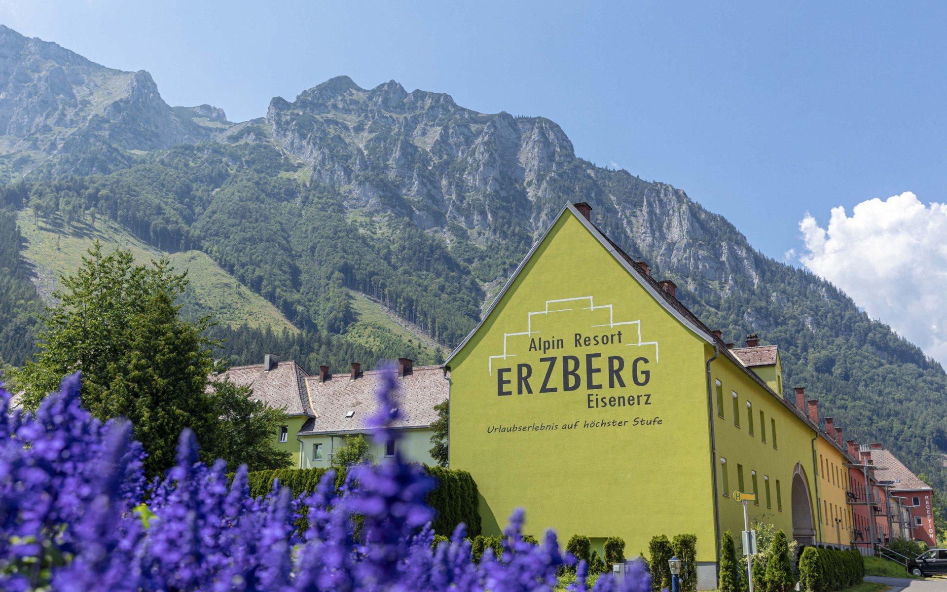 Here, a historic miners' settlement has been carefully adapted for tourism. Modern, comfortable resort "Erzberg Alpin by Alps Resorts". 3 km from the centre, in a sunny, elevated position, 1.5 km from the lake, 11 km from the skiing area. For shared use: large garden with plants and trees, lawn for sunbathing. Children's playground, planted inner courtyard. In the complex: reception, WiFi, central heating system, washing machine (for shared use, extra). Breakfast and half board (extra). Parking at the house. E-charging station. Supermarket 1.5 km, restaurant 200 m, diving center 6 km, indoor swimming pool 3 km, lake Leopoldsteiner See 1.5 km. Sports centre 100 m, skisport facilities 11 km, cross country ski track 6 km, ice rink 1.5 km. Nearby attractions: Abenteuer Erzberg 5 km, Naturpark Gesäuse 12 km, Schaubergwerk Radmer 17 km. Well-known ski regions can easily be reached: Skigebiet Präbichl 12 km. Hiking paths: Hochschwab. Please note: car recommended. The photo is just an example. Admission to the Vitalbad Eisenerz + 1 city tour per stay FREE for all guests! The Vitalbad closed in September for renovation. Erzberg Alpin guest card included.