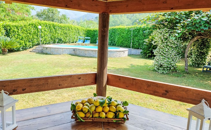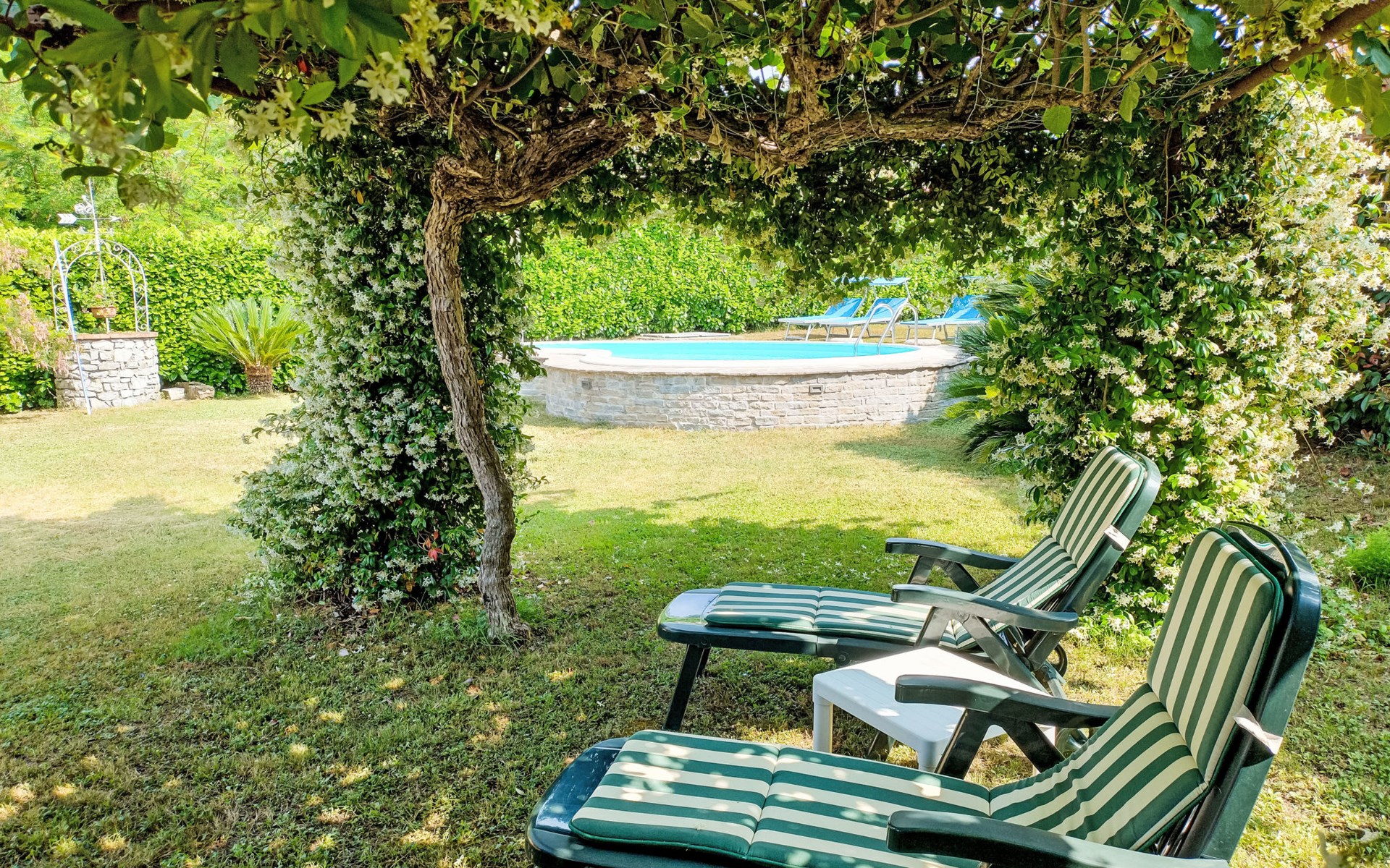 2-family house "Titta", 3 storeys. 600 m from the centre of Casarza Ligure, 5 km from the sea. Private: well-kept garden 800 m2 with lawn and trees, swimming pool kidney shaped (7 x 4 m, depth 120 cm, seasonal availability: 01.May. - 30.Sep.). Outdoor shower, garden furniture, barbecue house, children's playground. Supermarket 1 km, restaurant, bar, bus stop 700 m. Nearby attractions: Sestri Levante 6 km, Moneglia 12 km. Please note: car recommended. The owner lives in the same residence.