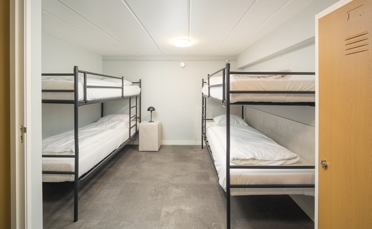 The house features five bedrooms: four with a double bed and one with two bunk beds. For added convenience, there is a modern bathroom with shower and washbasin, plus a separate toilet. All bedrooms include a wardrobe for neatly storing your belongings.