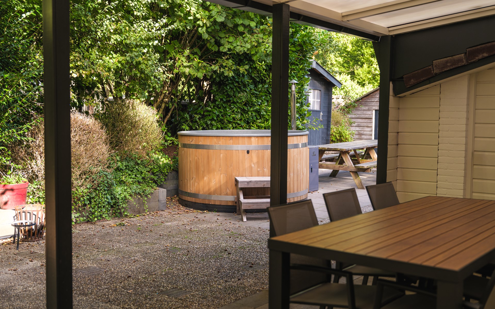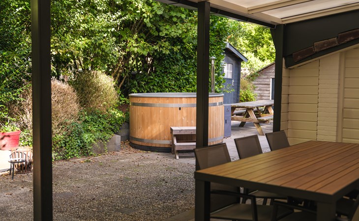 The absolute highlight is the private hot tub in the enclosed garden. Here you can fully unwind, whether relaxing during the day or sitting under the stars at night. The covered terrace with lounge set and garden furniture completes the outdoor experience – in any weather.