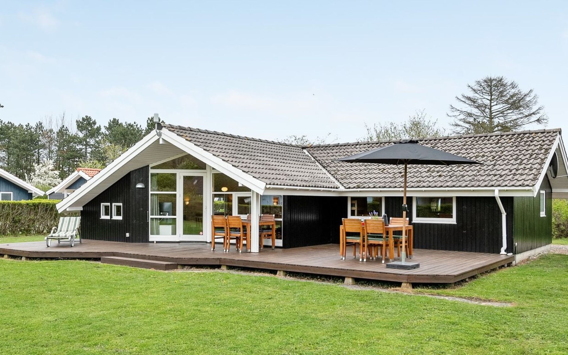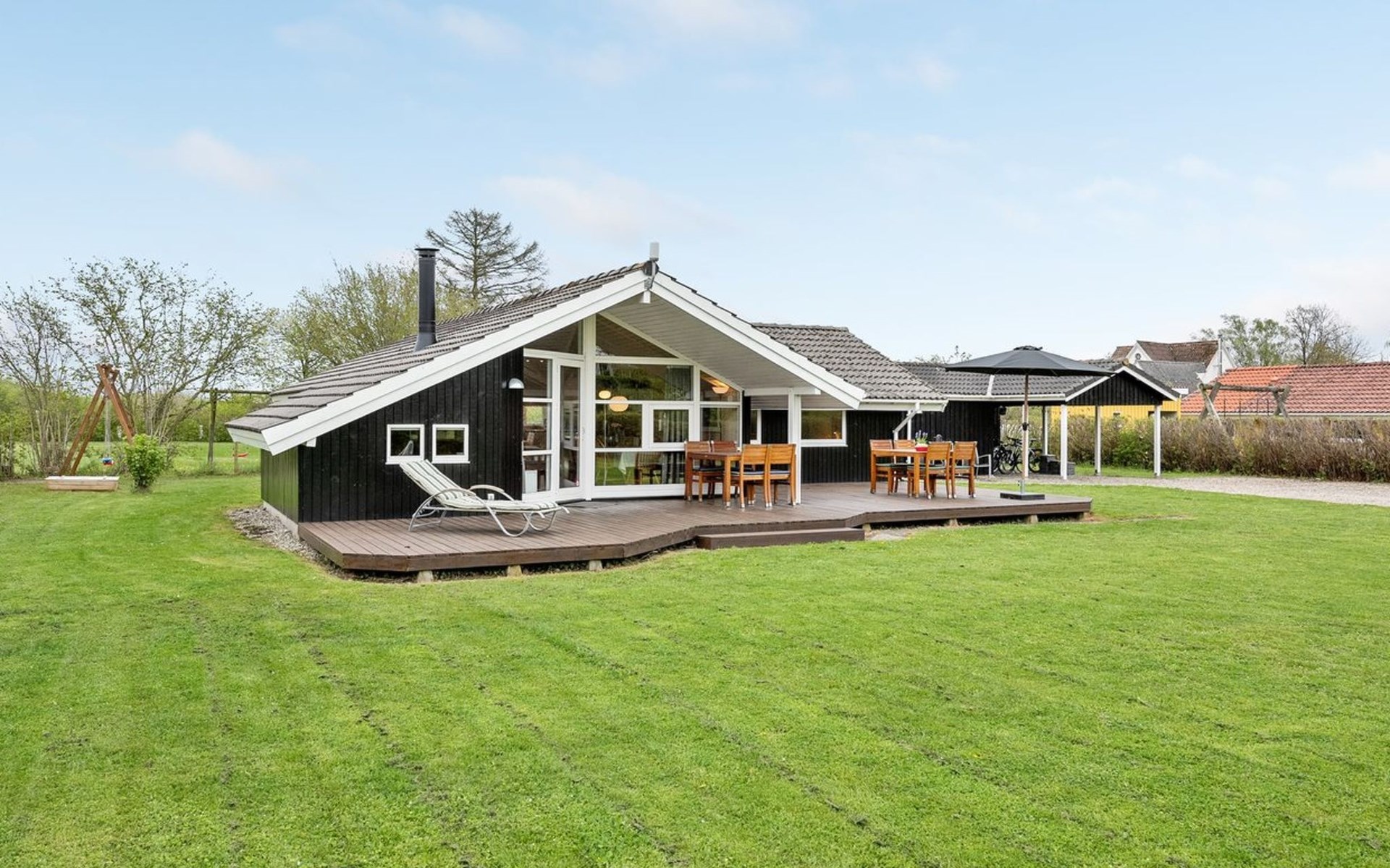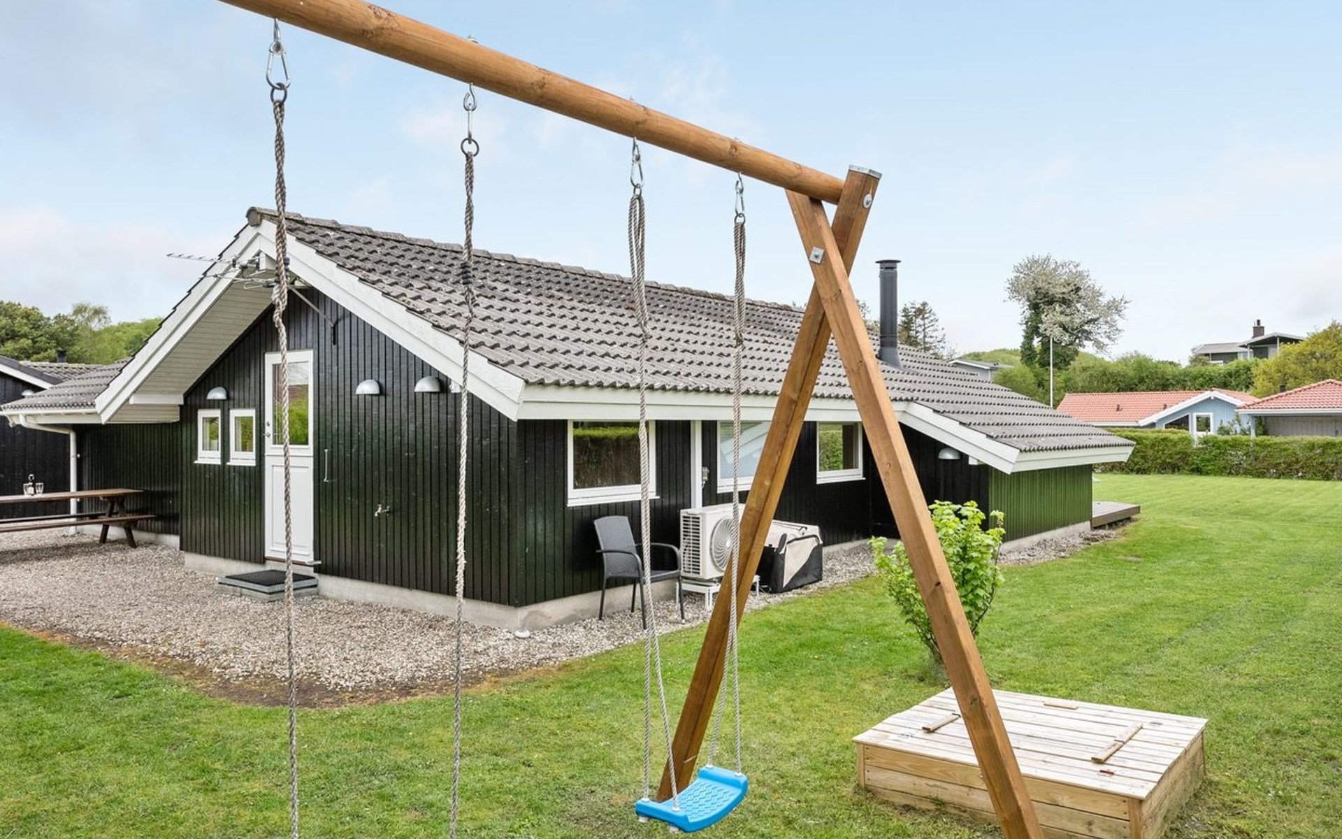 Single-family house, built in 1991. 200 m from the sea. Private: property 1'200 m2, well-kept garden. Terrace (40 m2), barbecue, children's playground (swing). In the house: sauna, trampoline, washing machine, tumble dryer. Parking at the house. E-charging station. Grocery 10 km. The owner does not accept any youth groups.
