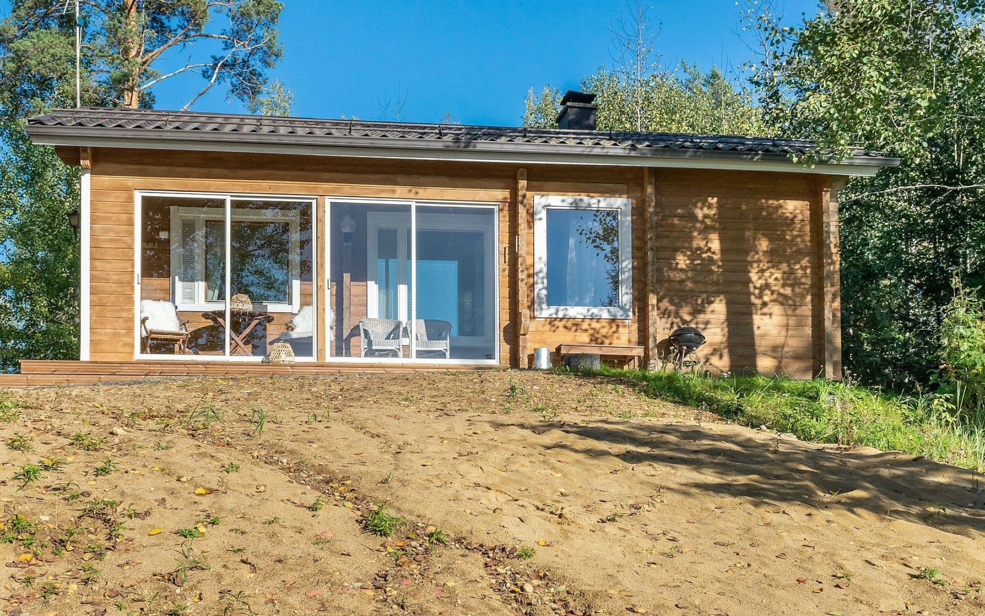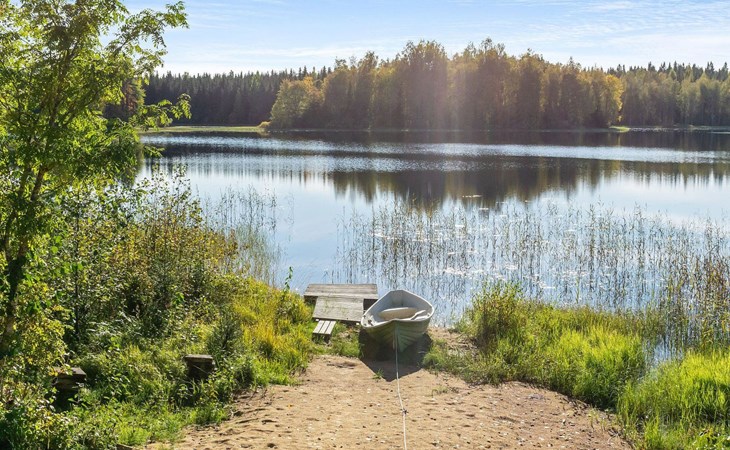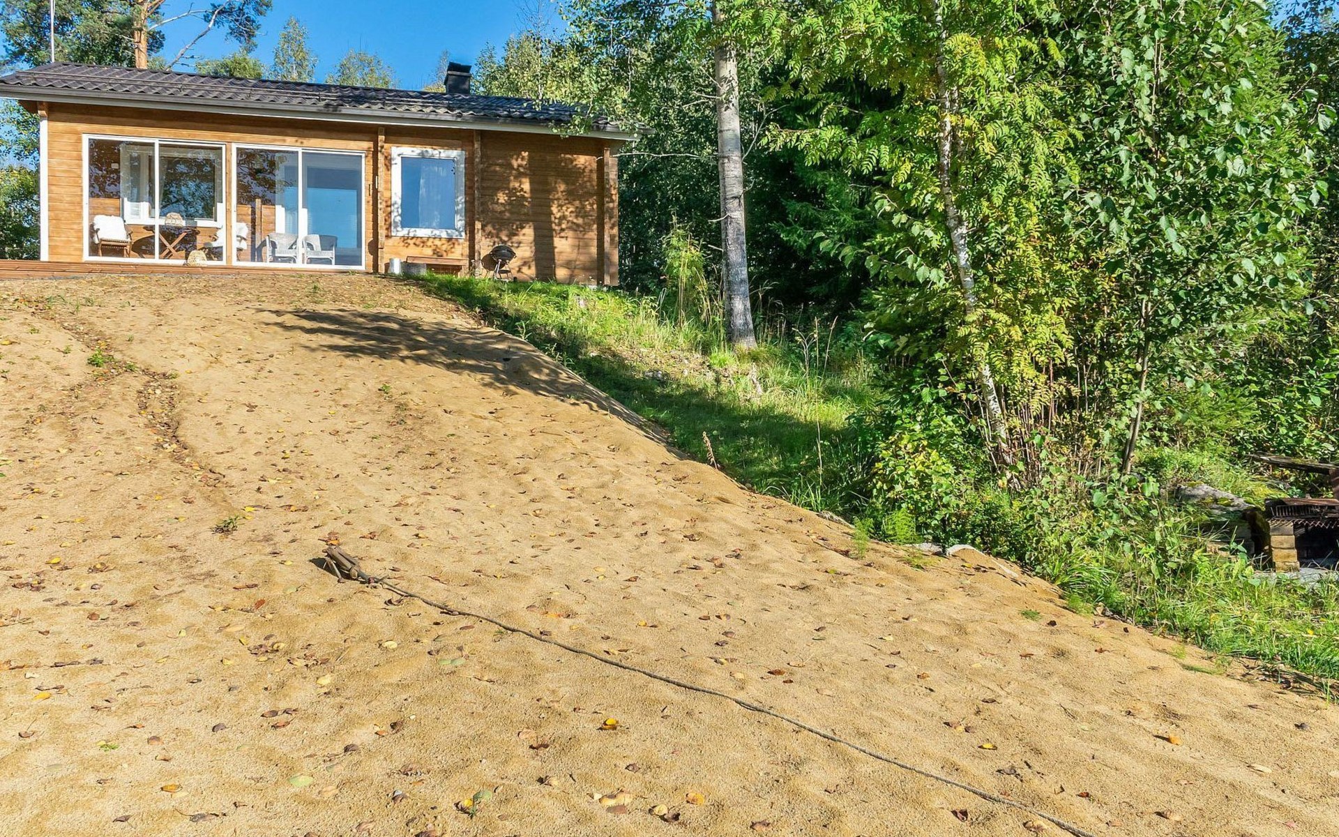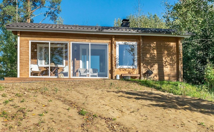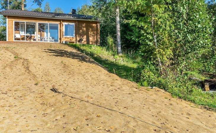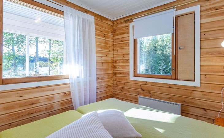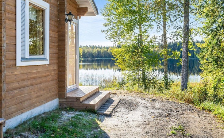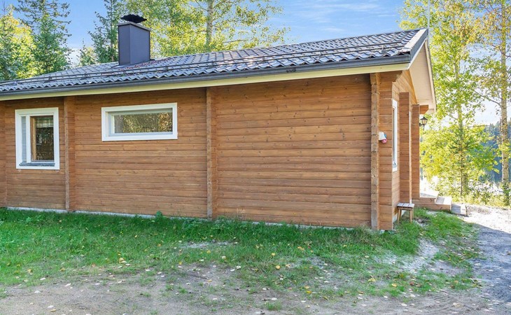 70 km east of Kuopio. Lake Vihtajärvi 25 m (length 3,5 km, breadth 1 km), shallow water, sanded clay bottom. Pier, own boat. Log cabin 1983, renovated 2002, completely renovated in 2023, kitchen/living room with 1 extra bed, 2 bedrooms with 2 beds in each, sauna, shower room, dressing room, open veranda.