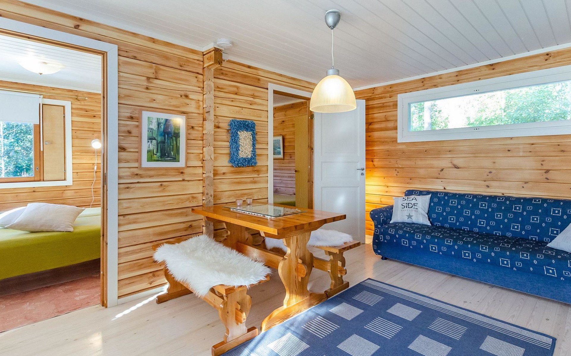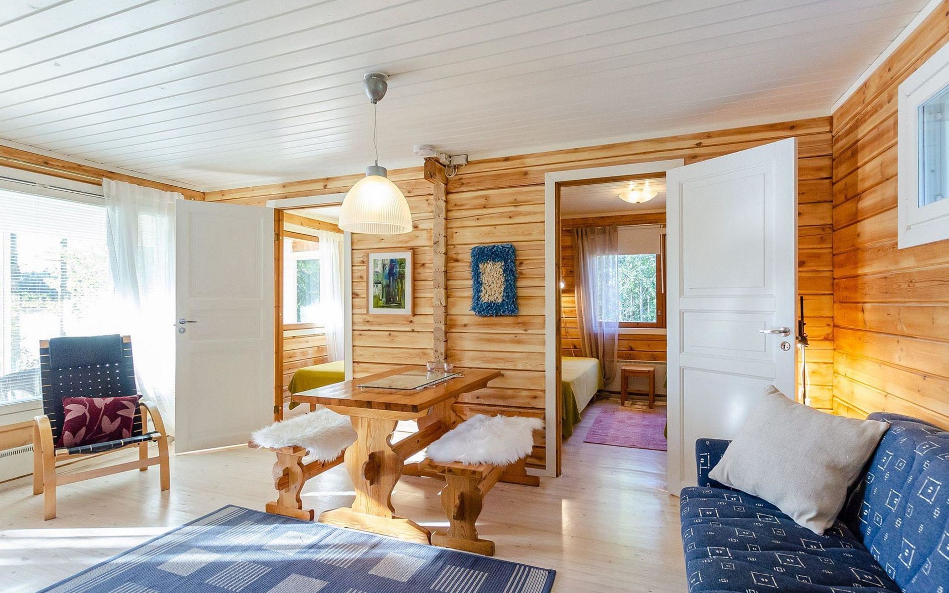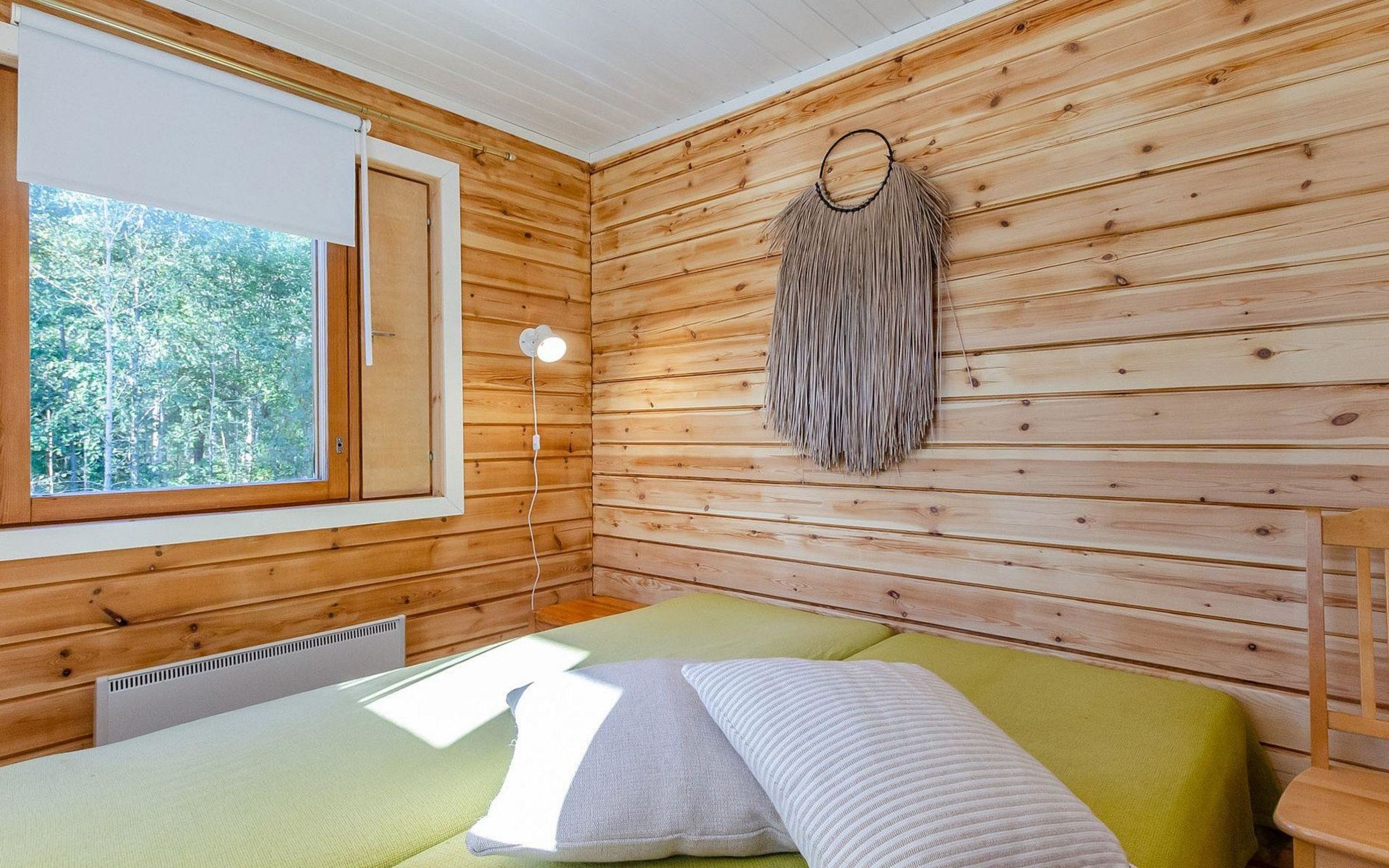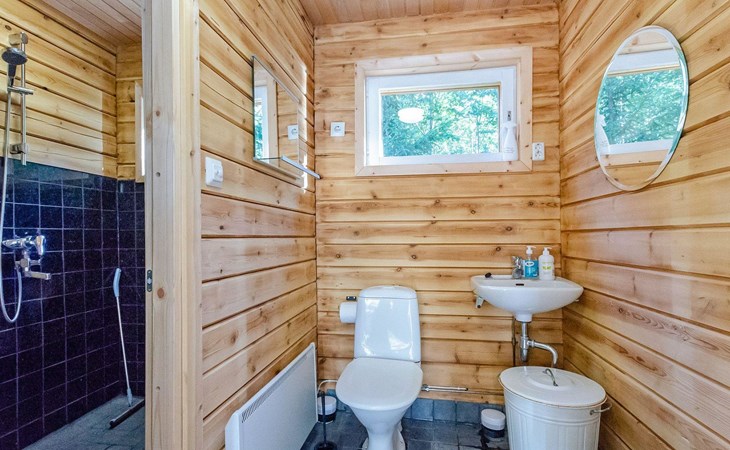 70 km east of Kuopio. Lake Vihtajärvi 25 m (length 3,5 km, breadth 1 km), shallow water, sanded clay bottom. Pier, own boat. Log cabin 1983, renovated 2002, completely renovated in 2023, kitchen/living room with 1 extra bed, 2 bedrooms with 2 beds in each, sauna, shower room, dressing room, open veranda.