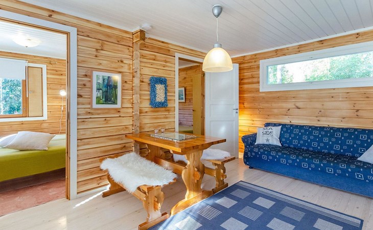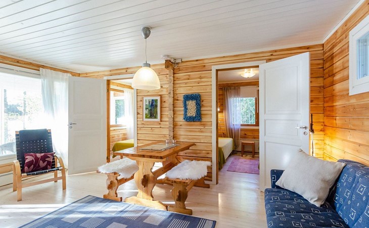 A wood fired outside hot tub for rent for 6 people all year round. The availability of the tub must be checked in advance (rented between several cottages). The rent of the tub will be paid to the owner.