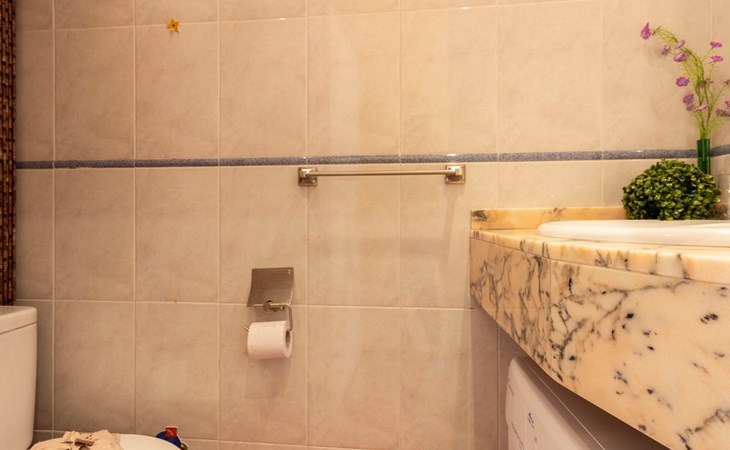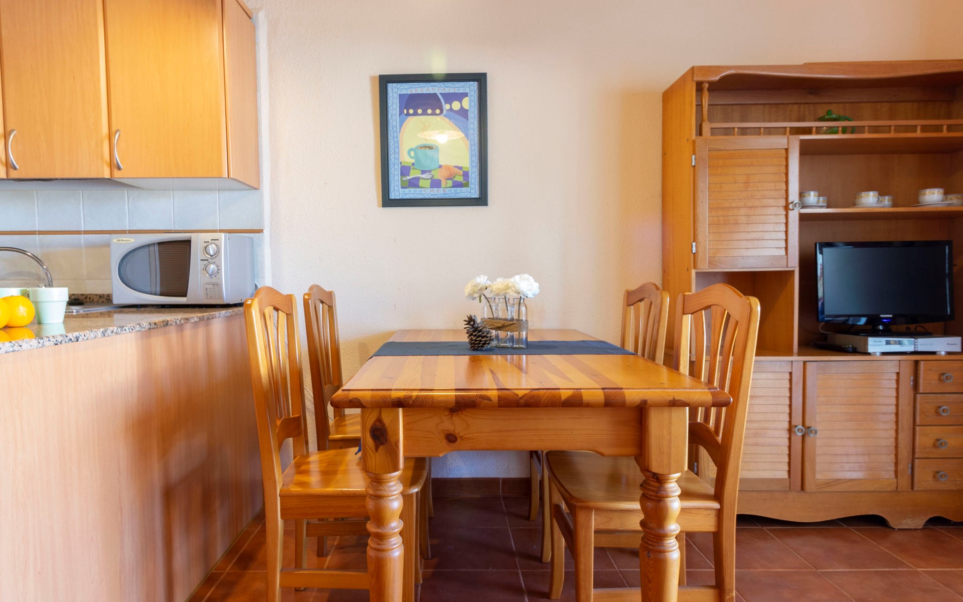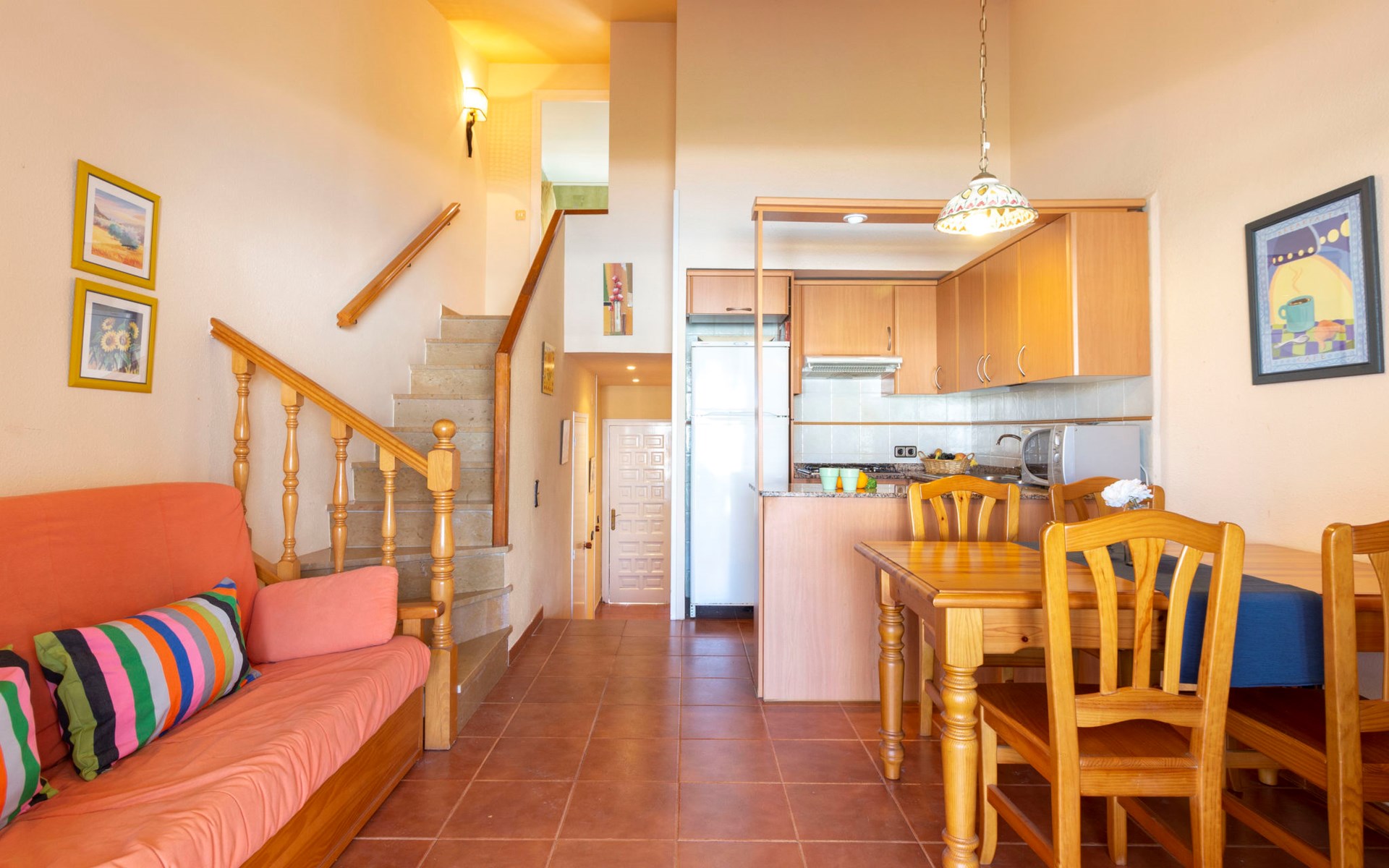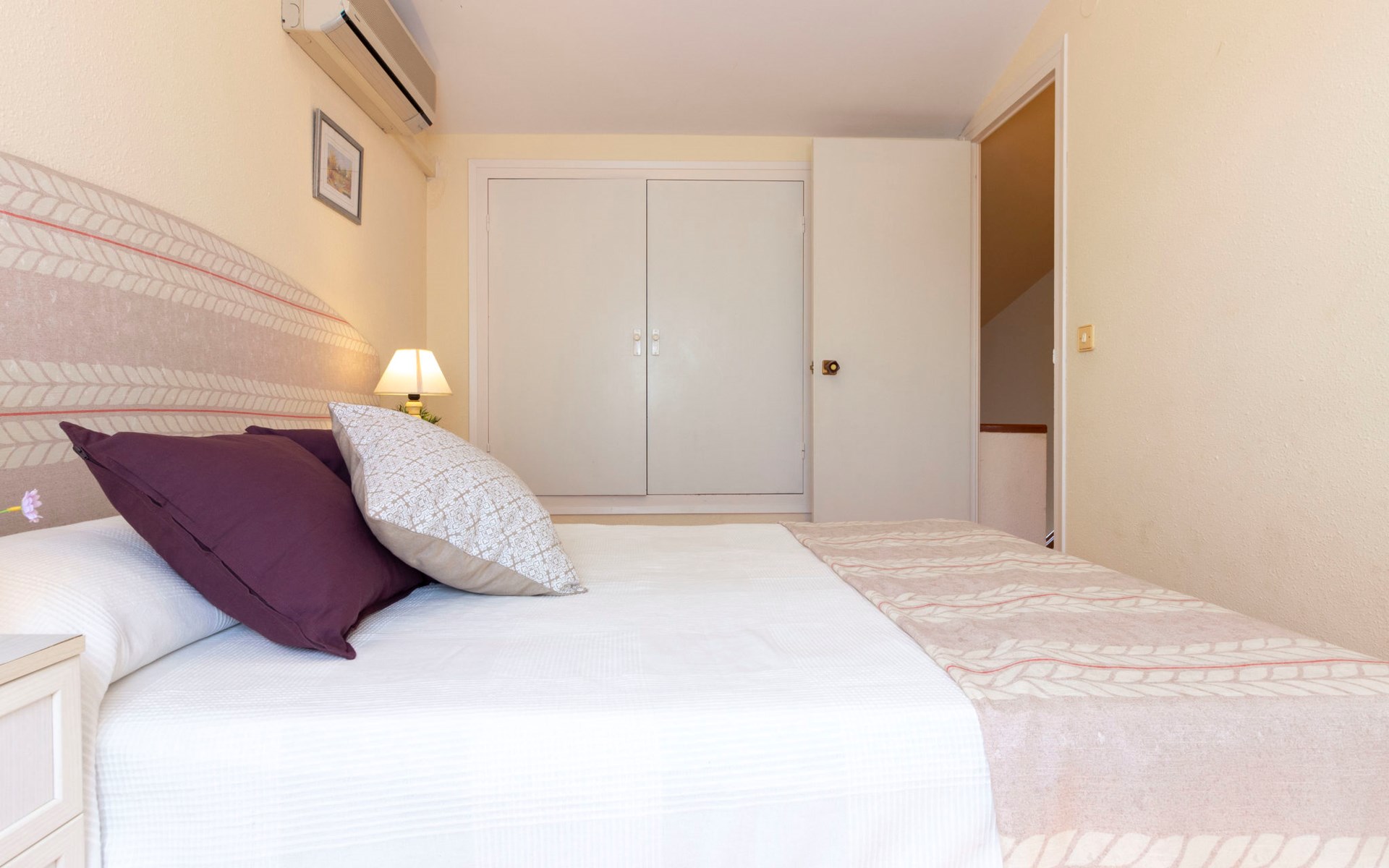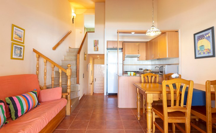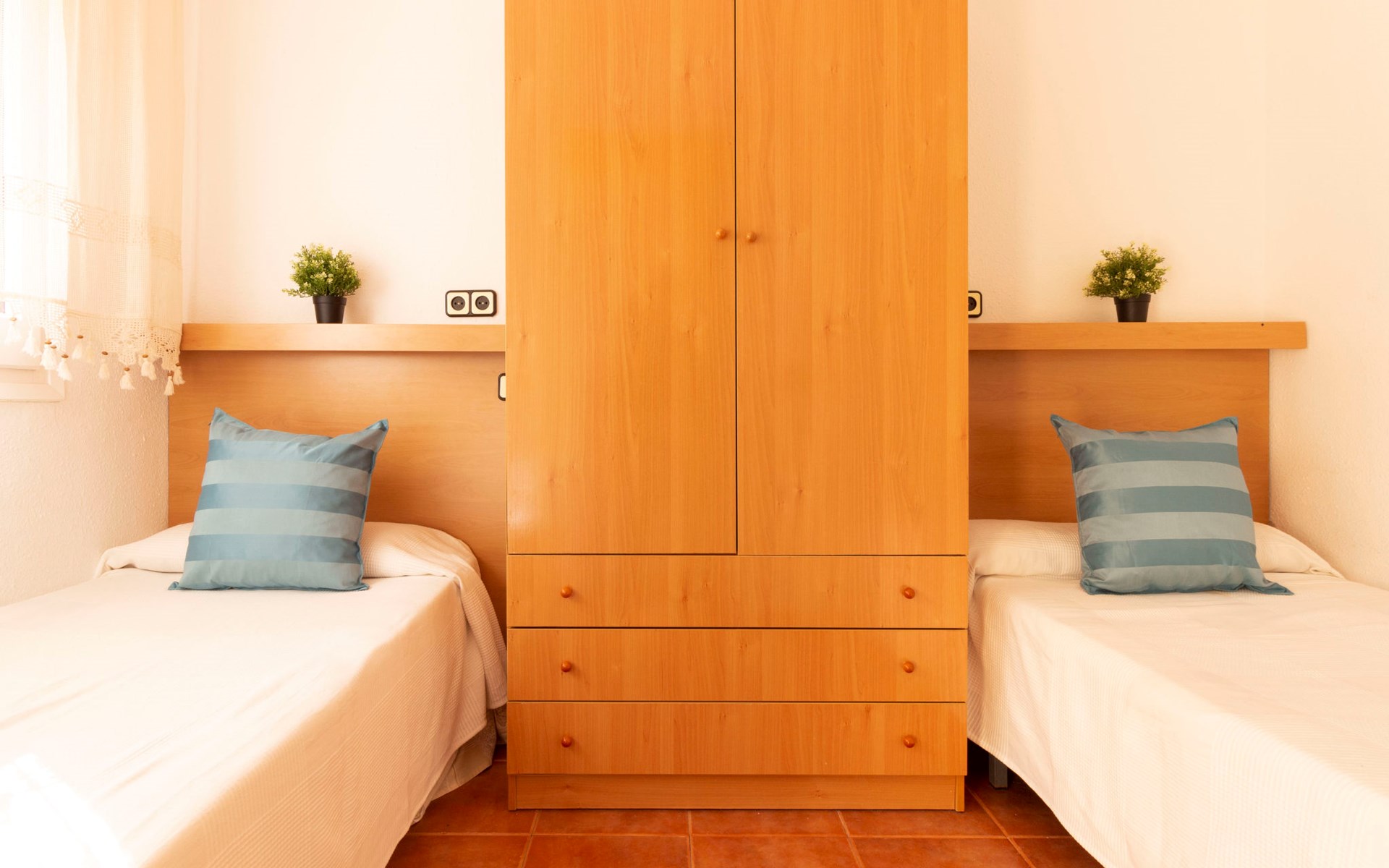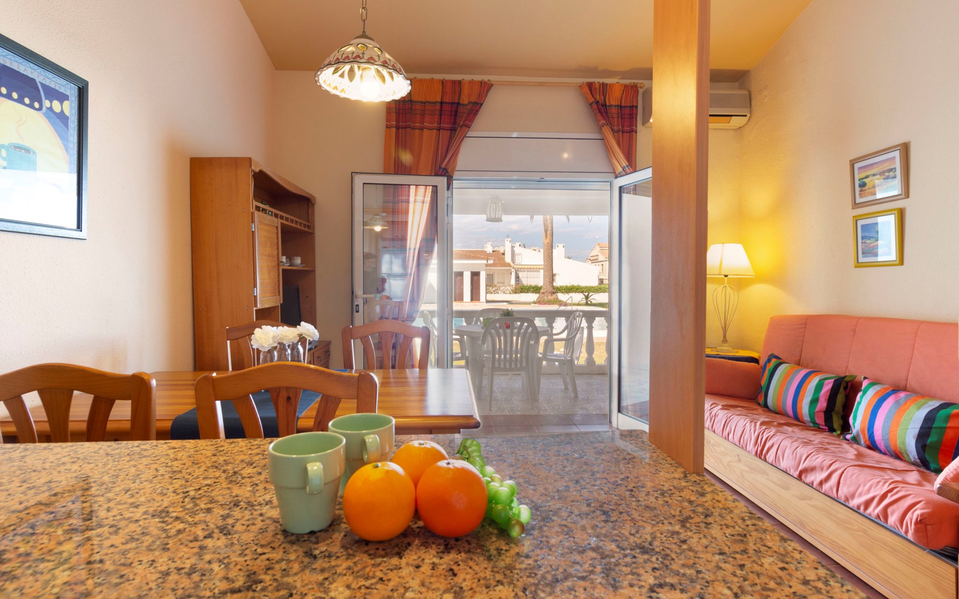 Riumar 10 km from Deltebre: Simple, comfortable terraced house "Salvagina 53", 2 storeys. In a quiet, sunny position, 300 m from the sea, 300 m from the beach. For shared use: large garden with lawn, swimming pool angular (25 x 12 m, depth 80 - 220 cm, seasonal availability: 01.Apr. - 31.Oct.). WC in the pool area, outdoor shower, boccia. Private: pergola, terrace, barbecue. In the complex: bar, internet café, WiFi, air conditioning, washing machine. Parking at the house. Supermarket 500 m, restaurant, bar 300 m, bakery 700 m, bus stop "Riumar" 650 m, railway station "Aldea- Amposta" 25 km, sandy beach "Riumar" 300 m. Sports harbour 1 km. Nearby attractions: Parque natural Delta del Ebro 2 km, Tortosa 35 km, Playa el Trabucador 29 km, Barcelona 190 km, Port Aventura 70 km. Hiking paths: Parque natural Puerto Tortosa Beseit 52 km, GR 92 15 km. Please note: car recommended. Suitable for families.