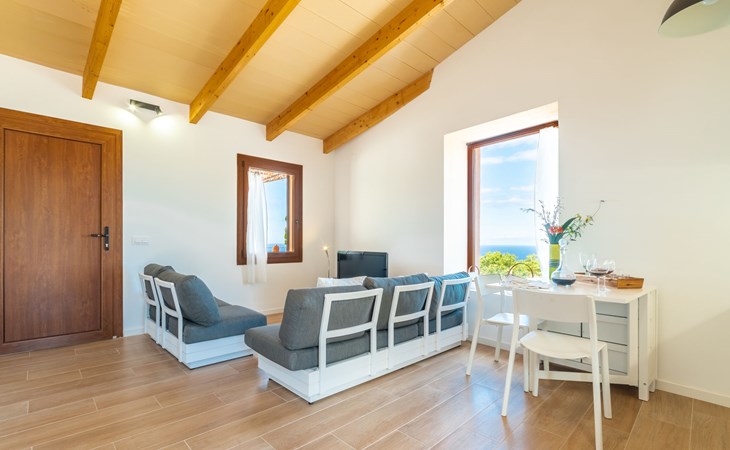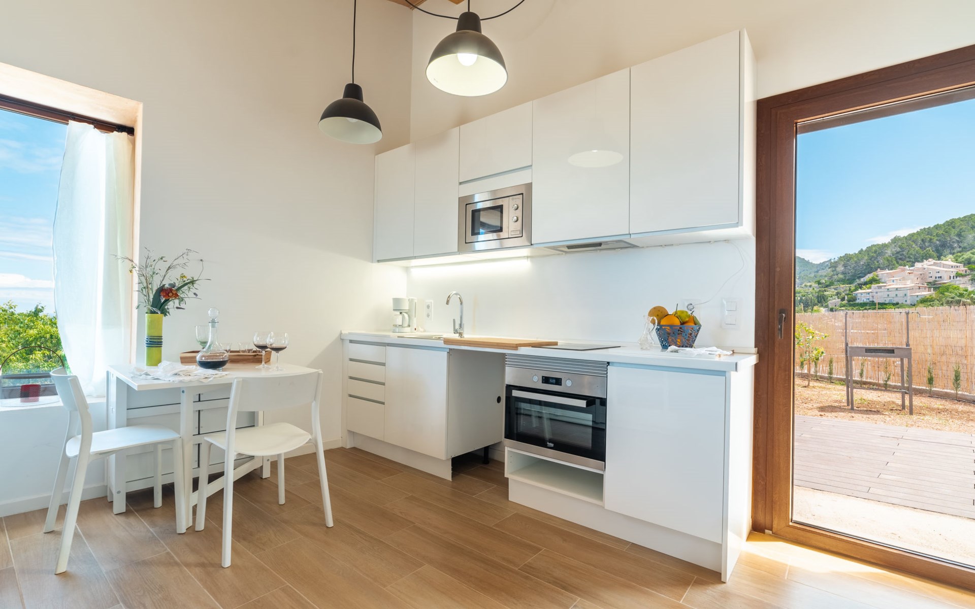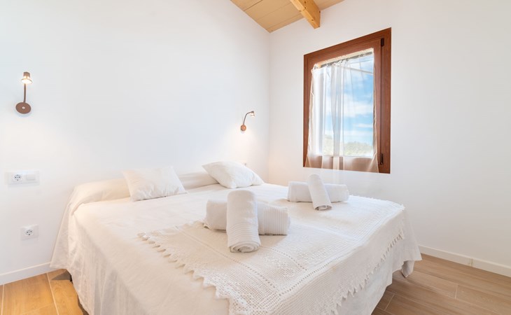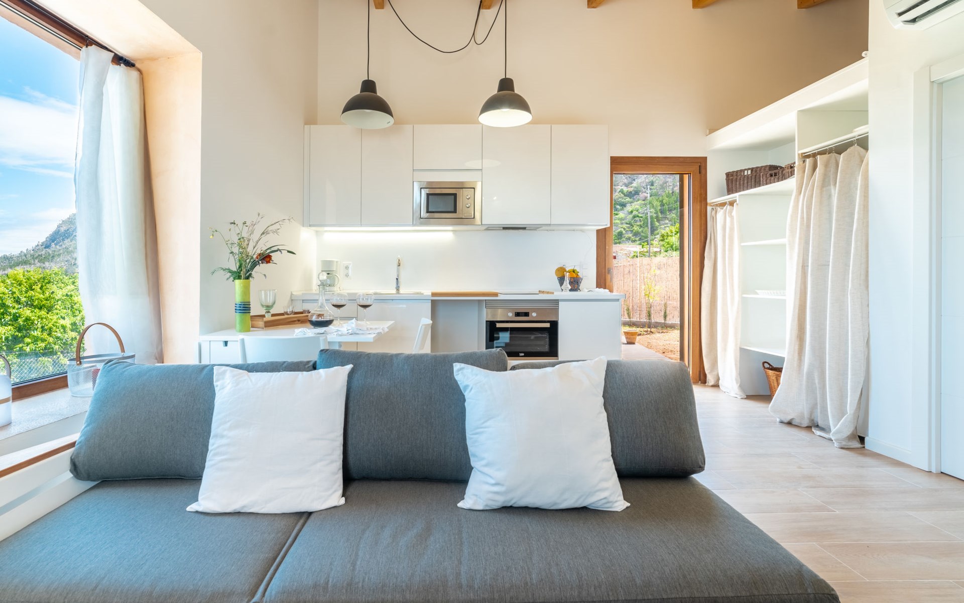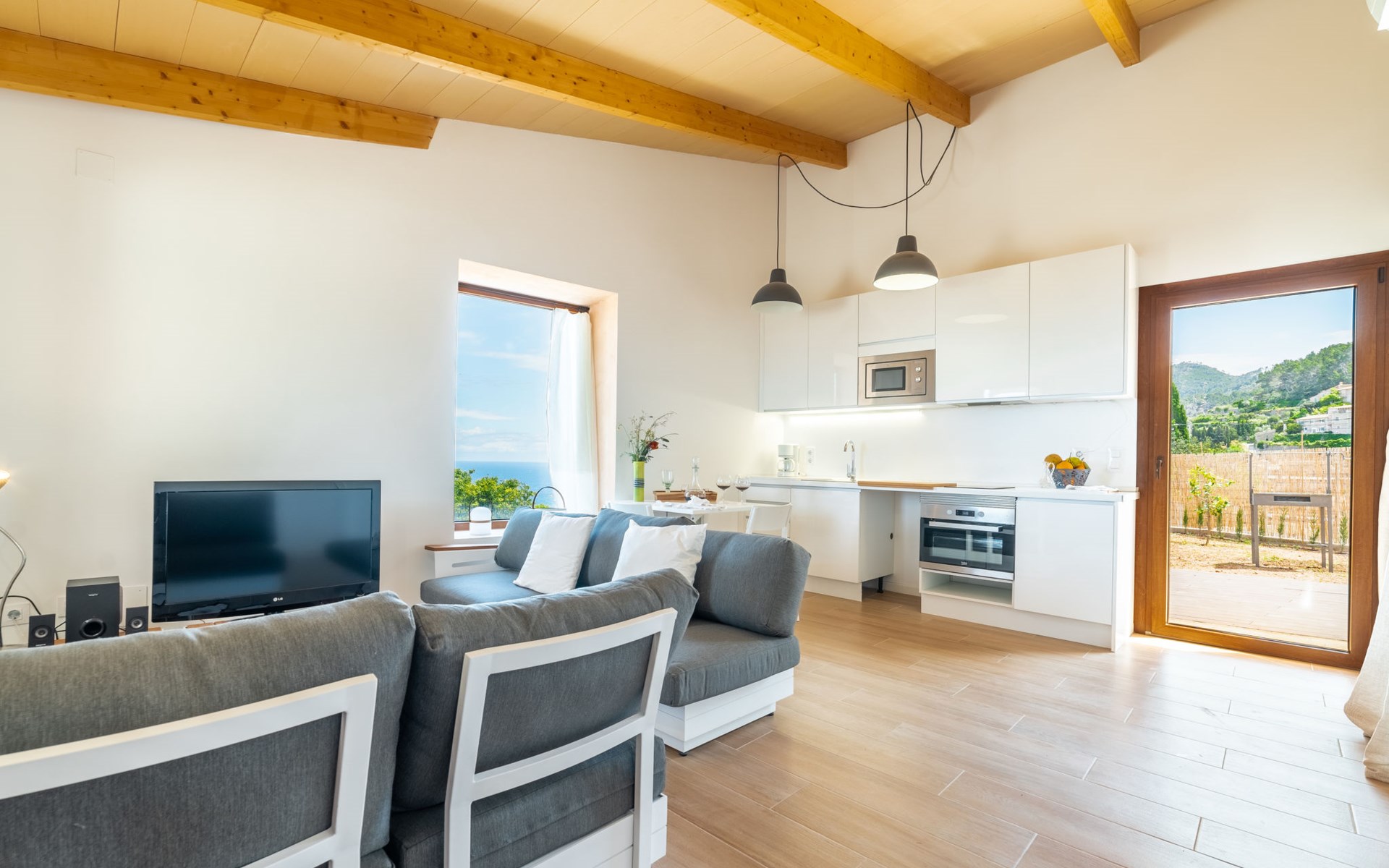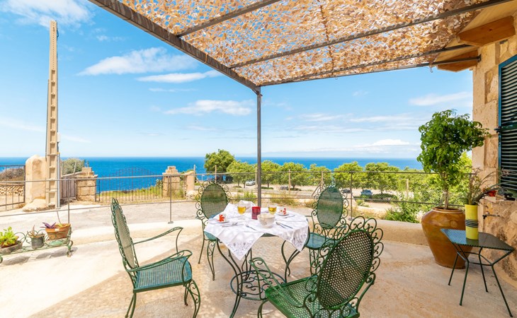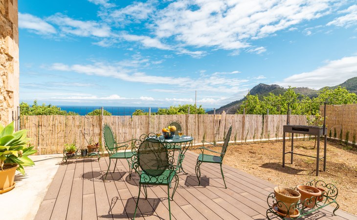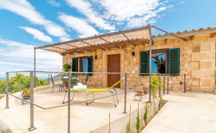 Very beautiful, comfortable single-family house "Sa Caseta des Camp", renovated in 2021, surrounded by fields and vineyards. In the resort 450 m from the centre of Banyalbufar, in a sunny, elevated position on top of a hill, 600 m from the edge of the forest, 1.1 km from the sea. Private: small garden with wildlife garden, courtyard. Patio, arbour, garden furniture, barbecue. In the house: internet access, WiFi, air conditioning, washing machine. Parking at the house on the premises, public car park at 2 m. Grocery 500 m, supermarket 10 km, restaurant 300 m, bar 300 m, bakery 500 m, 5 minute walk to the centre, bus stop "Banyalbufar" 450 m, sandy beach "Playa de Palma" 25 km pebble beach "Cala de Banyalbufar" 1.1 km, rocky beach "Cala dels Suissos" 900 m. Sports harbour 25 km, golf course (18 hole) 20 km, tennis 10 km. Nearby attractions: Bodega Son Vives 10 m, Esporles 10 km, Port des Canonge, 11.7 km, Valldemossa 17 km, Estellencs 6.5 km, Palma de Mallorca Capital City 24 km. Hiking paths: Serra de tramuntana, La Trapa, Estellencs, Ruta de Pedra en Sec. Please note: car recommended. Suitable for seniors. Object suitable for 2 adults. Main road close by. Airfield 36 km from the property.