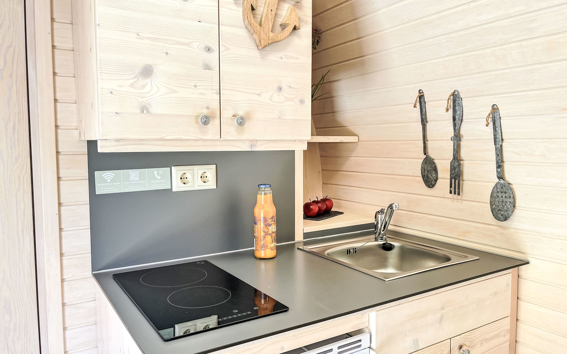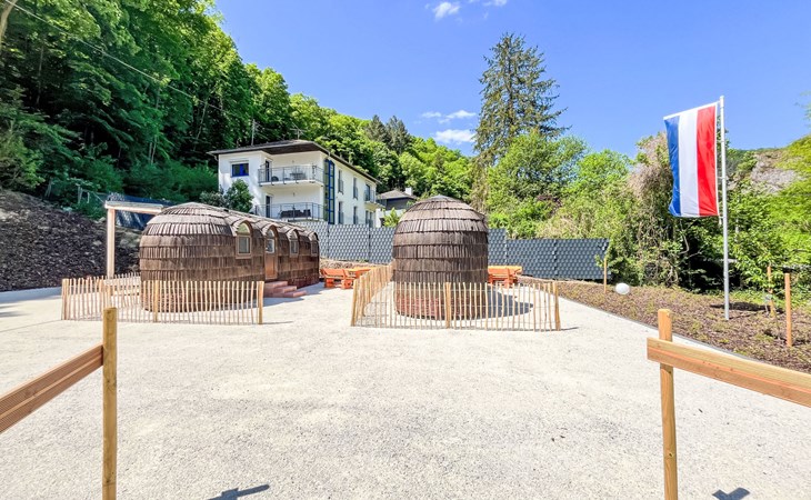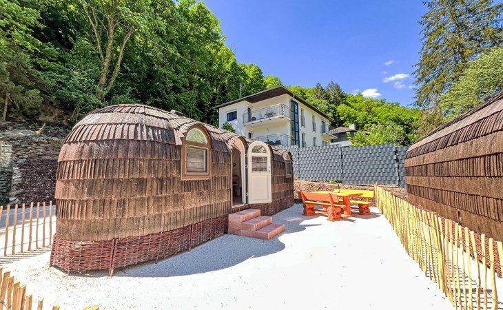Small, beautiful resort "Tinyhäuser Vierseenblick". 4 houses in the resort. 2 km from the centre of Boppard am Rhein, in a quiet position, 200 m from the edge of the forest. Parking at the house. Shop 2 km, supermarket 2 km, restaurant 950 m, bakery 1.9 km, café 1.8 km, 20 minute walk to the centre, bus stop "Bahnhof Boppard" 1.8 km, railway station "Bahnhof Boppard" 1.8 km, ferry "Boppard-Filsen" 2.2 km. Golf course (18 hole) 12 km, walking paths from the house 200 m, cycle lane 1 km, chair lift 850 m, children's playground 150 m. Nearby attractions: Mittelrhein Klettersteig 1 km, Feindliche Brüder - Höhenburg Kamp-Bornh 10 km, Marksburg - Höhenburg Braubach 35 km, Loreley 20 km, Vierseenblick mit Sessellift 1 km, Bopparder Hamm - Weingebiet 2 km. Well-known lakes can easily be reached: Mittelrheinufer 2 km. Hiking paths: Wanderweg zum Vierseenblick 260 m, Traumschleife Elfenlay 1.5 km, Rheinsteig 3.5 km. Please note: car recommended. The complex has night security. The tiny houses are located at the "Vierseenblick" hiking parking lot, just steps from hiking trails around the Bopparder Hamm. Please note: TV and Wi-Fi are not available.