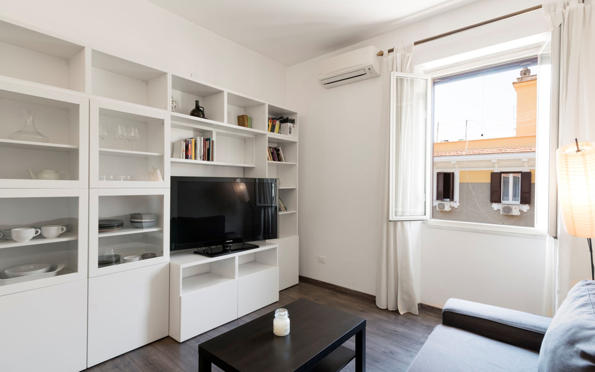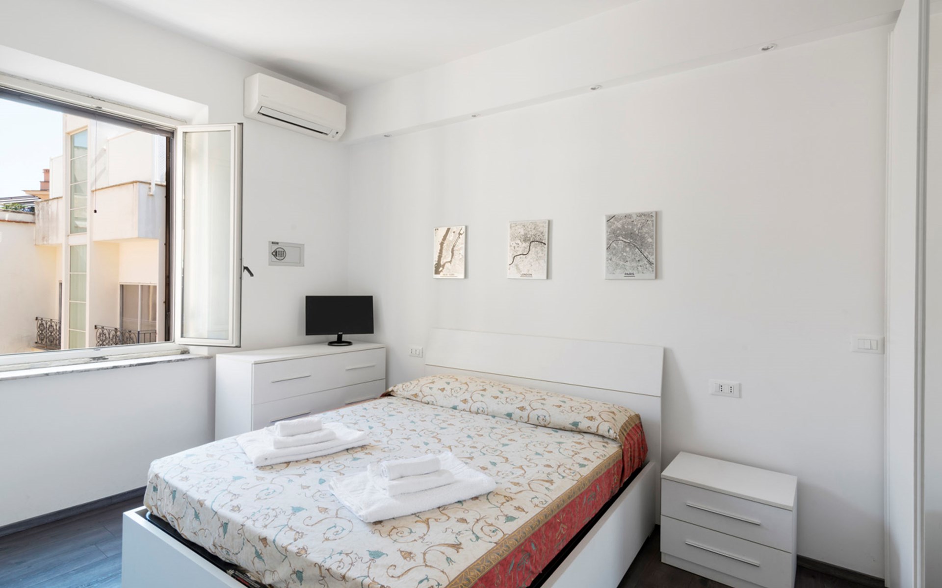 Historical apartment block, 5 storeys, built in 1800. In the centre of Rome, in the district Vaticano - San Pietro, in a central, busy position. In the house: internet access. Linen change weekly. Room cleaning on request (extra). Airport transfer (extra). Public car park at 50 m, extra. Grocery 50 m, supermarket 200 m, shopping centre 500 m, restaurant, bar, bakery 50 m, bus stop 80 m, underground station "Ottaviano - San Pietro - A line" 300 m. Nearby attractions: Trionfale Local Market (fresh groceries) 120 m, Musei Vaticani 400 m. Please note: no lift. For arrivals after 21.00h there is a late check in fee of 30 Euro to be paid cash on arrival to the check-in person.