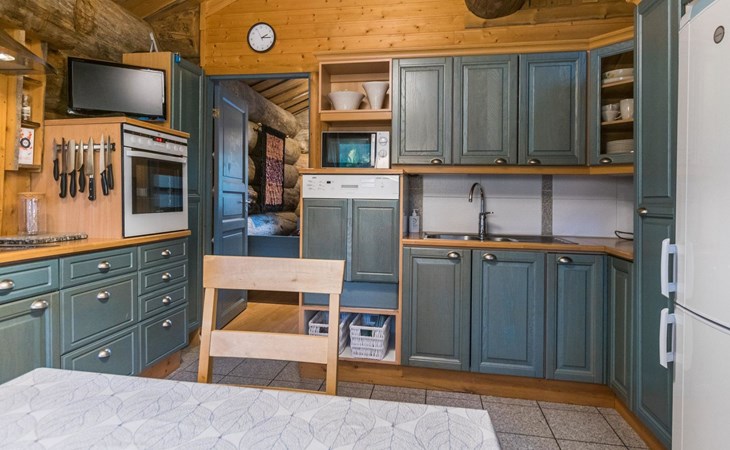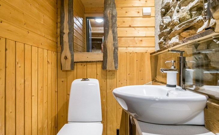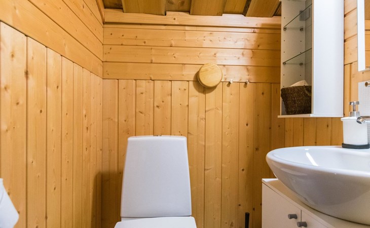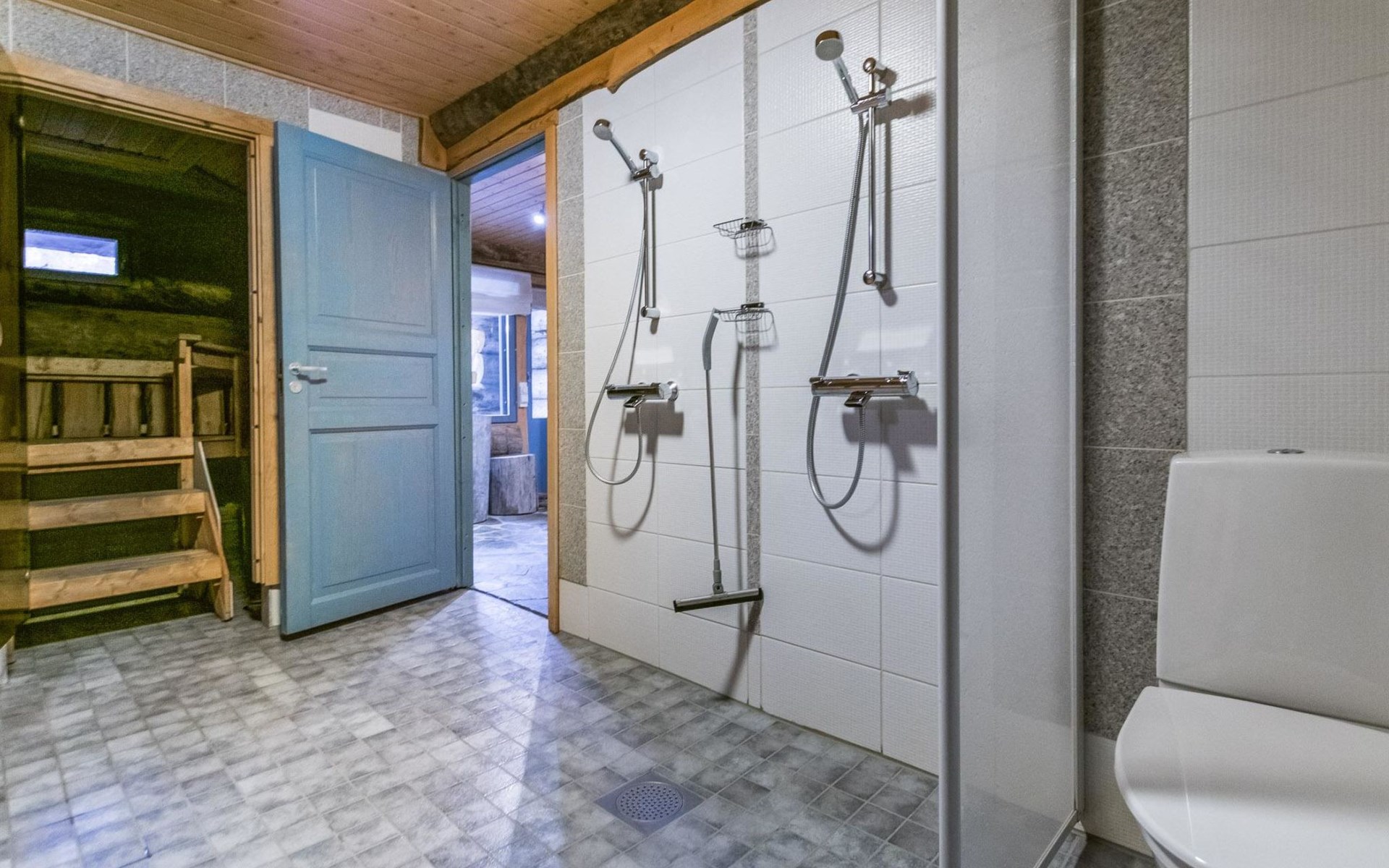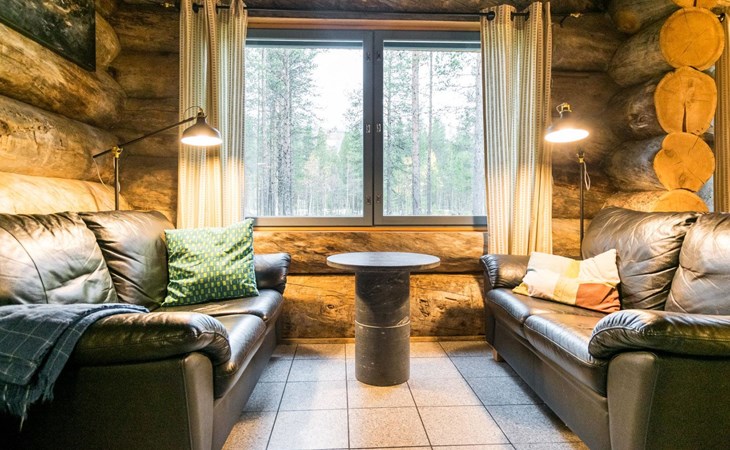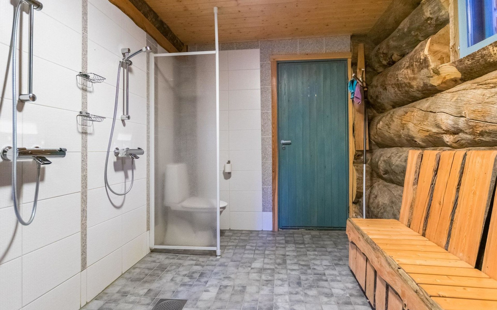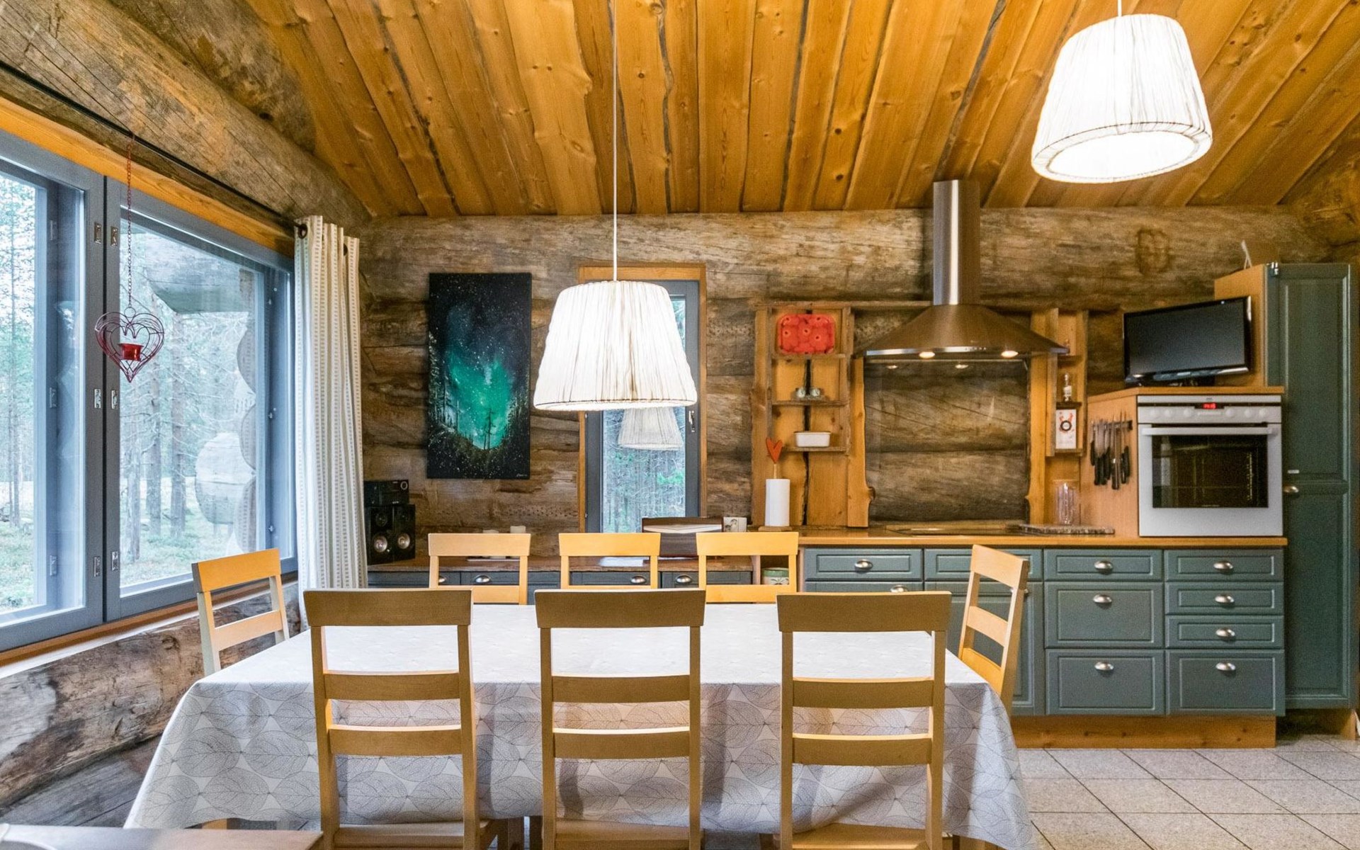 52 km north from Kemijärvi in Pyhätunturi tourist center. Silver log cabin built in 2007. Downstairs: living room/kitchen, bedroom with double bed, bedroom with bunk bed and one single bed, bedroom with bunk bed and one single bed, fireplace room, toilet + toilet seat in the washroom, sauna (wood heat and electric stove) and open porch. Upstairs: living room, bedroom with two single beds, sleeping loft with two beds and toilet.
