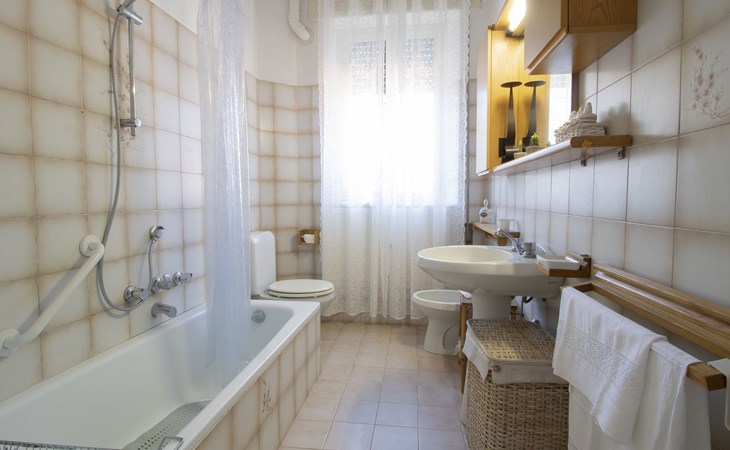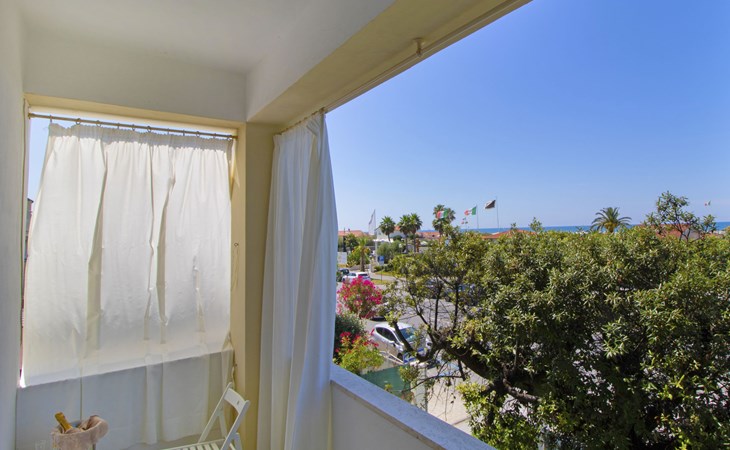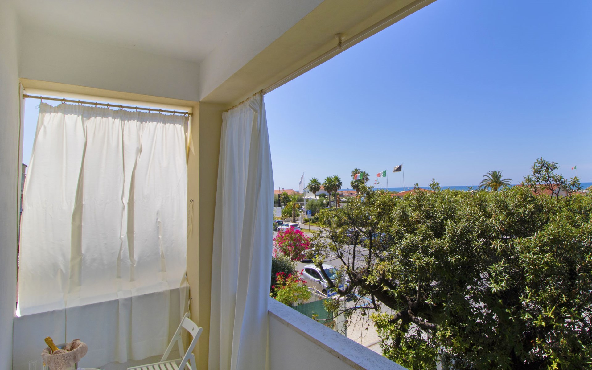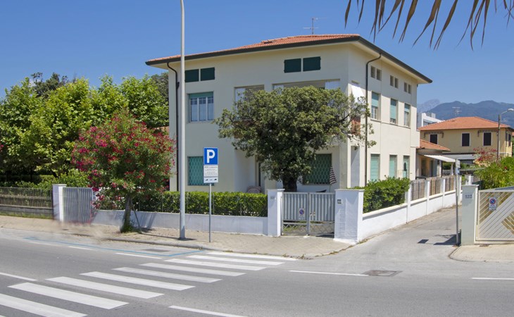 In a truly unique environment, the house is ideal for an all-sea holiday with a large terrace facing the sea. Comfortable 3-family house "Sandra". In the centre of Marina di Pietrasanta, in a sunny position, 50 m from the sea, 50 m from the beach. Heating available only from 01.Nov. - 15.Apr.. Linen change (suppl. charge extra). Towel change (suppl. charge extra). Parking (limited number of spaces) on the premises. Shop, grocery 300 m, supermarket 1 km, restaurant, bar 300 m, pedestrian zone 1 km, bicycle rental 200 m, 10 minute walk to the centre, bus stop 30 m, railway station "Pietrasanta" 5 km, sandy beach 50 m. Surf school 500 m, sailing school. Nearby attractions: Forte dei Marmi 4 km, Pisa 30 km, Lucca 20 km, Viareggio 12 km, Cinque Terre 50 km, Firenze 90 km. Hiking paths: Alpi Apuane 10 m. Please note: suitable for families, baby equipment on request (extra).