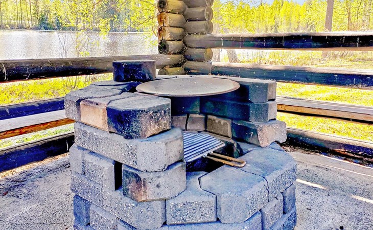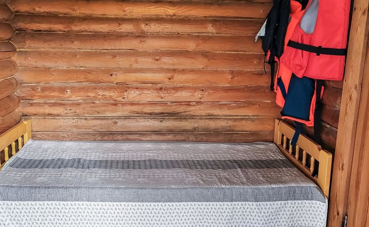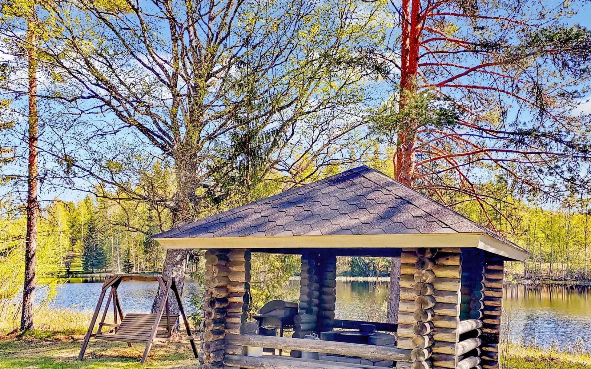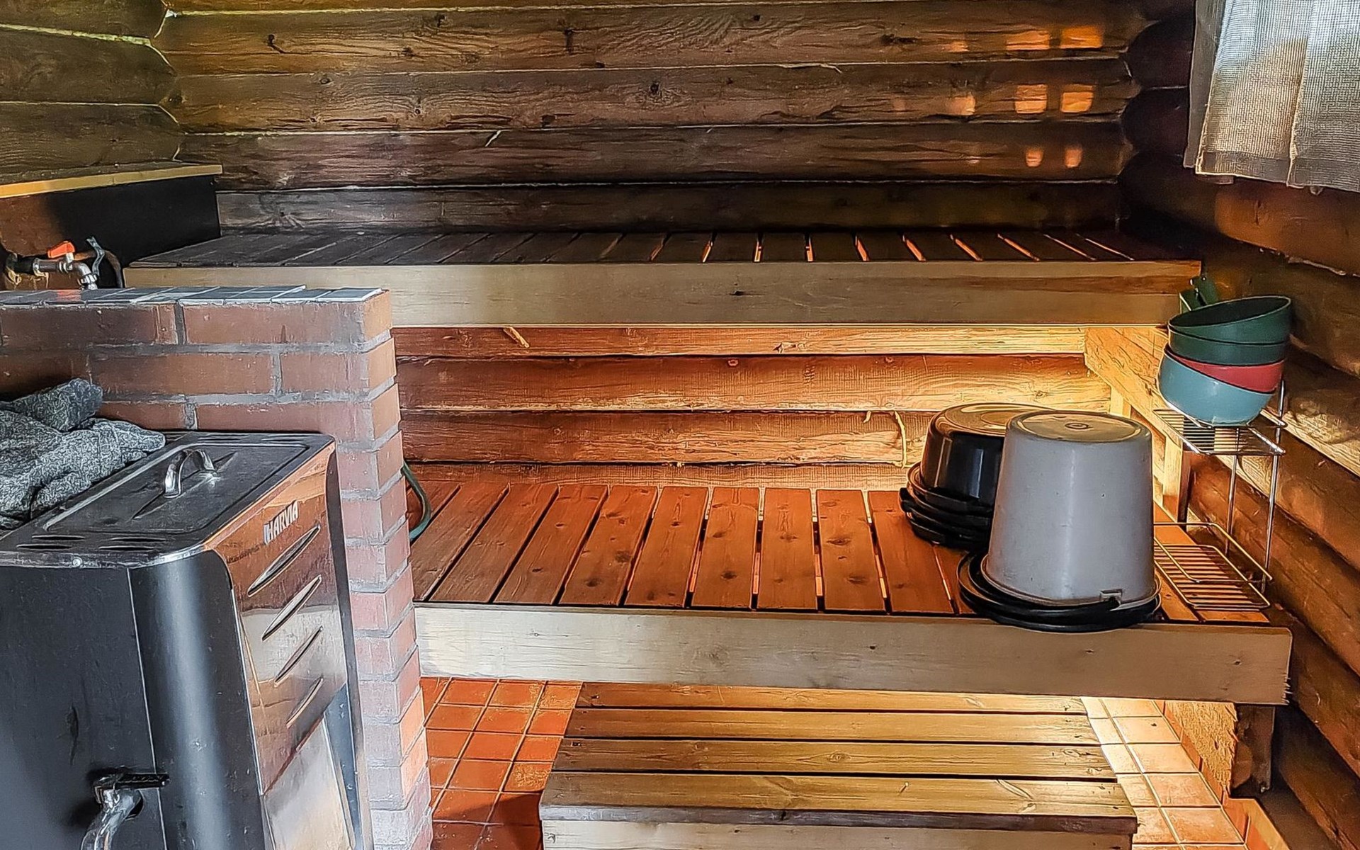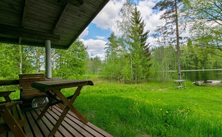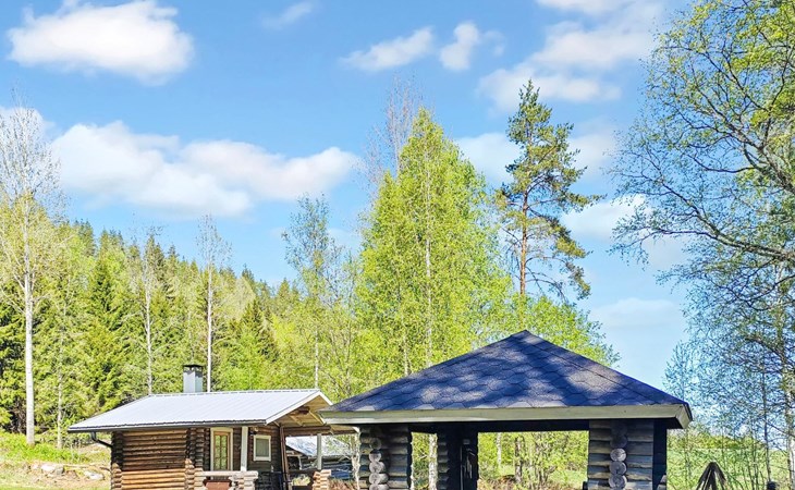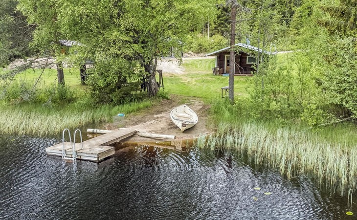 Separate lakeside sauna (wood-burning sauna stove, cold water tap) and cooking hut.
