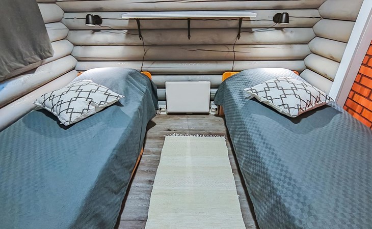46 km south from Jyväskylä, pond Korvenperänlampi 30 m, own pier and rowing boat. Artificially sanded deep beach. Log-built cabin (built in 2008), living room (sofa bed, 150 x 190 cm bed), kitchenette, bedroom (two beds), washroom with WC.