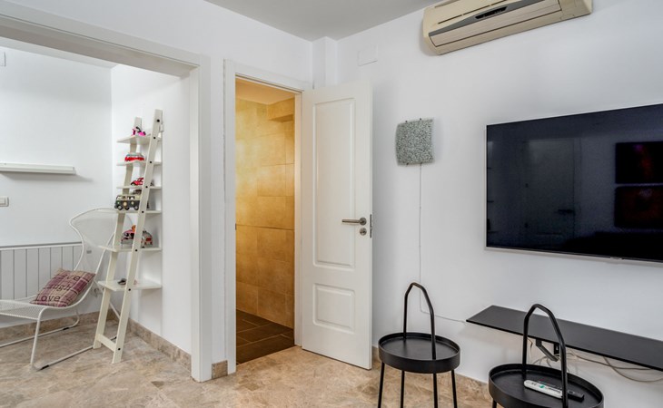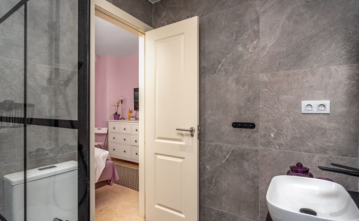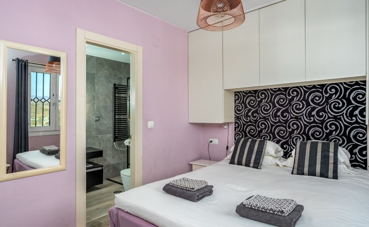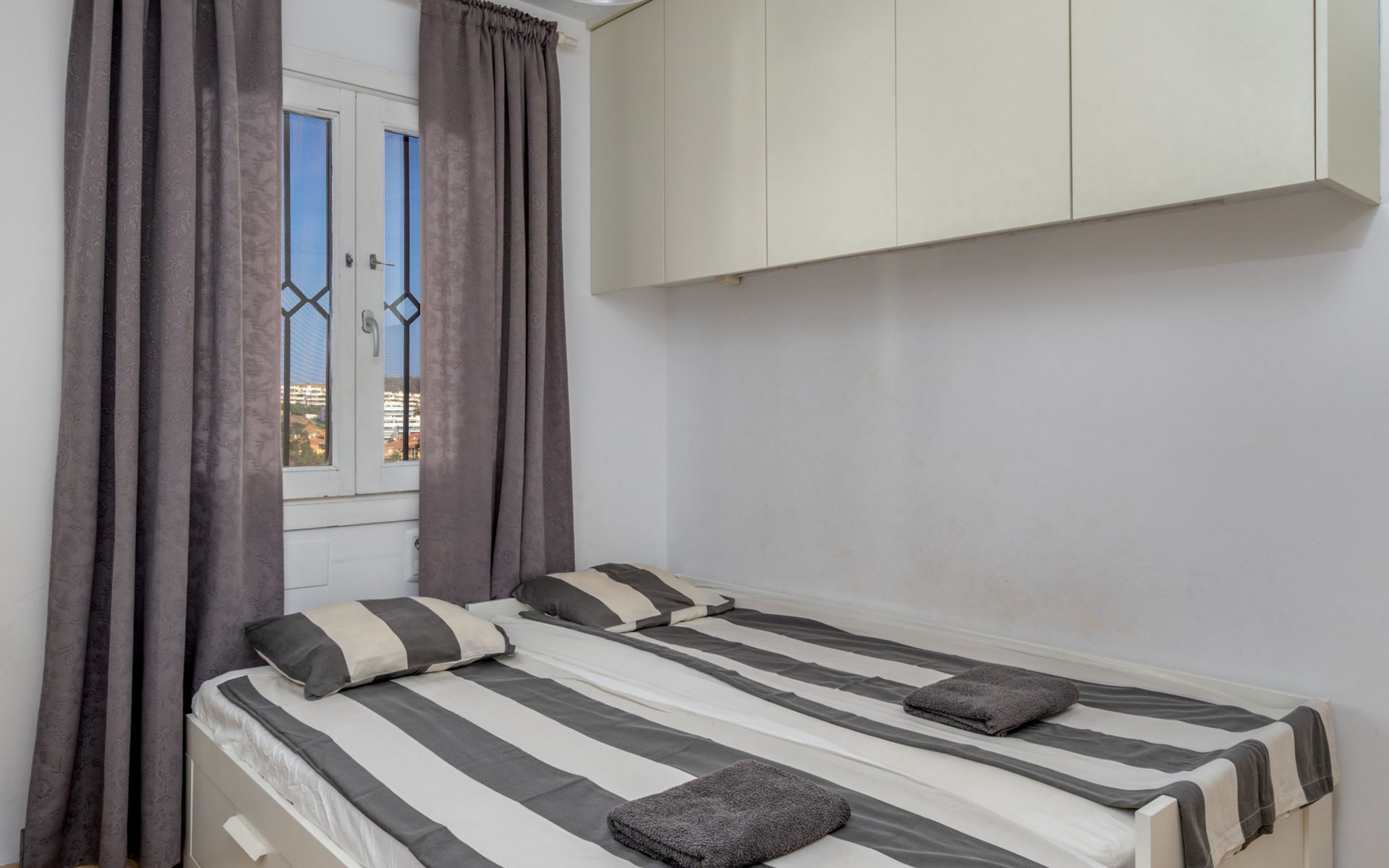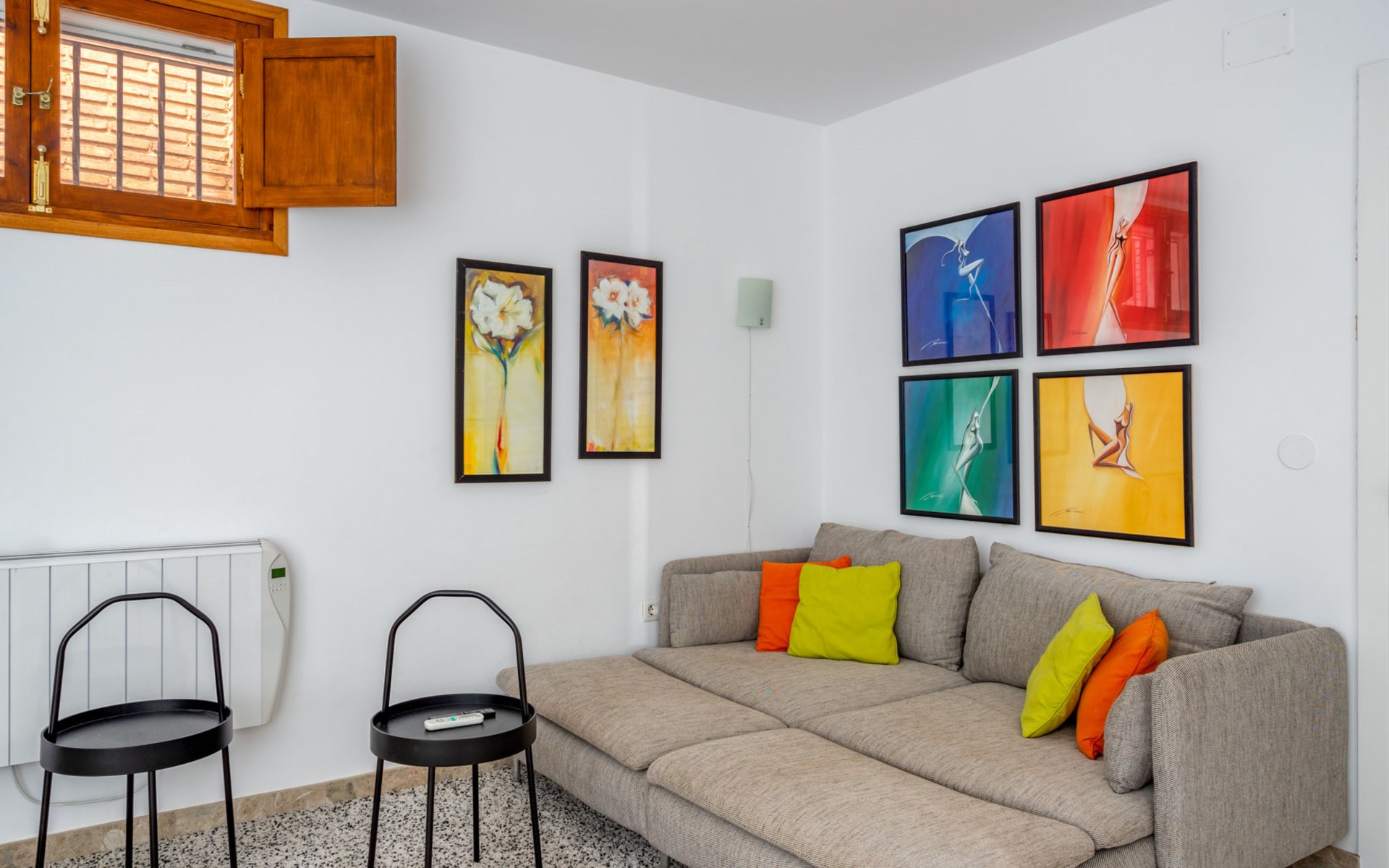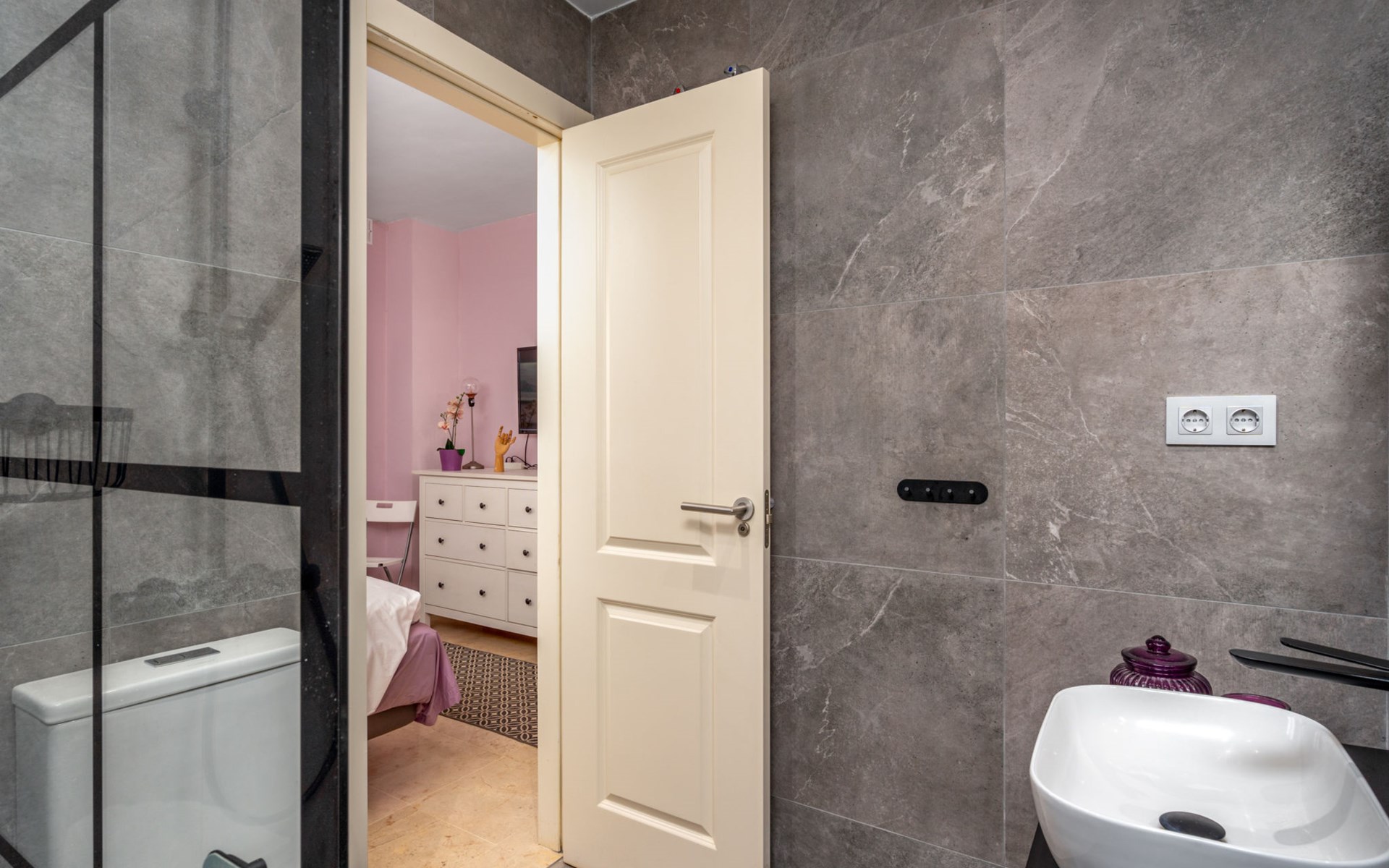 La cala de Mijas: Modern terraced house "Navigolf", built in 2005. On the outskirts, 1 km from the centre of La cala de Mijas, 1.5 km from the sea, 1.5 km from the beach, on the golf course. For shared use: garden with lawn, swimming pool (seasonal availability: 01.Jan. - 31.Dec.). Shower/WC in the pool area, children's pool, children's playground, parking at the house. Shop 1 km, supermarket 1 km, restaurant 800 m, café 1 km, bus stop "La Cala de Mijas" 1 km, sandy beach 1.5 km. Golf course (9 hole) 200 m. Please note: suitable for families. Object suitable for 4 adults + 4 children groups of teenagers on request only. Neighbourhood highly sensitive to noise. Quietness and good behaviour expected.