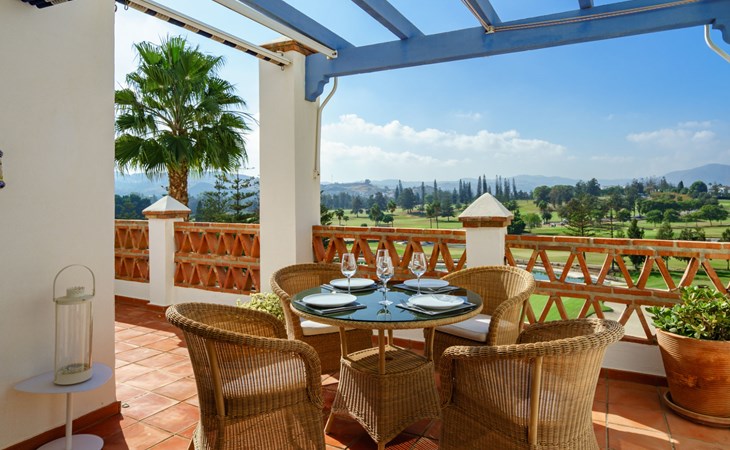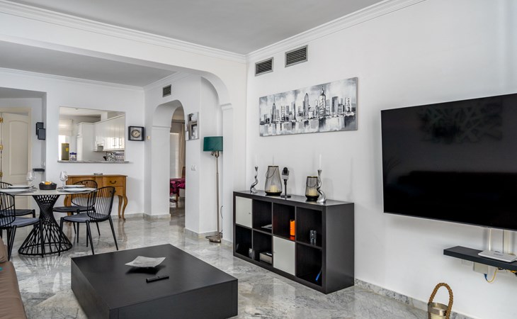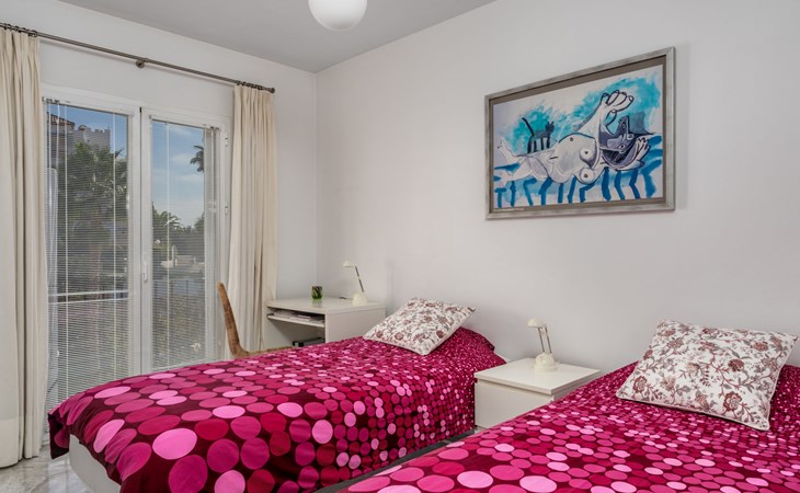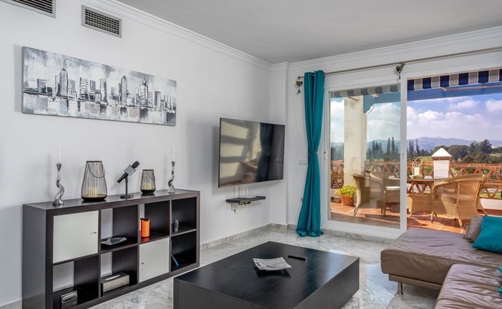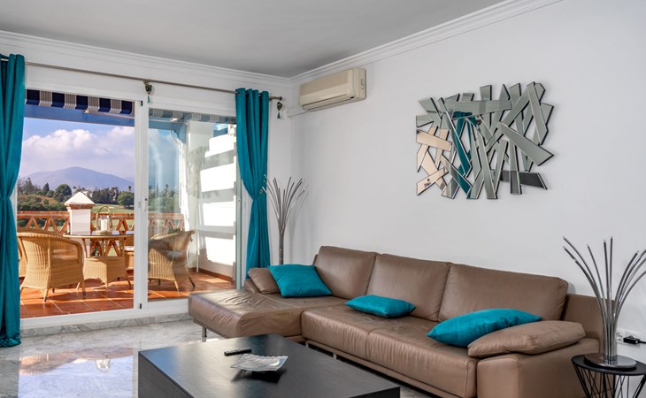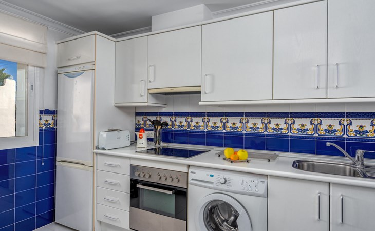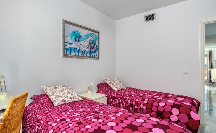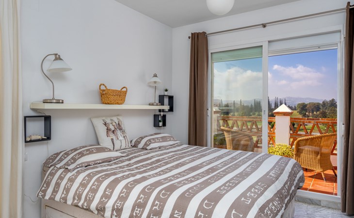 Apartment block "Las Golondrinas golf view". In a quiet, sunny position, 4.5 km from the sea, 4.5 km from the beach, on the golf course. For shared use: well-kept garden, swimming pool angular (12 x 5 m, depth 130 - 165 cm, seasonal availability: 01.Apr. - 31.Oct. pool opening hours: 10:00-22:00) with internal staircase. Shower/WC in the pool area. In the complex: lift. Supermarket 2.5 km, restaurant, bar, café 700 m, bus stop "Hoyo 19 V" 900 m, sandy beach "Los Boliches, Fuengirola" 4.5 km. Golf course (36 hole) 300 m. Please note: car recommended. The owner does not accept any youth groups. Neighbourhood highly sensitive to noise. Quietness and good behaviour expected.