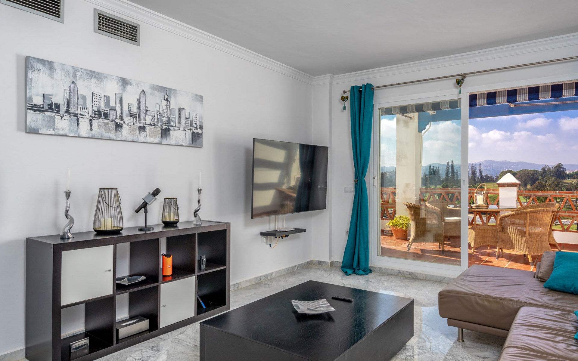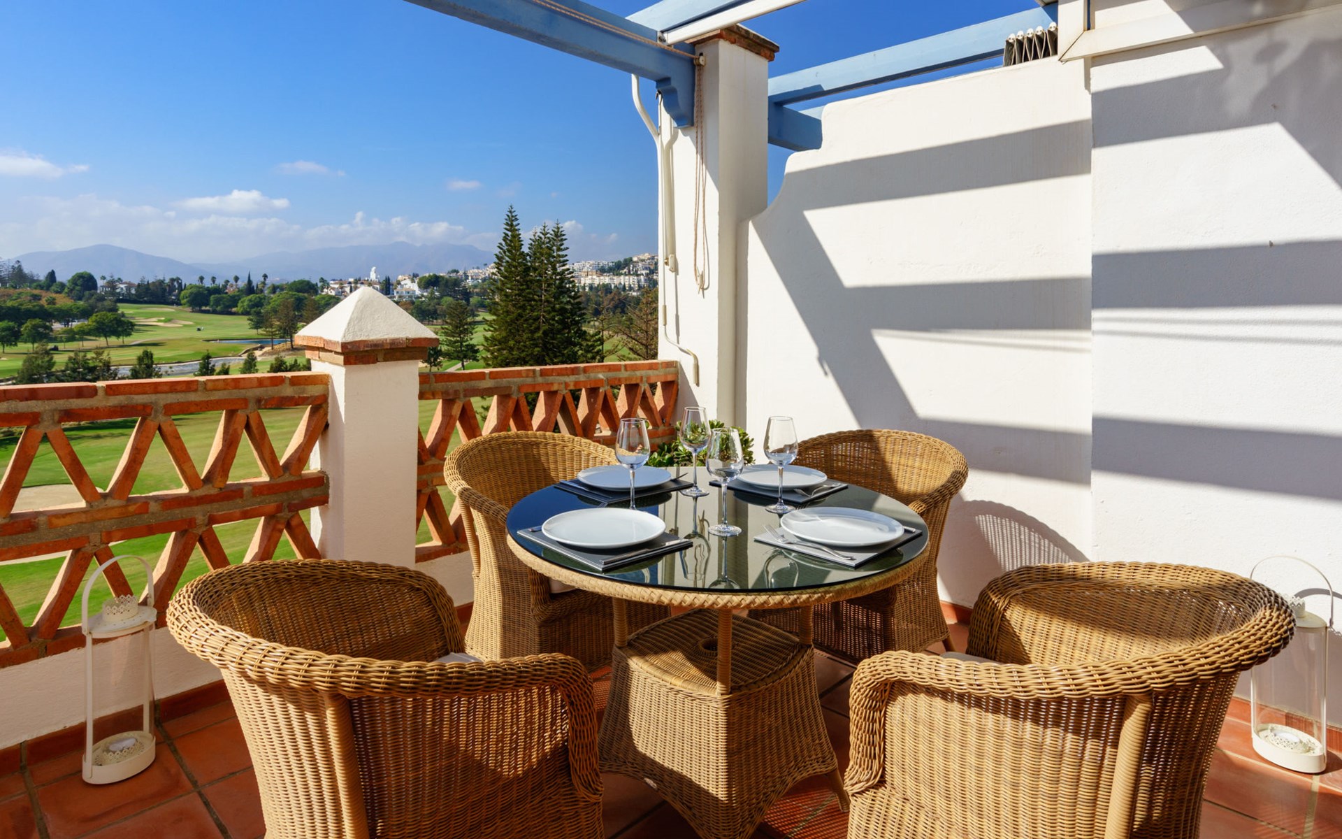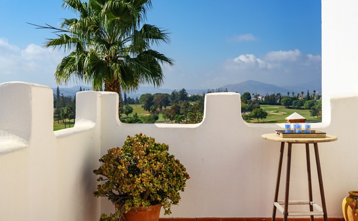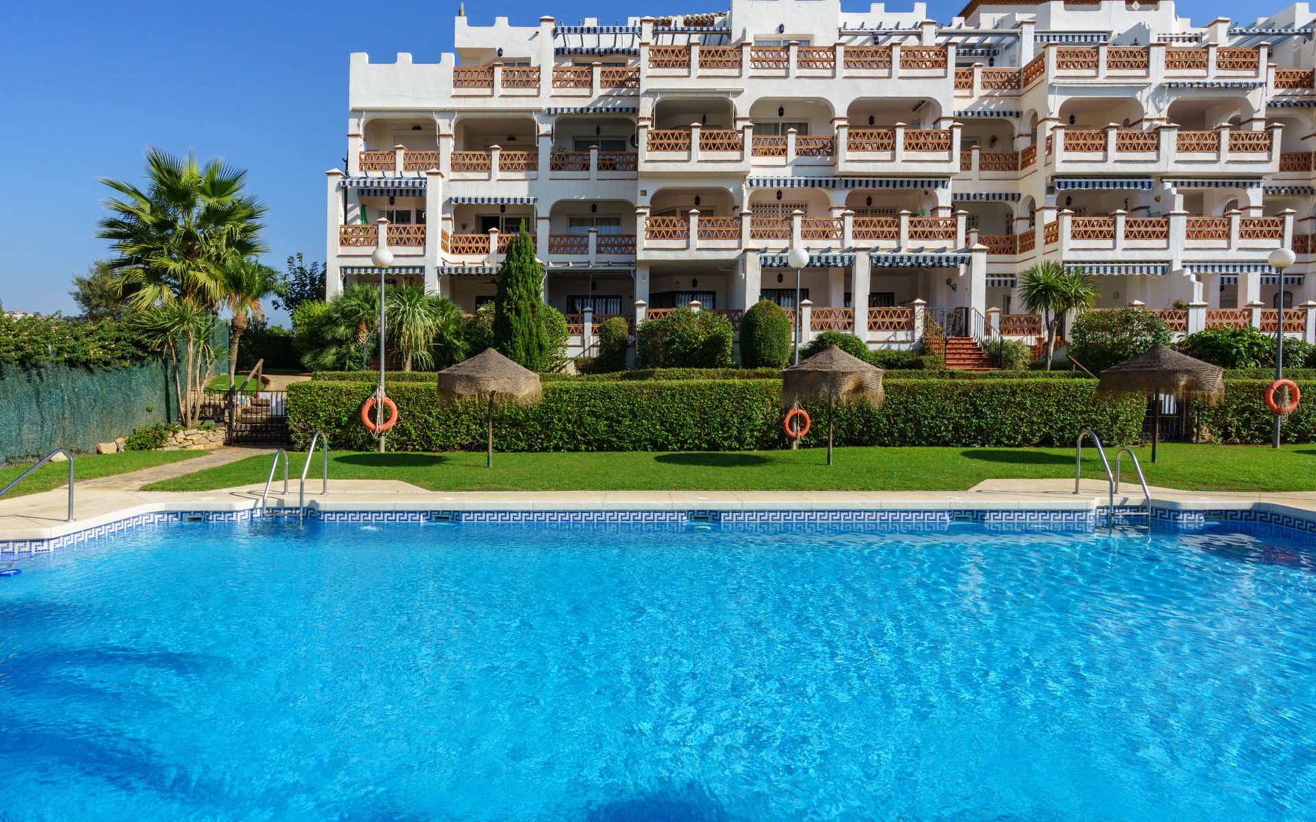 Apartment block "Las Golondrinas golf view". In a quiet, sunny position, 4.5 km from the sea, 4.5 km from the beach, on the golf course. For shared use: well-kept garden, swimming pool angular (12 x 5 m, depth 130 - 165 cm, seasonal availability: 01.Apr. - 31.Oct. pool opening hours: 10:00-22:00) with internal staircase. Shower/WC in the pool area. In the complex: lift. Supermarket 2.5 km, restaurant, bar, café 700 m, bus stop "Hoyo 19 V" 900 m, sandy beach "Los Boliches, Fuengirola" 4.5 km. Golf course (36 hole) 300 m. Please note: car recommended. The owner does not accept any youth groups. Neighbourhood highly sensitive to noise. Quietness and good behaviour expected.