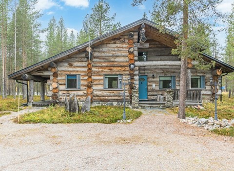 Spacious two-story log house 2017, downstairs vestibule, hallway, technical space, big living room with dining area, separate toilet, well equipped kitchen (access to the terrace), utility room, washroom with toilet, sauna (electricity), bedroom with double bed (access to the terrace), bedroom with 2 beds, 2 terraces.