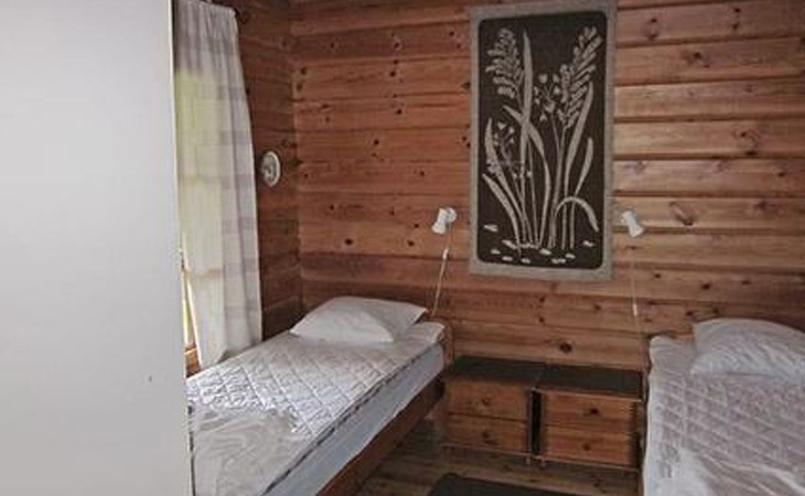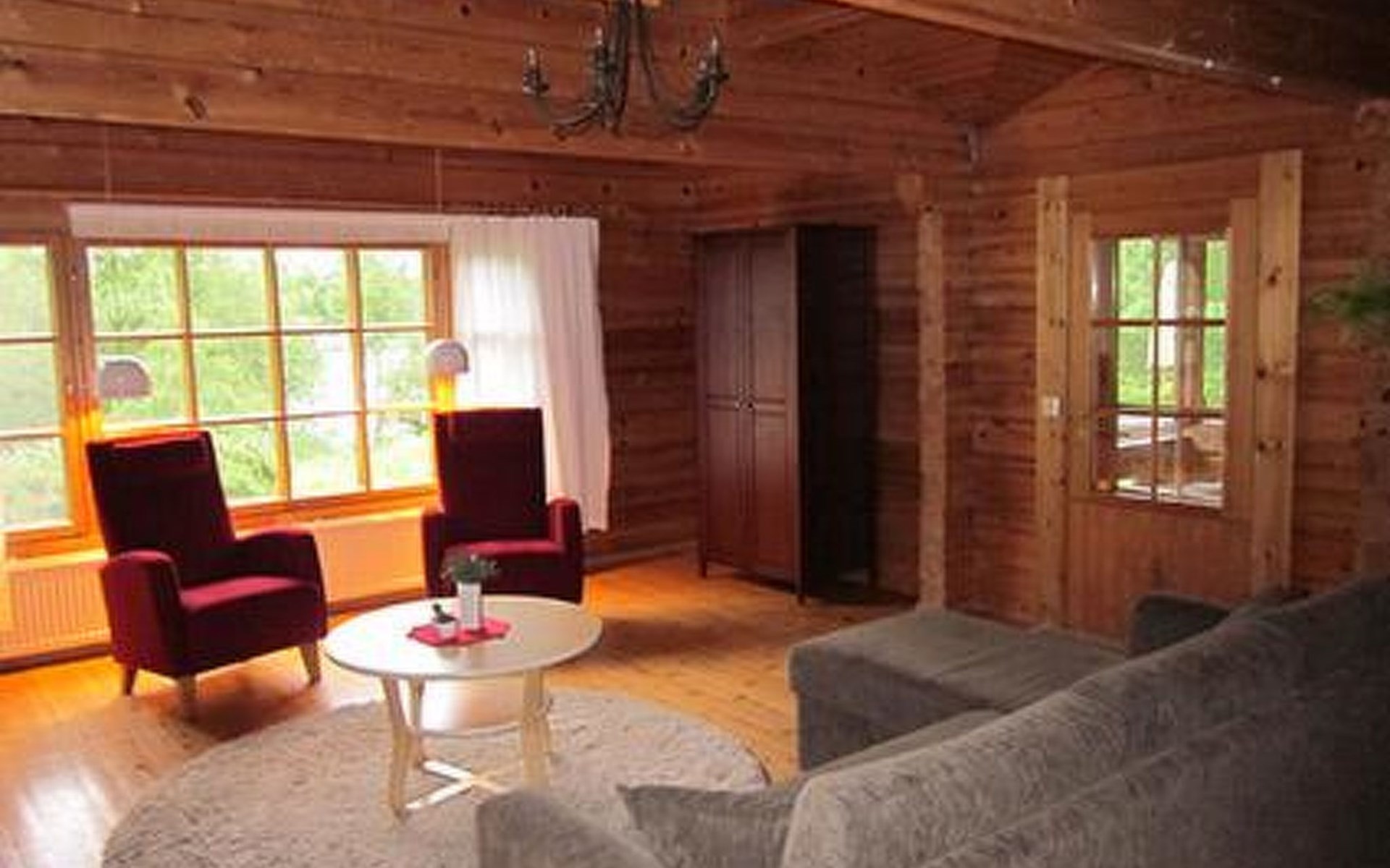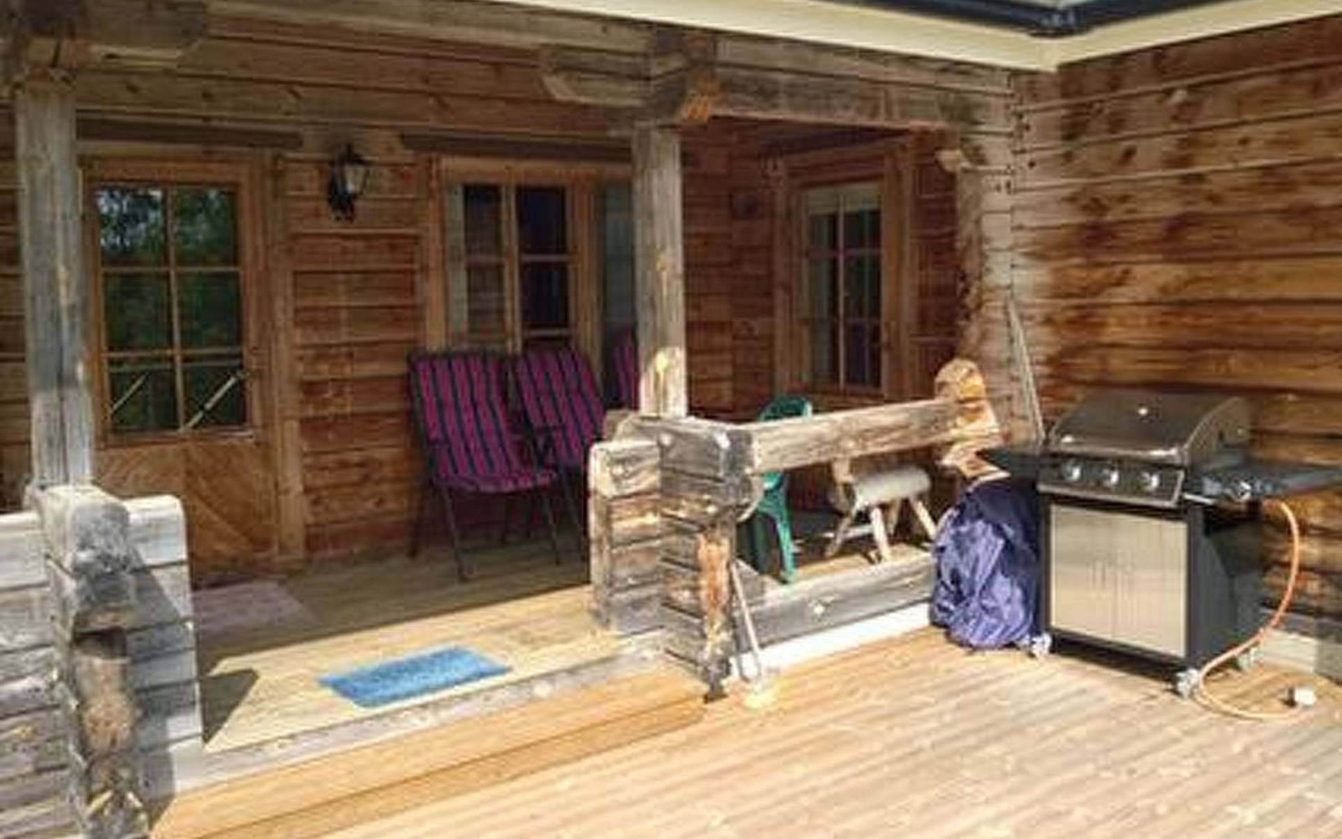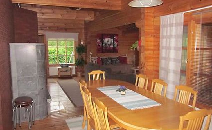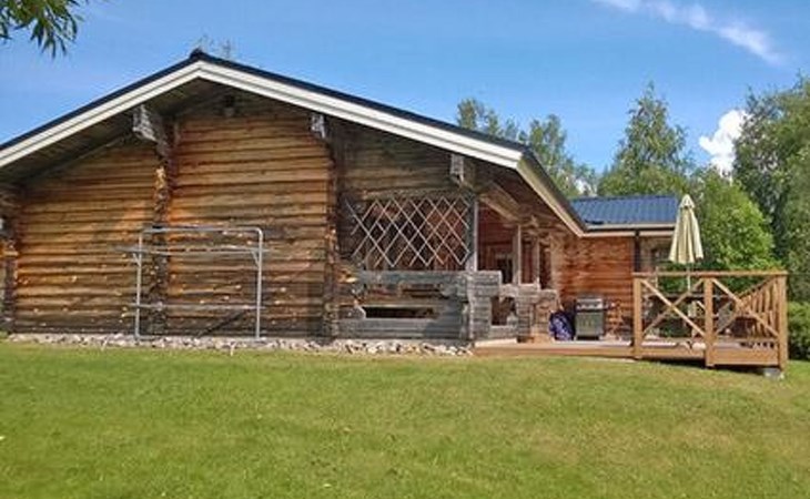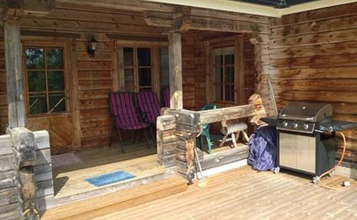 Log cabin 1991, kitchen, living room with 3 extra beds, 2 bedrooms with 2 beds in each, dressing room, washroom, sauna, 2 x open veranda (veranda on lakeside is 45 m²).