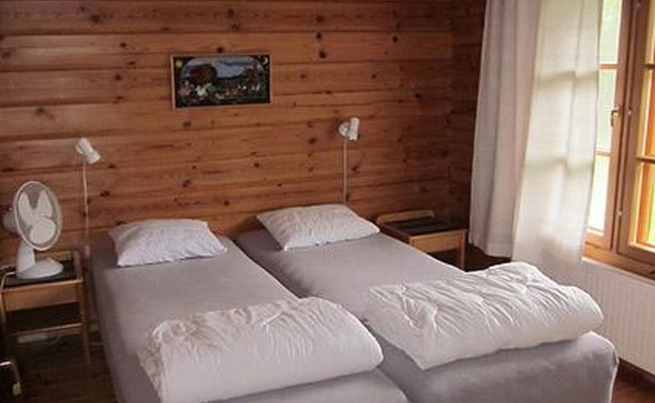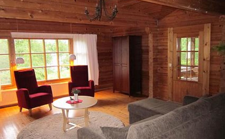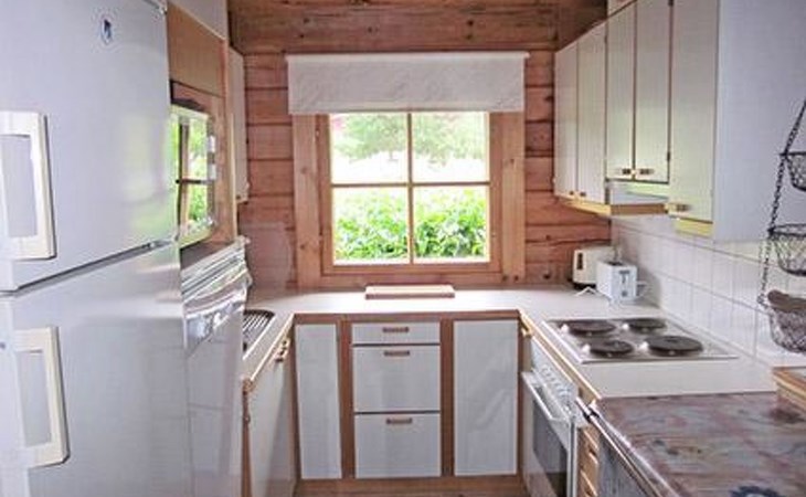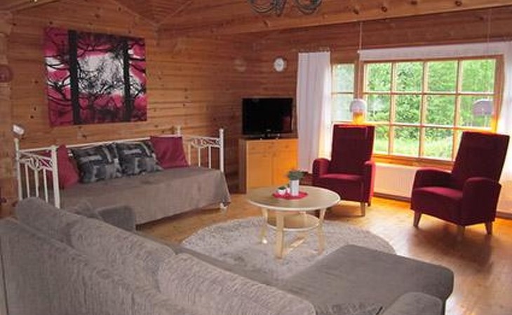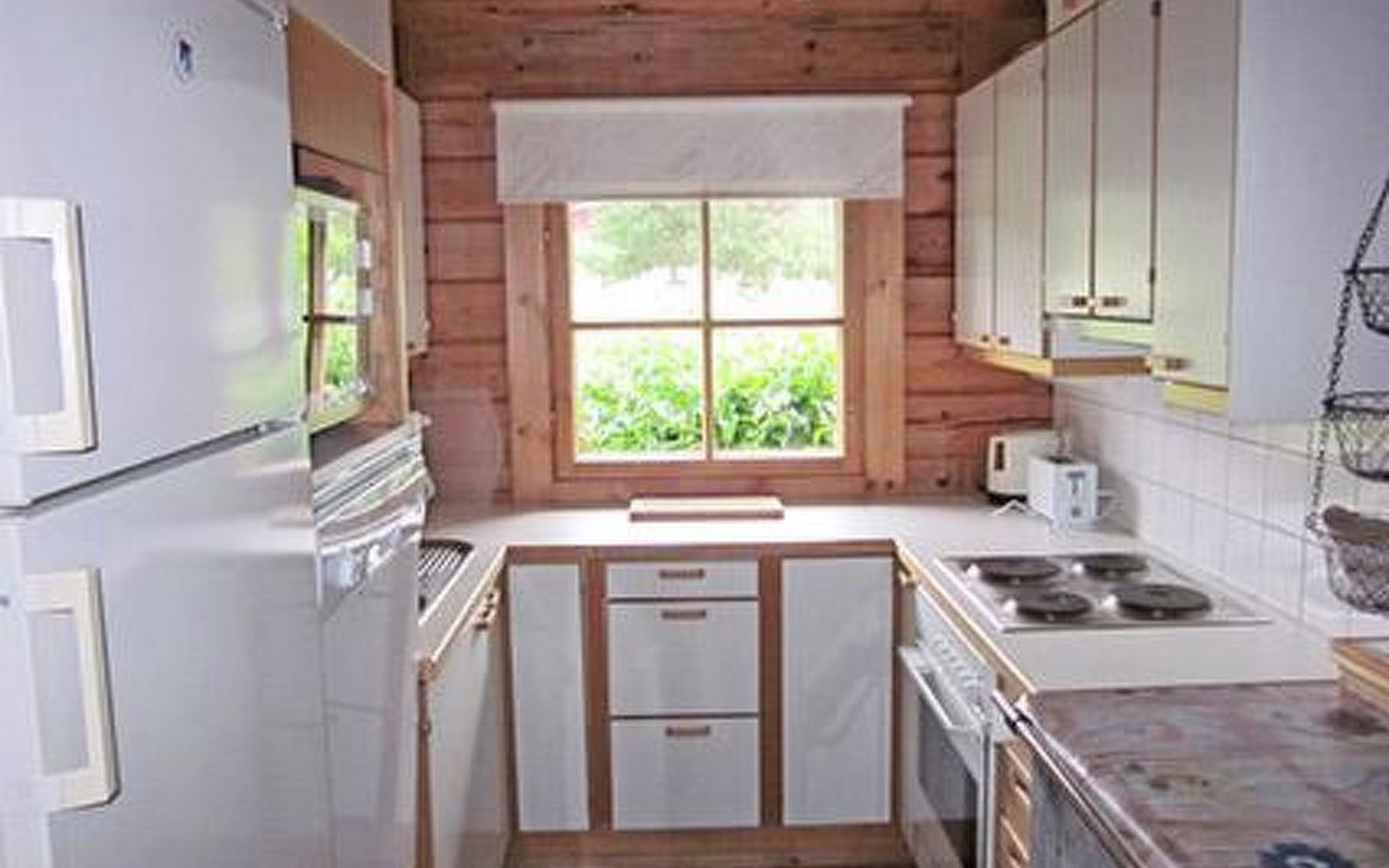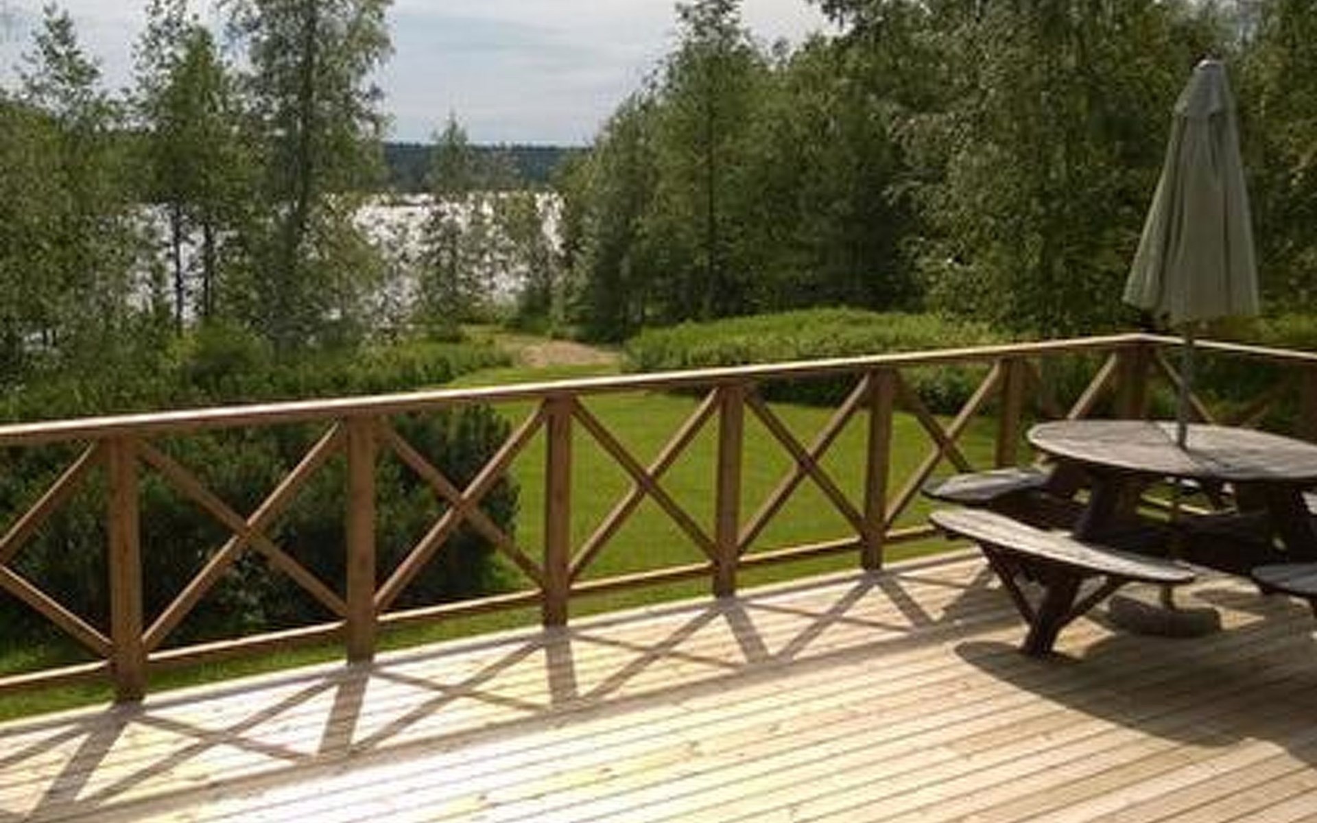 Log cabin 1991, kitchen, living room with 3 extra beds, 2 bedrooms with 2 beds in each, dressing room, washroom, sauna, 2 x open veranda (veranda on lakeside is 45 m²).