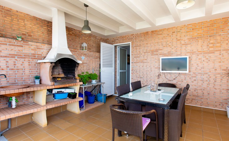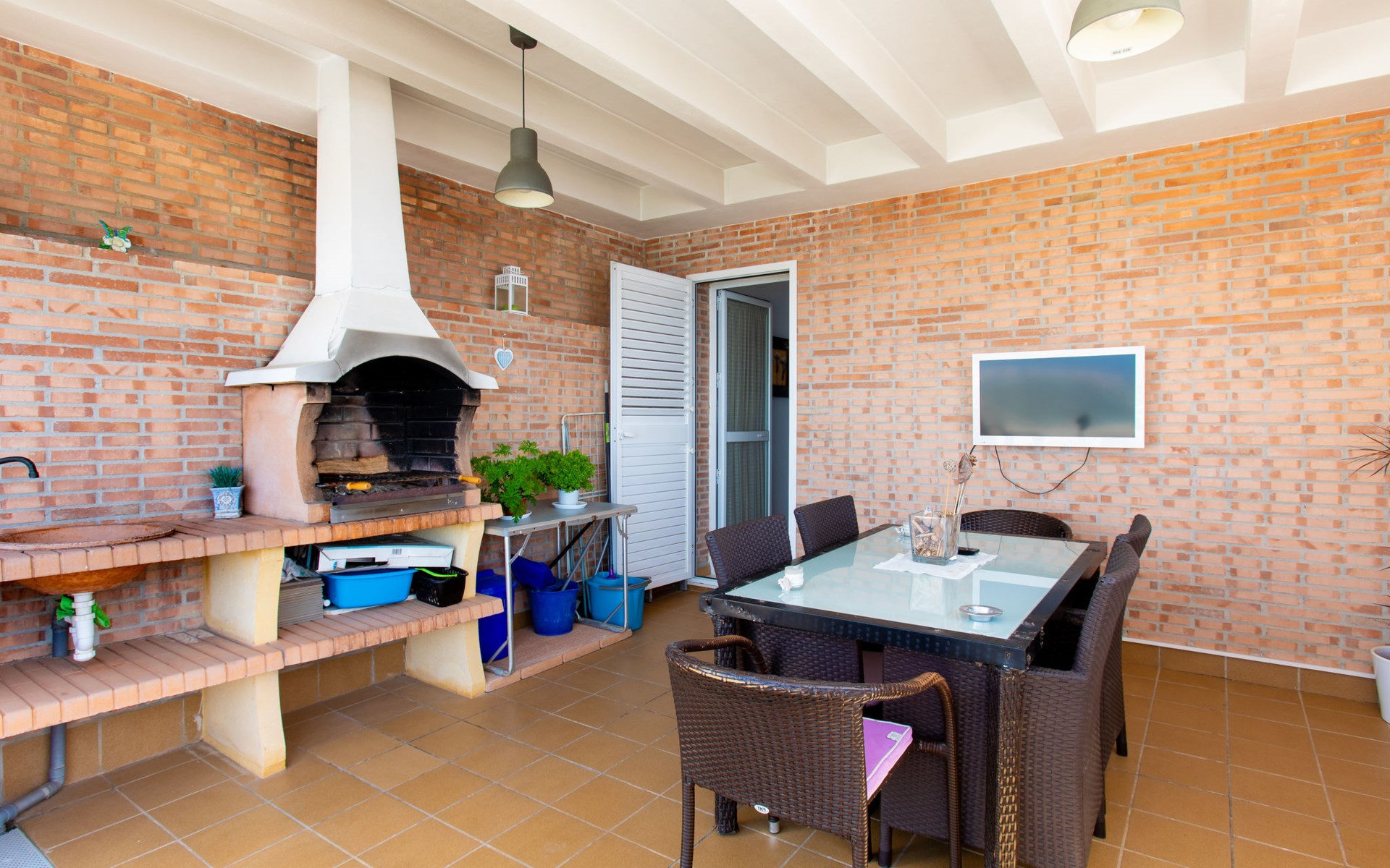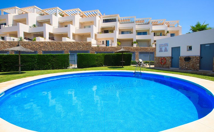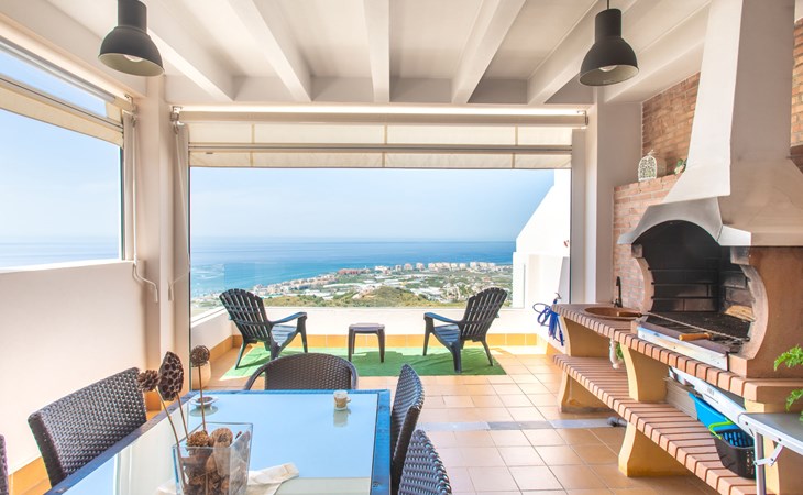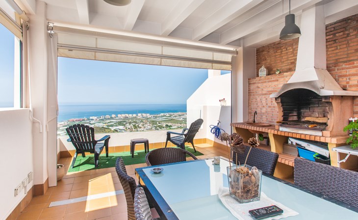 Torrox Costa 5 km from Nerja: Modern, beautiful, cosy terraced house "Balcón del Mediterraneo", 3 storeys. 28 houses in the residence. Outside the resort, 2.5 km from the centre of Torrox Costa, in a quiet position on top of a hill, residential area (villas), 1.7 km from the sea, 1.7 km from the beach, south facing position. For shared use: courtyard, swimming pool round (depth 120 - 180 cm, seasonal availability: 15.Apr. - 31.Sep.) with salt water. Outdoor shower, pool maintenance by the owner/gardener. Private: arbour, terrace, garden furniture, barbecue, public parking on the road. Shop 3.5 km, grocery 3.5 km, supermarket 3.5 km, shopping centre 25 km, restaurant 3.5 km, bar 1 km, bakery 3.5 km, café 1 km, pedestrian zone 3.5 km, pub garden 1 km, bus stop "Torrox Costa" 3.5 km, railway station "Malaga" 50 km, underground station "Malaga" 50 km, sandy beach "Peñoncillo" 1.7 km, diving center 7 km. Sports harbour 25 km, marina 25 km, golf course (18 hole) 20 km, surf school 25 km, sailing school 25 km, tennis 7 km, walking paths from the house 10 km, slopes 90 km. Nearby attractions: Frigiliana 7 km, Nerja 5 km, Competa 10 km, Torre del Mar 18 km, Maro 90 km, La Herradura 24 km. Well-known ski regions can easily be reached: Sierra Nevada 90 km. Well-known lakes can easily be reached: La Viñuela 27 km. Hiking paths: Sierra Tejeda 9 km, Sierra Almijara 12 km. Please note: car recommended. Baby equipment (included). The owner does not accept any youth groups.