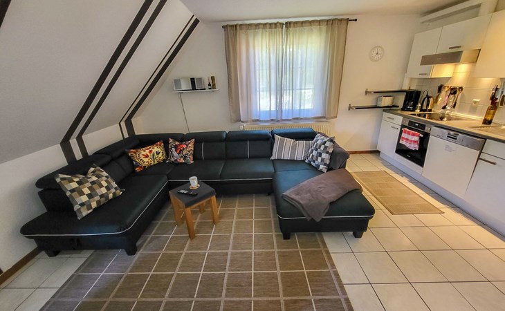 Residence "Im Dörp, Am Bodden, Jollekieker". 300 m from the centre of Waase, on the outskirts, 6 km from the centre of Gingst, 20 km from the centre of Bergen auf Rügen, 300 m from the sea. For shared use: property 3'500 m2 with lawn and plants. Supermarket 6 km, restaurant 6 km, sandy beach "Schaabe" 35 km, grass beach 400 m, indoor swimming pool 35 km. Nearby attractions: Wassersportzentrum Suhrendorf 3 km. The residence consists of 4 identical, maximum two-storey houses. Covered bicycle parking available.