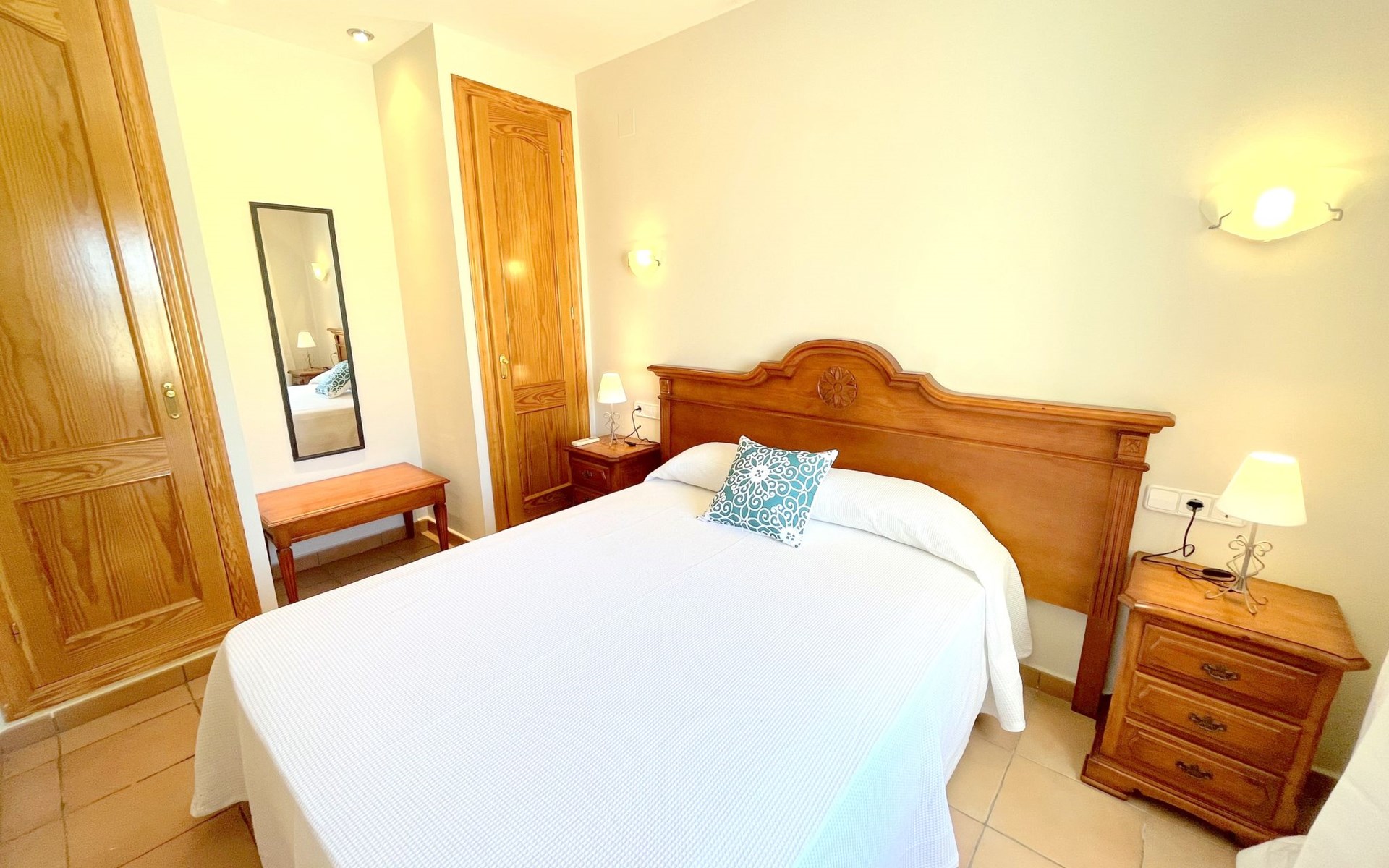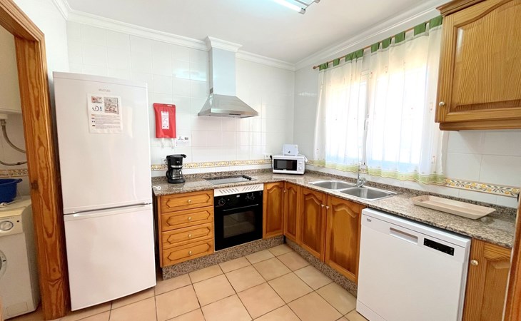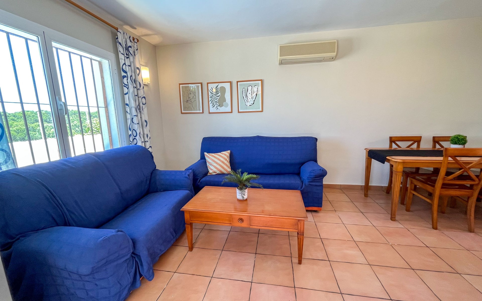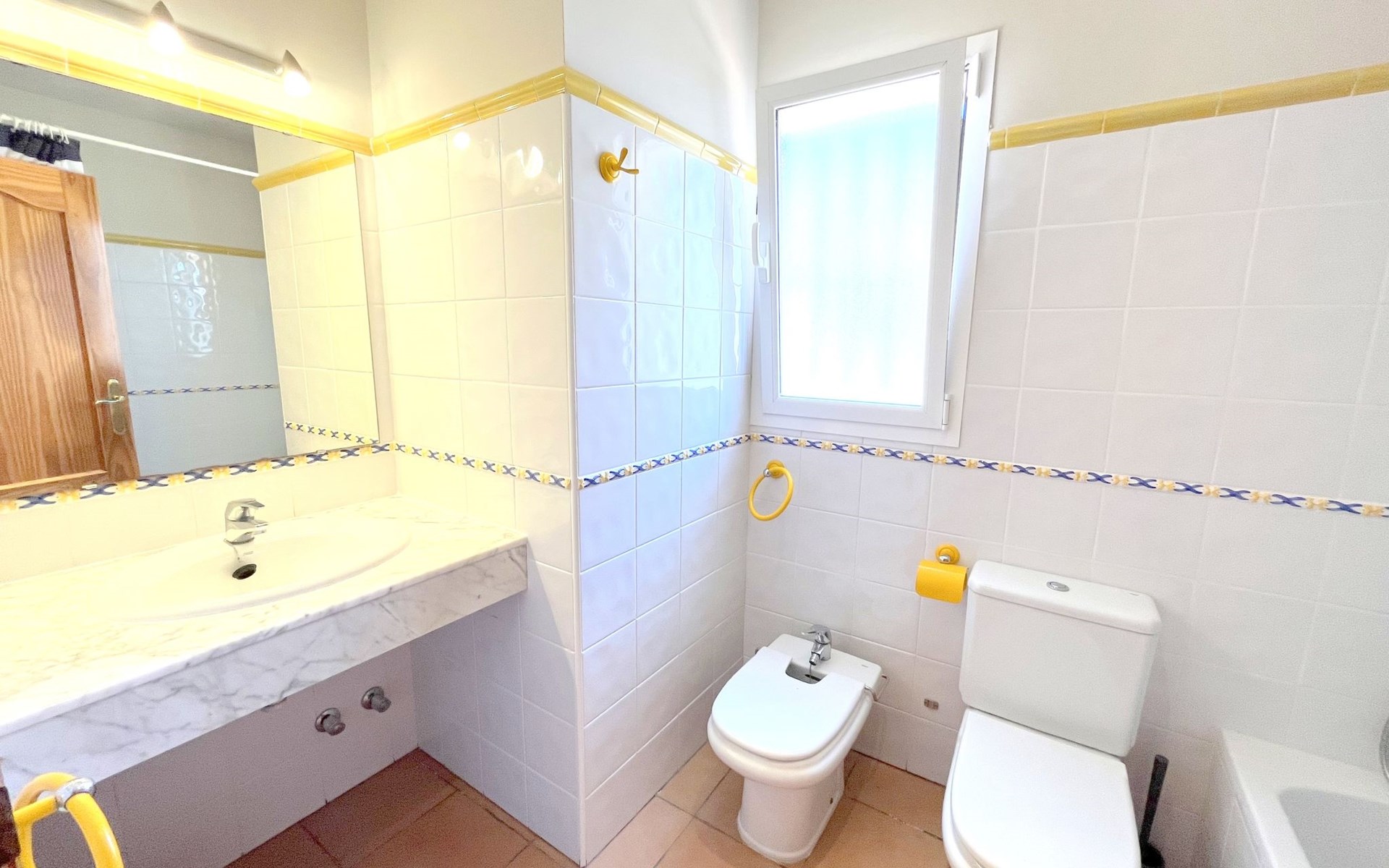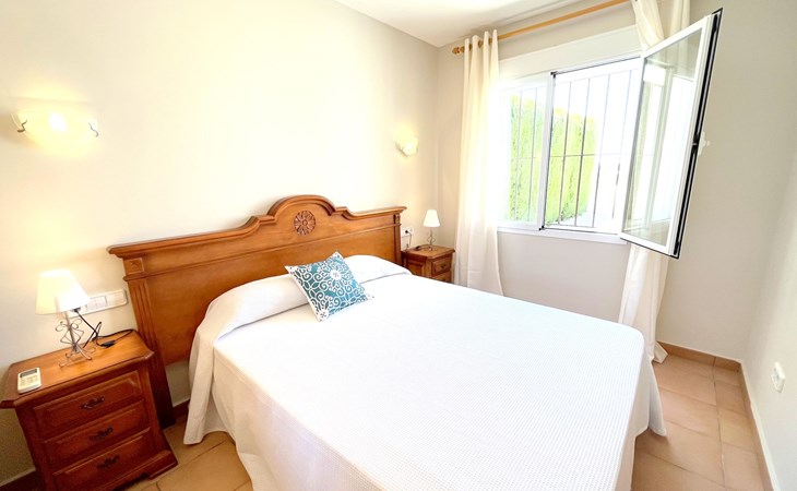 House. 24 houses in the residence. In the district of Monte Javea 5 km from the centre of Jávea-Arenal, on a slope, 3 km from the sea. Private: property (fenced) with wildlife garden and trees, swimming pool (8 x 4 m, depth 120 - 220 cm, seasonal availability: 01.Jan. - 31.Dec.). Public parking on the road. Shop 2.5 km, restaurant 1 km, bus stop "Calablanca" 3.6 km, sandy beach "Arenal" 5 km pebble beach "Granadella" 3 km. Tennis 1 km.