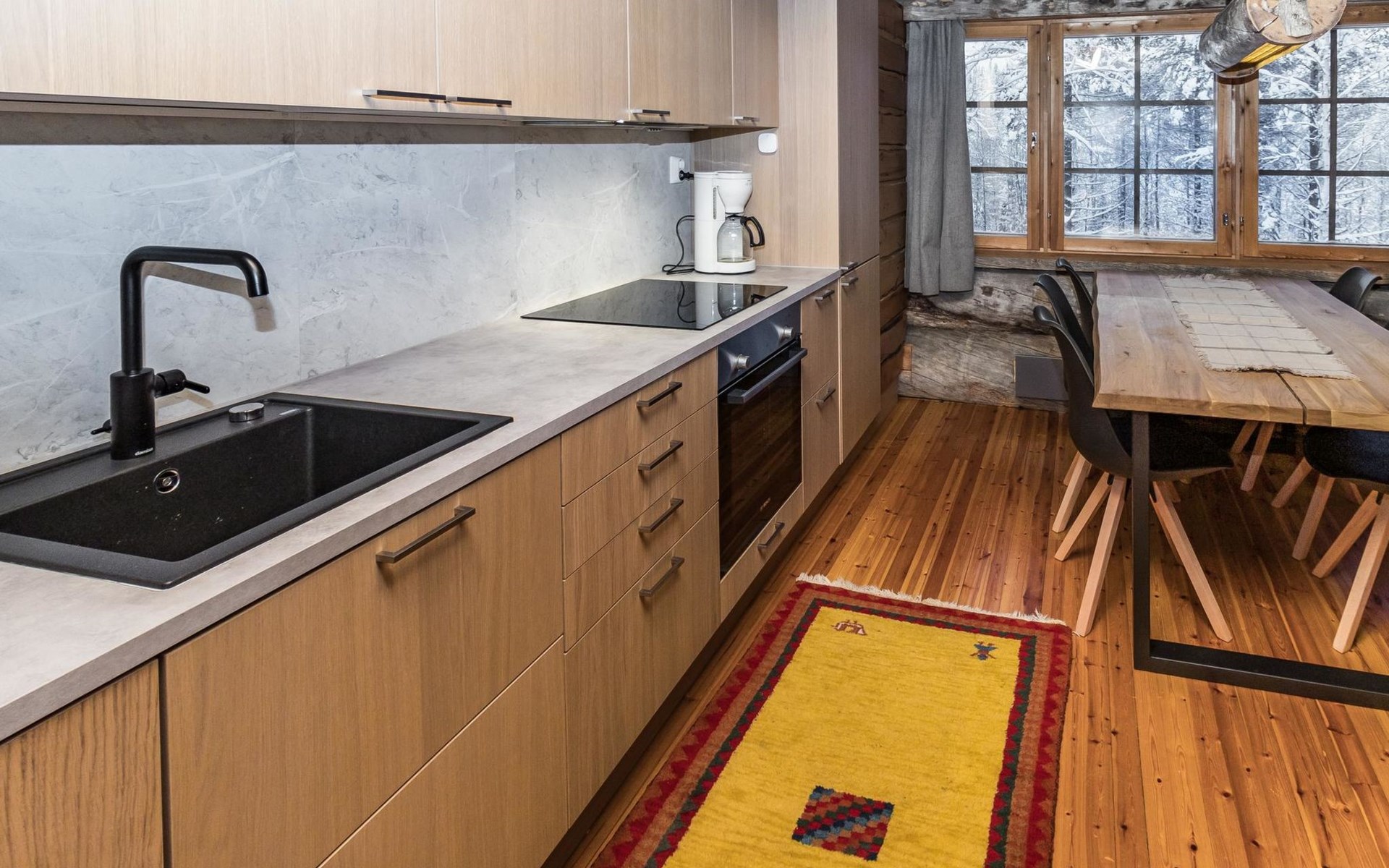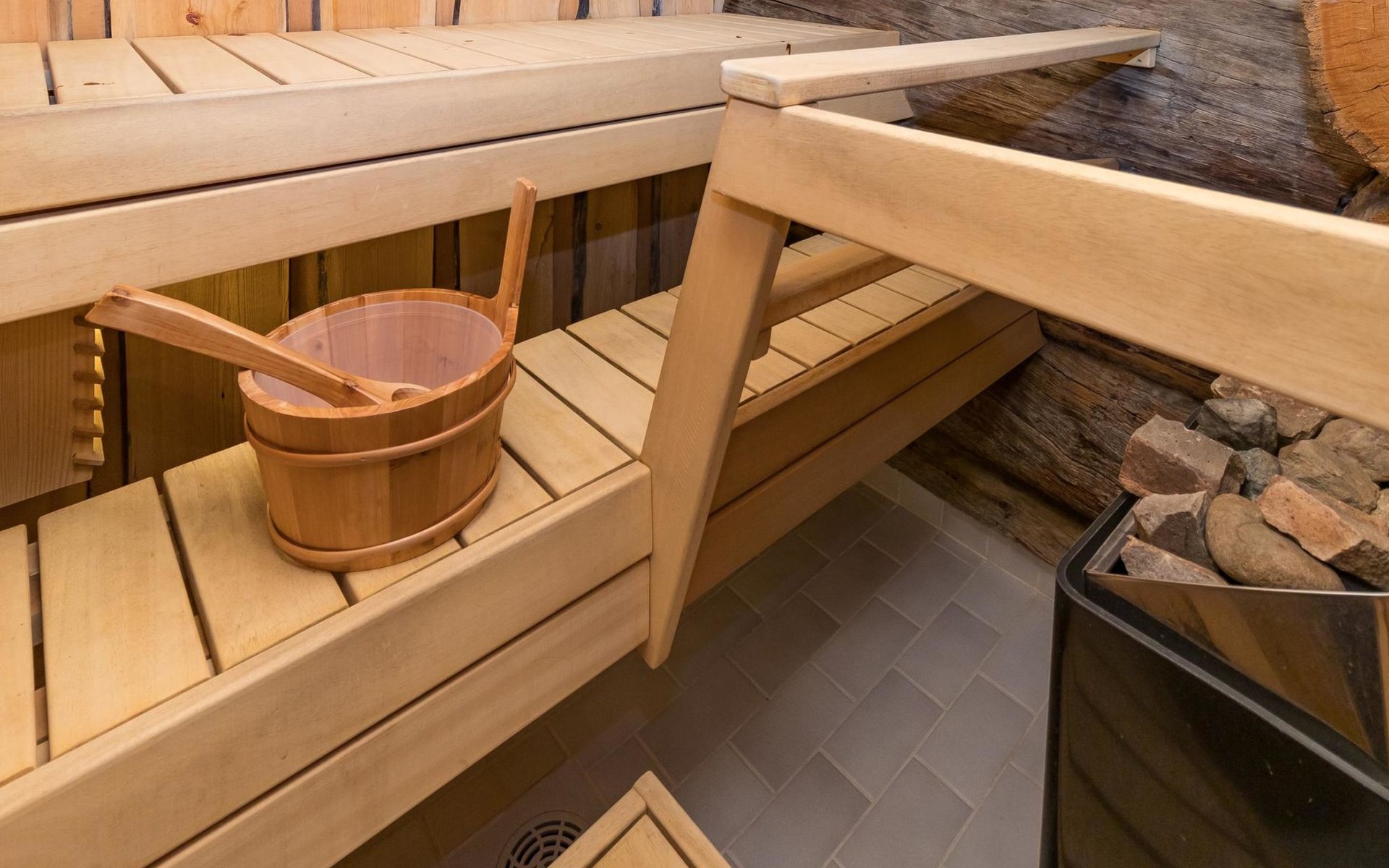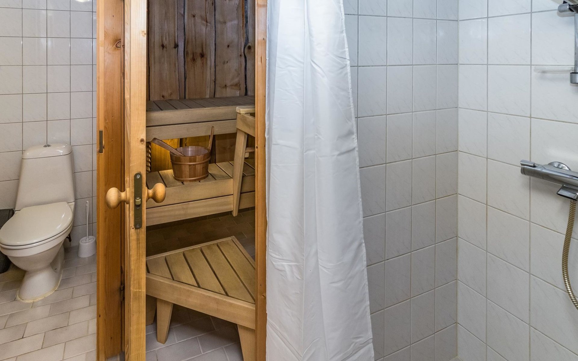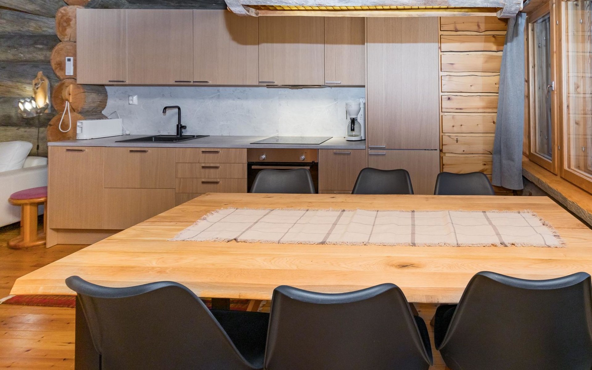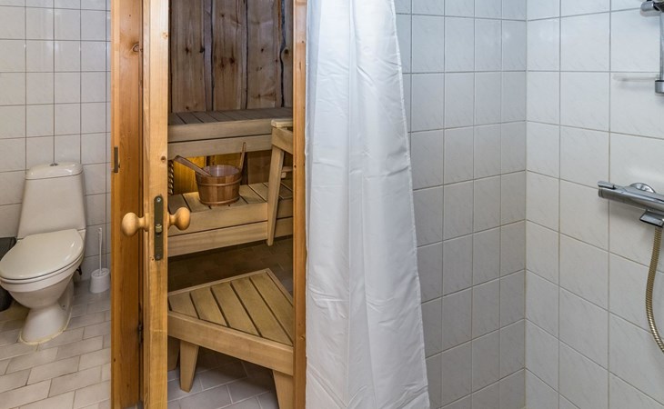 Living room/kitchen provides good space for cooking together. In addition, the destination features an electric sauna, offering relaxation opportunities at the end of the day.