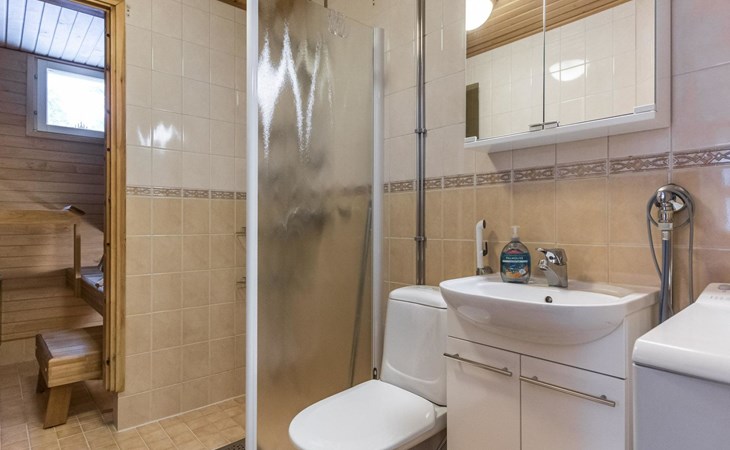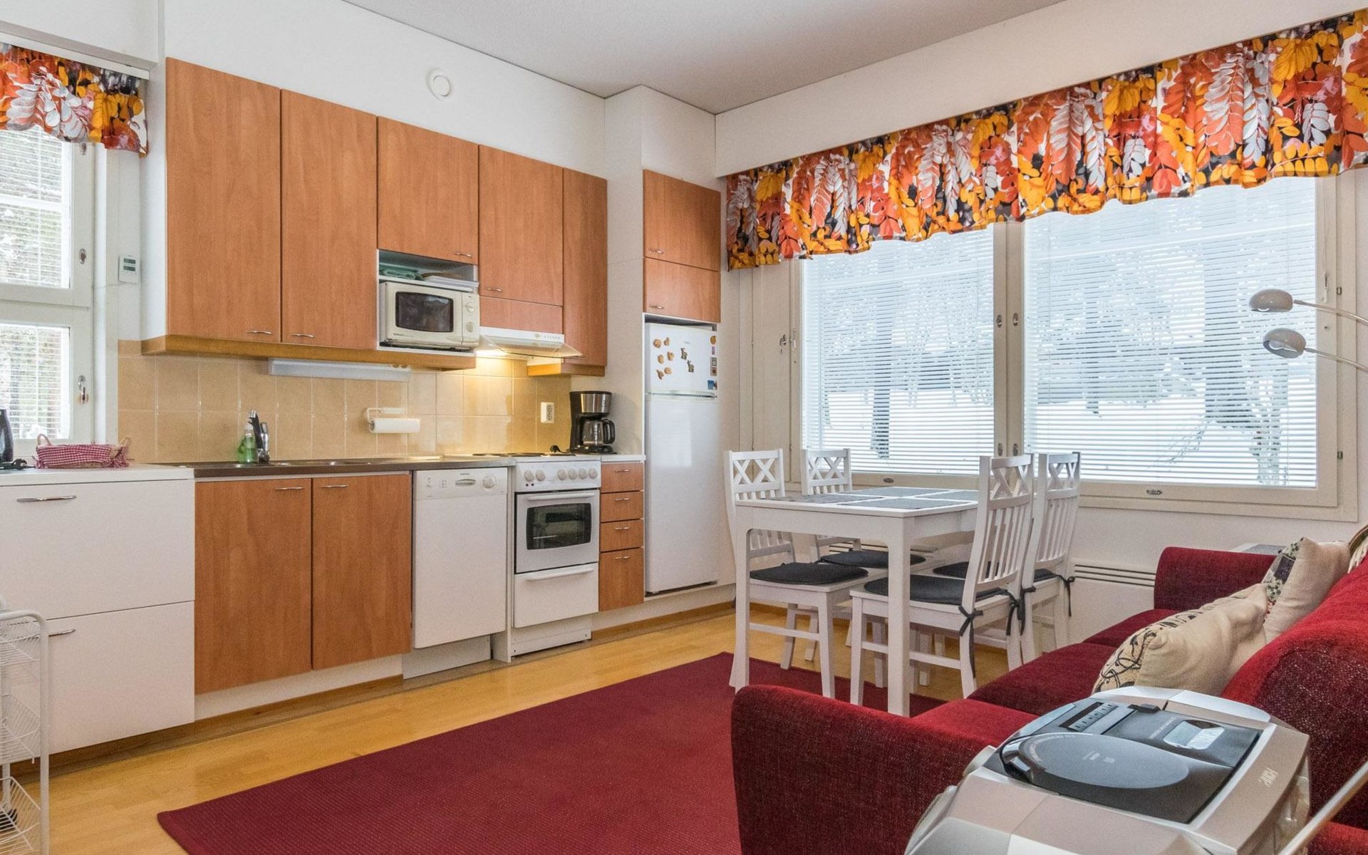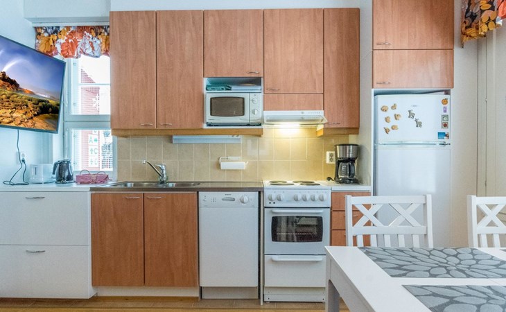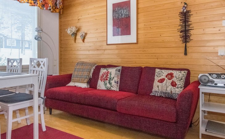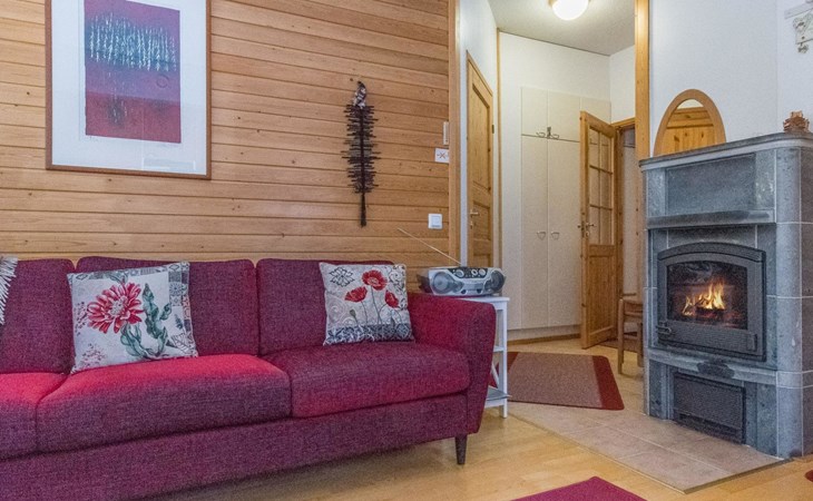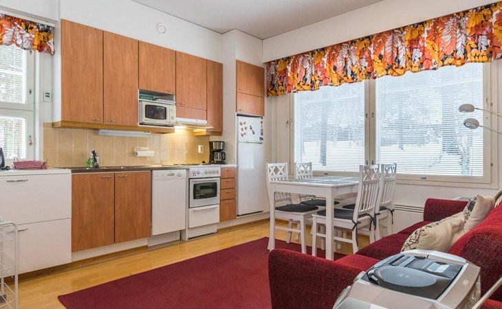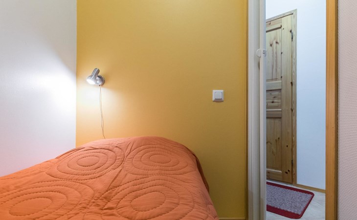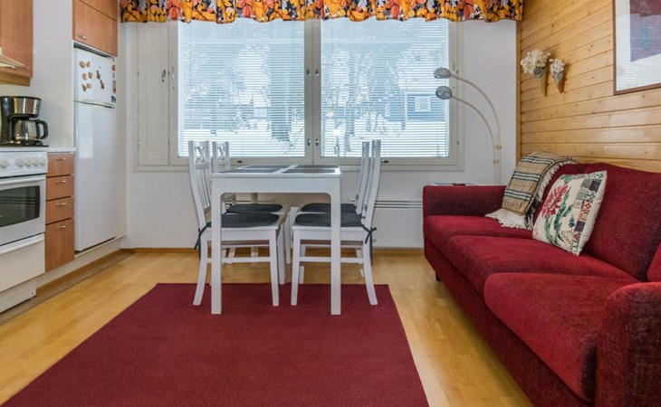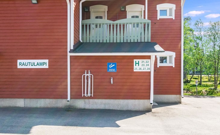 The 40-square-meter apartment has a kitchen/living room, a bedroom, an alcove, a washroom/toilet, a sauna and a small storage. Common ski maintenance room in Outapailakka-apartments premises.
