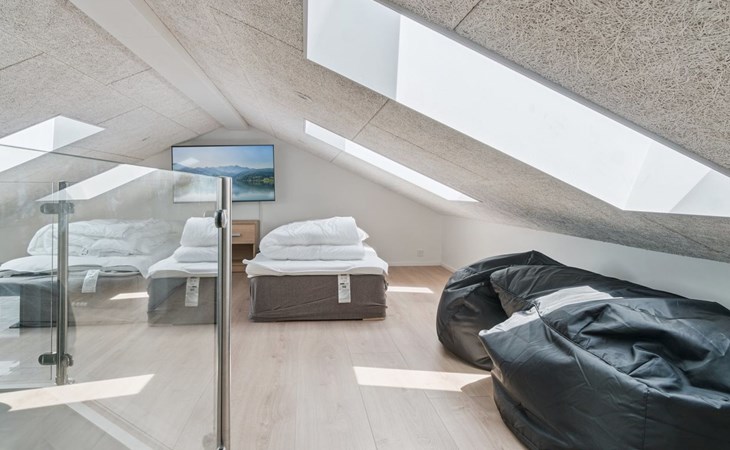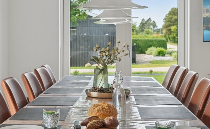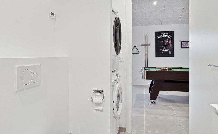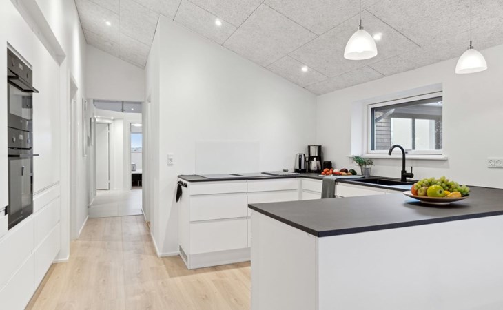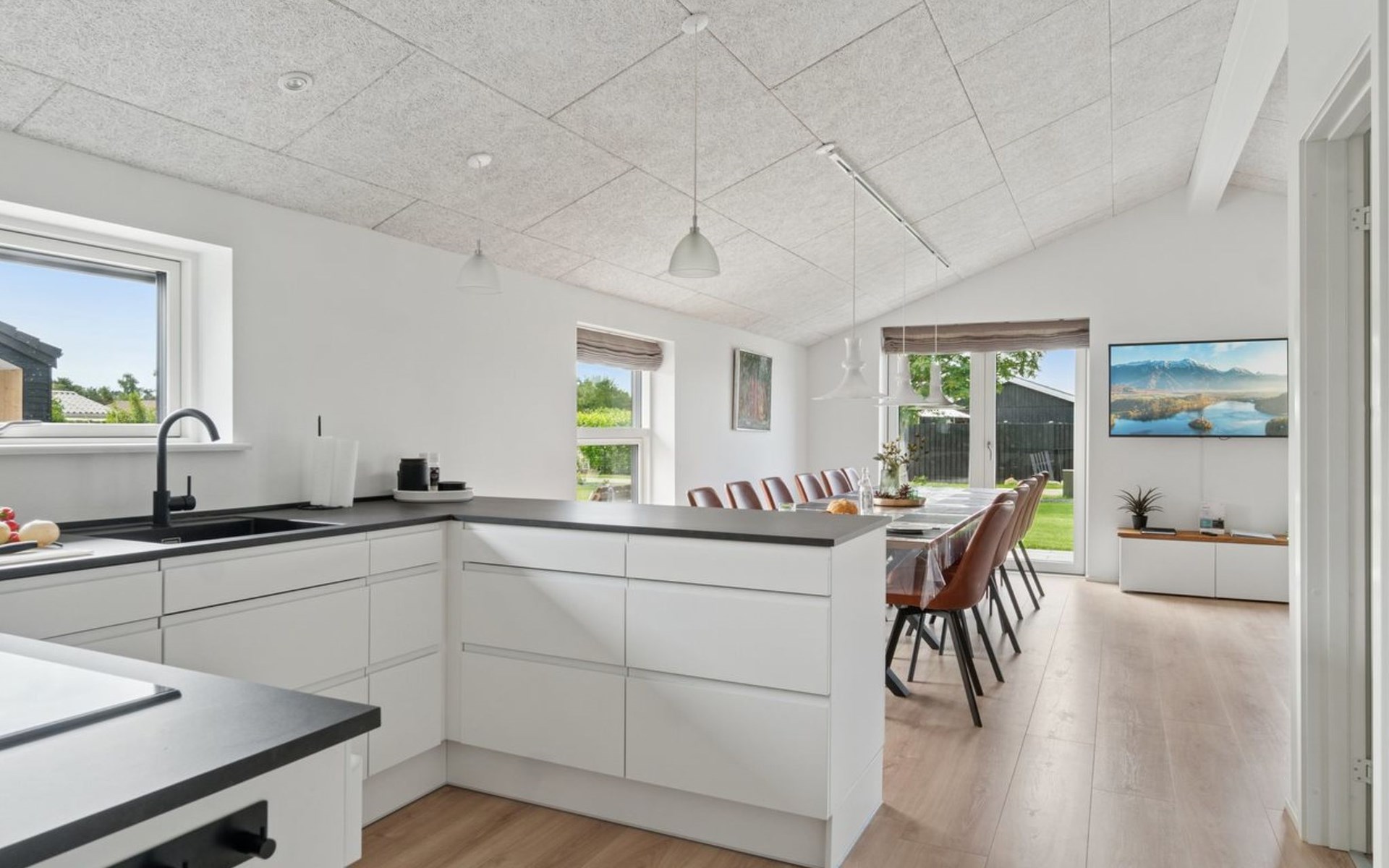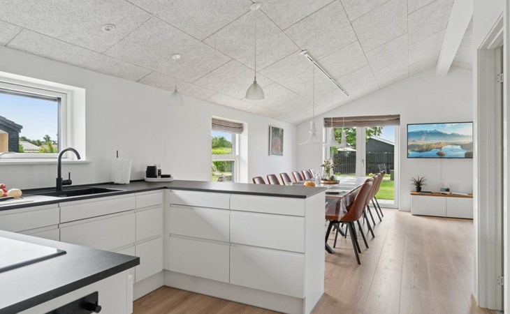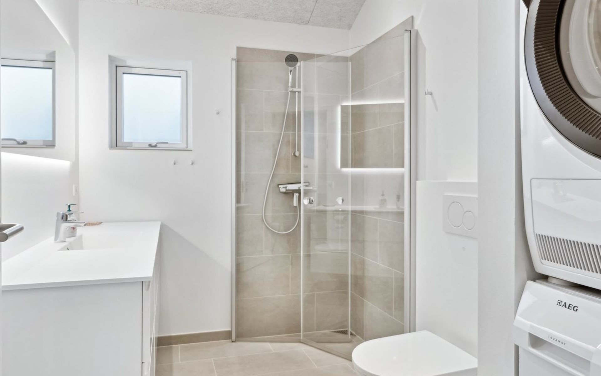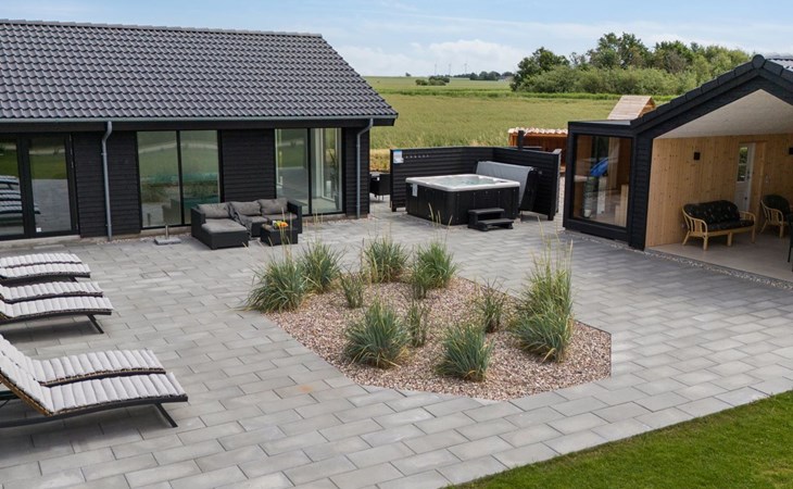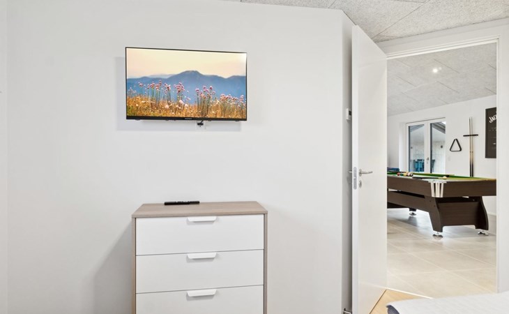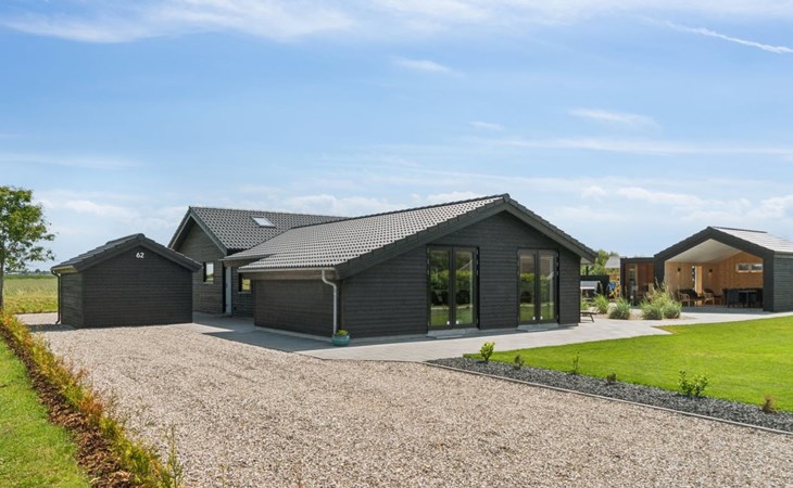 Single-family house, built in 2024. 600 m from the sea. Private: property 1'329 m2, well-kept garden, indoor pool (3 x 5 m, 15 m2, depth 145 - 145 cm). Outdoor shower, terrace (125 m2), barbecue, children's playground (slide, swing). In the house: table football, washing machine, tumble dryer. Parking at the house. E-charging station. Grocery 650 m. Golf course 12 km. The owner does not accept any youth groups.