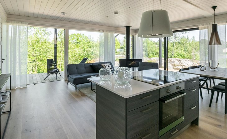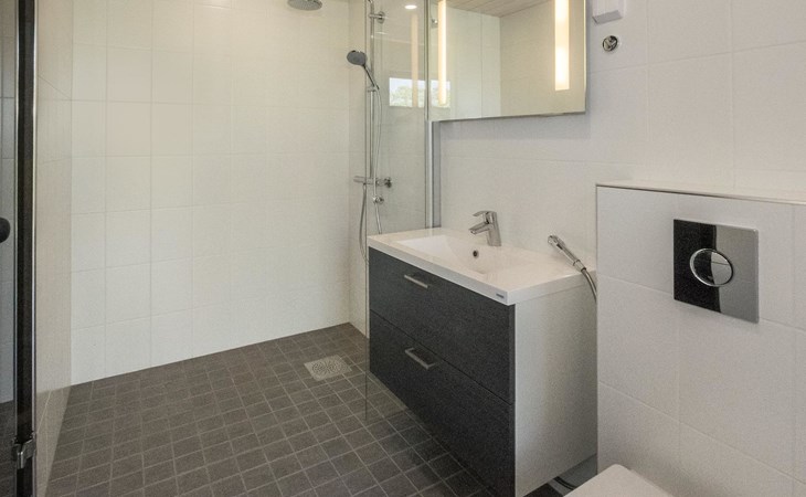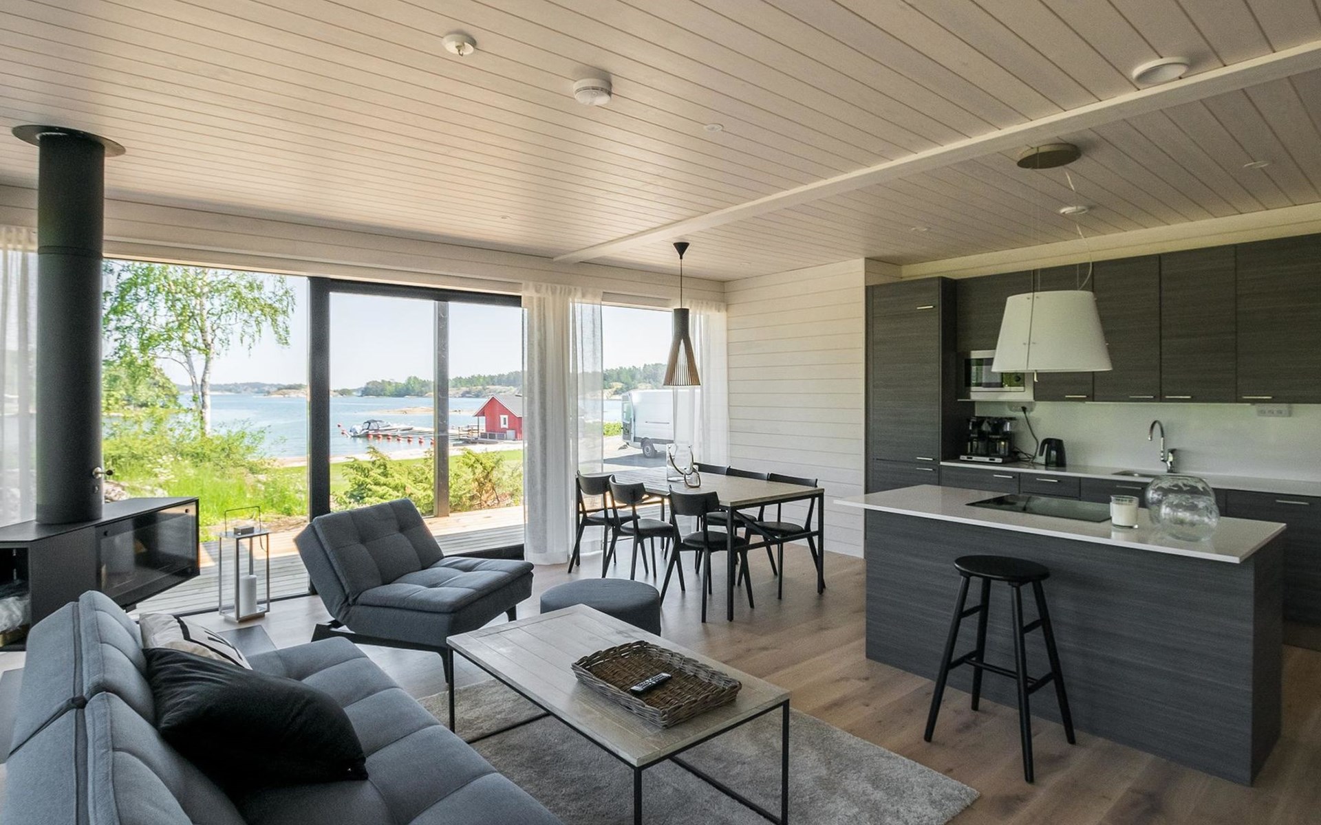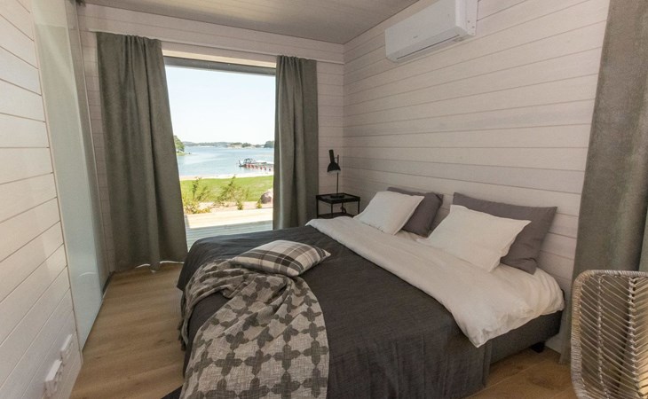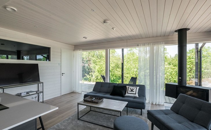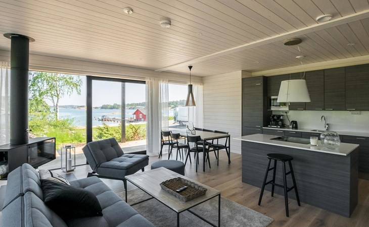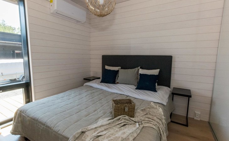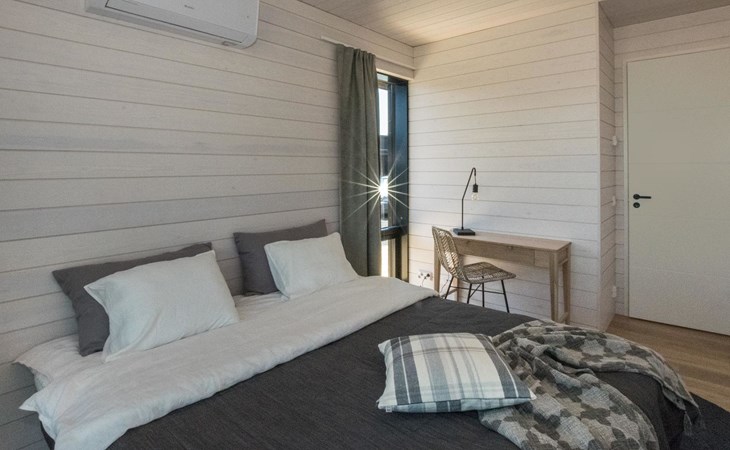 Magnificent 83 m² end of terrace apartment, built in May 2019. Living room with sofa bed for two, living room/kitchen, two bedrooms with two 90 cm wide beds in both, electric sauna, shower, separate WC, air source heat pump (for cooling), high-speed wired internet connection.