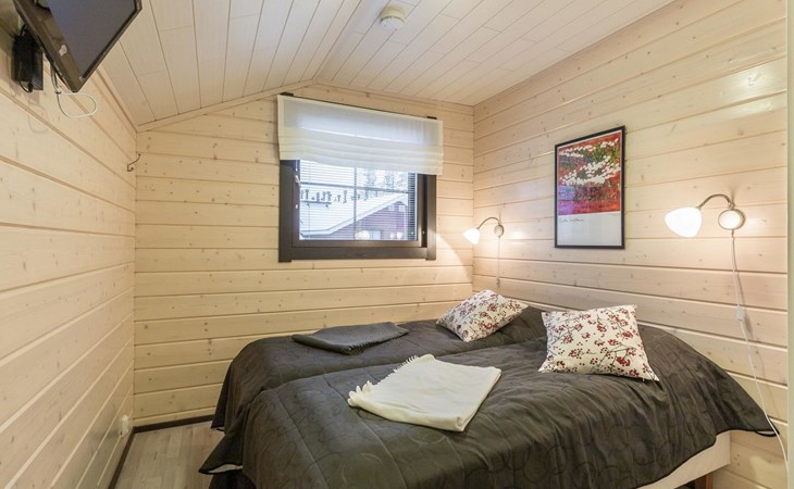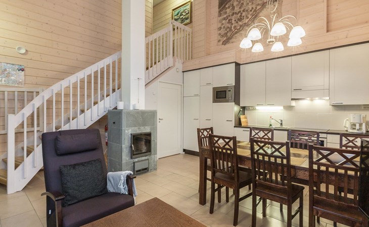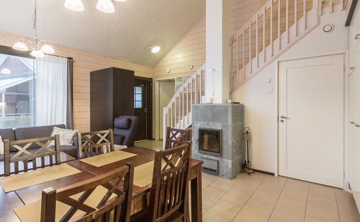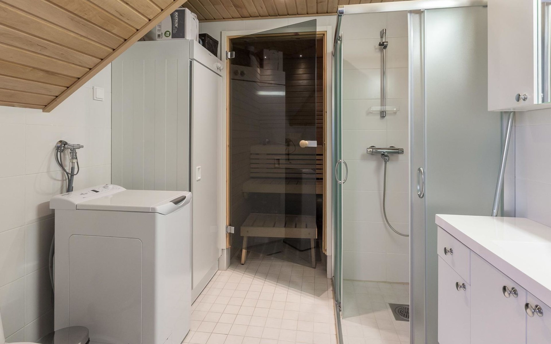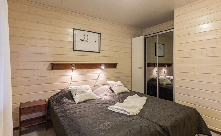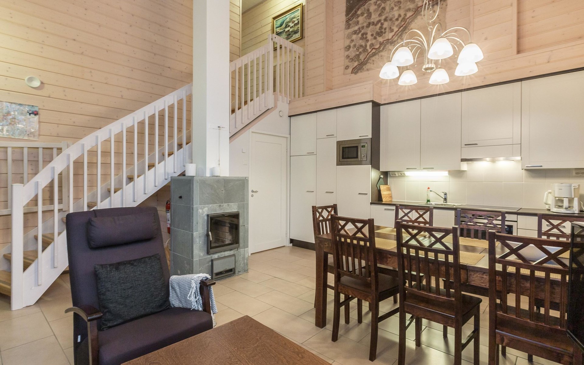 Apartment 2013, living room/ kitchen convertible sofa/ bed, bedroom double bed, upstairs 1 bedroom with 2 beds and own toilet, washroom, sauna (electric stove).
