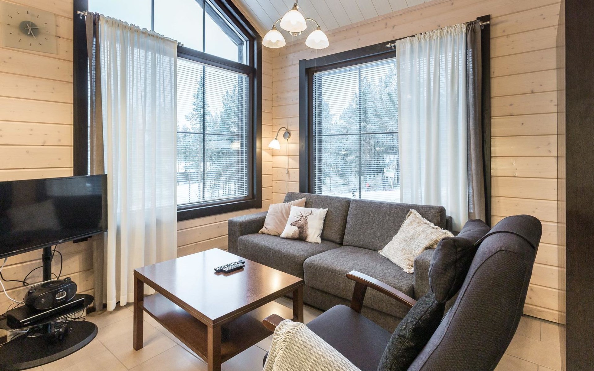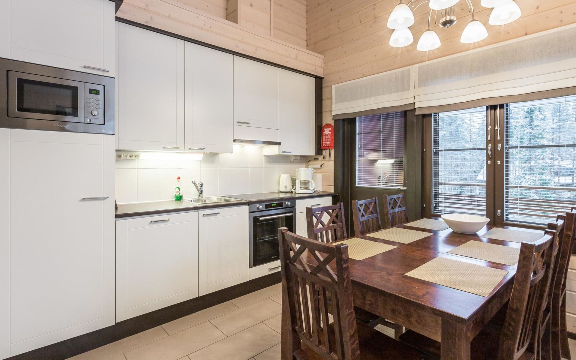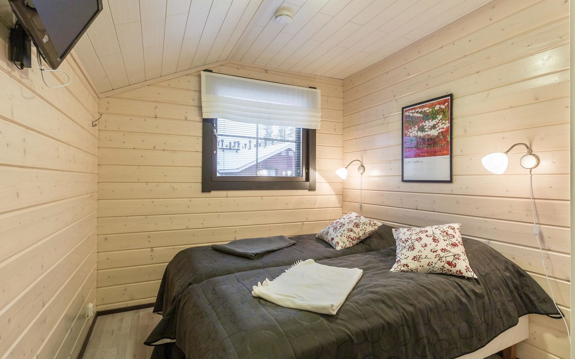 Apartment 2013, living room/ kitchen convertible sofa/ bed, bedroom double bed, upstairs 1 bedroom with 2 beds and own toilet, washroom, sauna (electric stove).