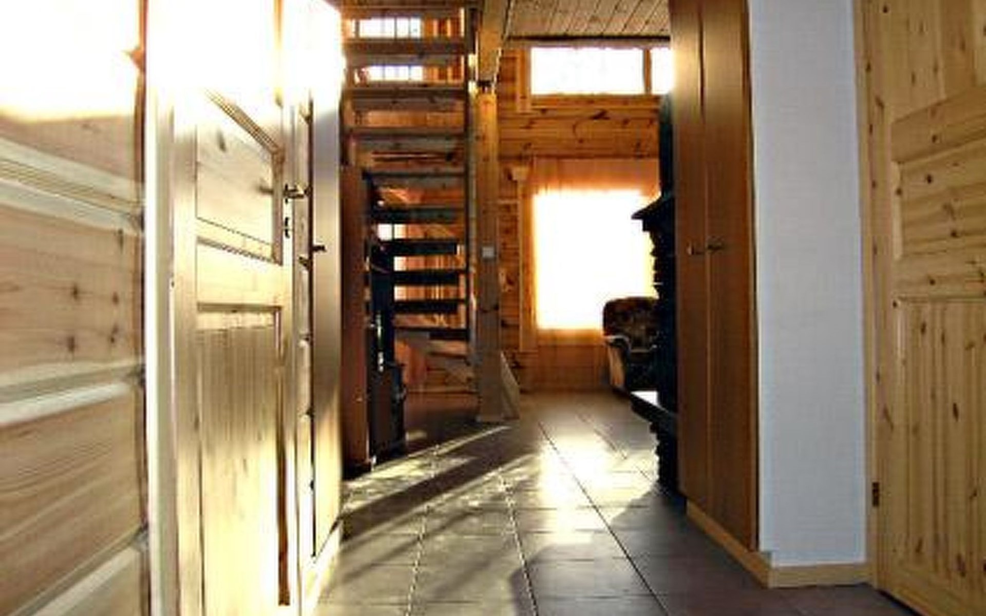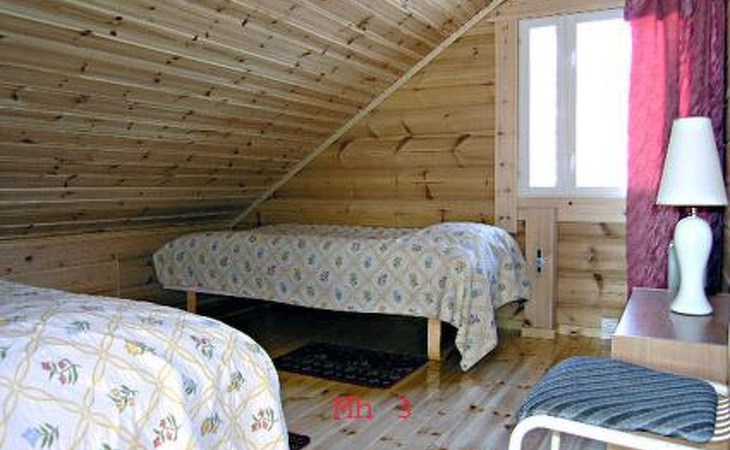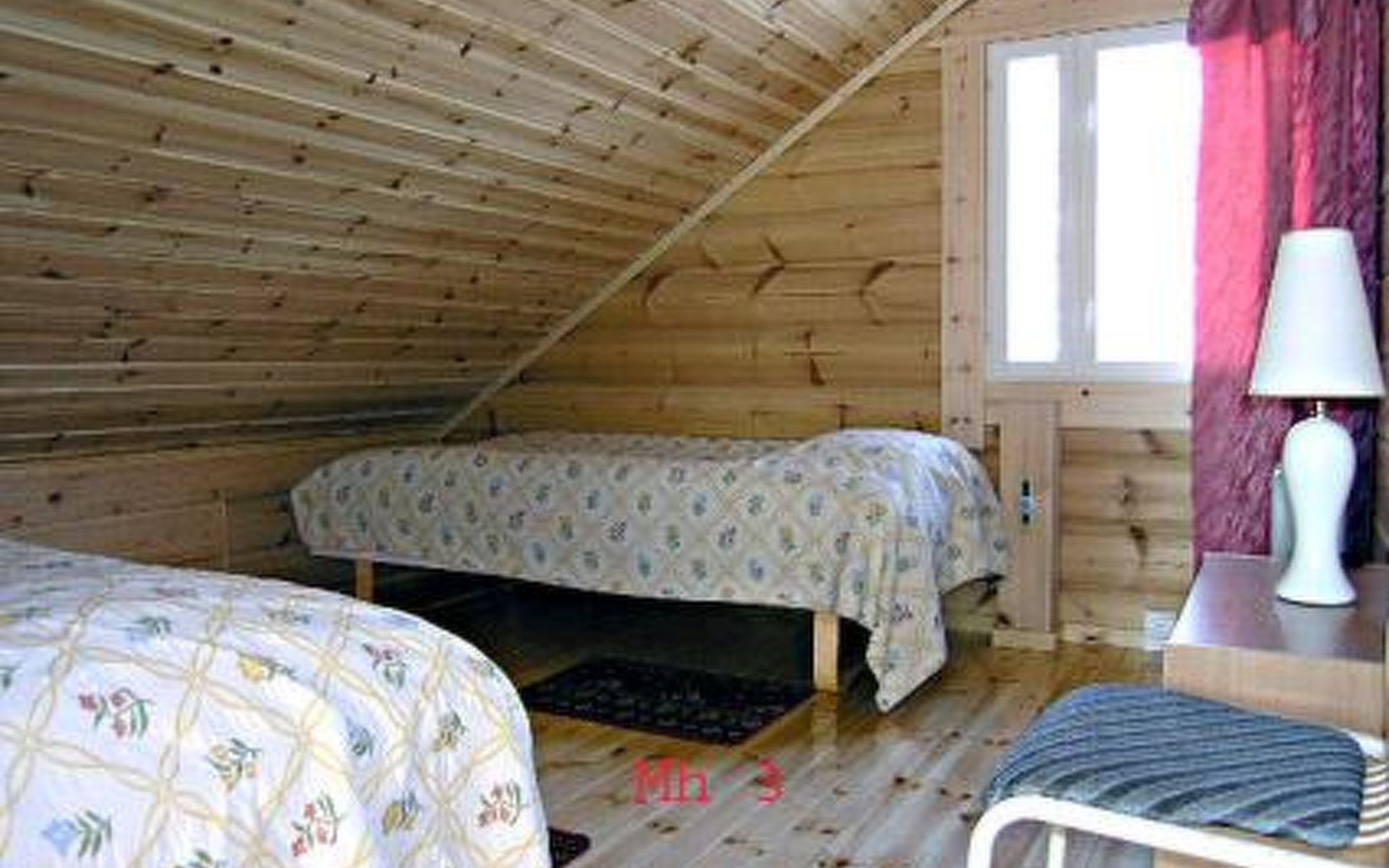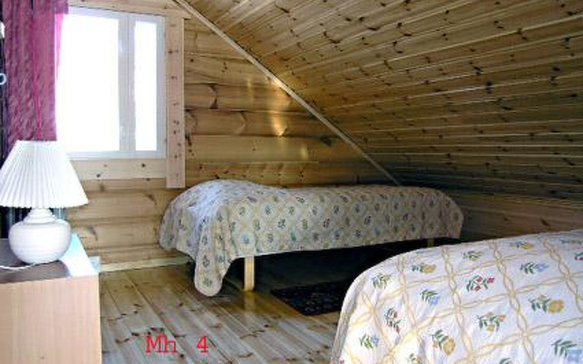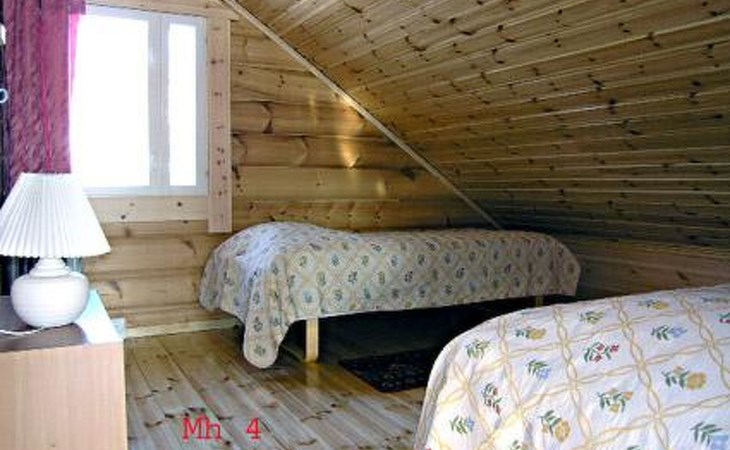 Laminated log house 2009, downstairs two bedrooms, 2 beds in each, living room extra bed for 2. Kitchen area, sauna, washroom, hall, large porch on two sides of house. Upstairs 2 bedrooms, 2 beds in each, separate WC and lounge with extra double bed.