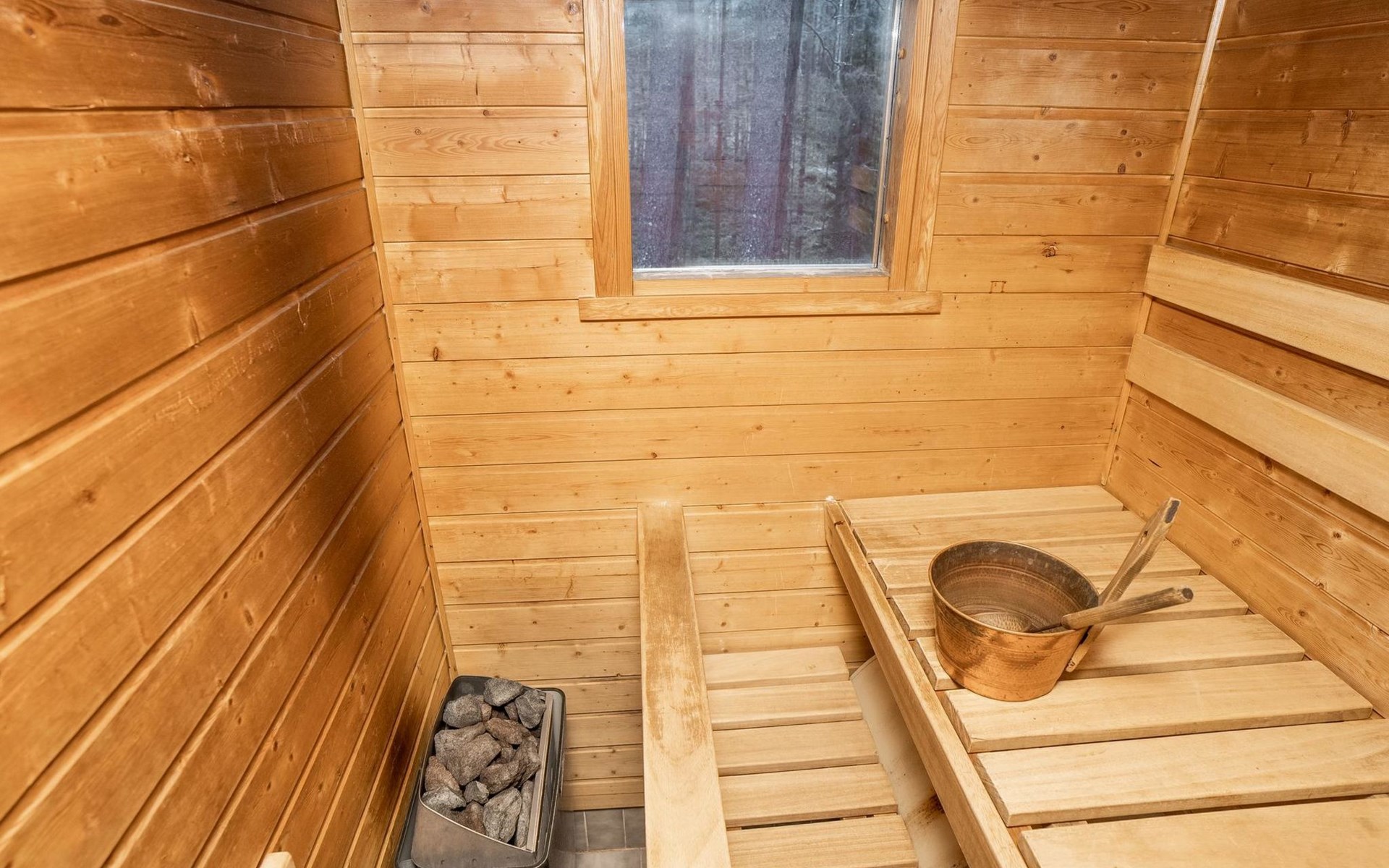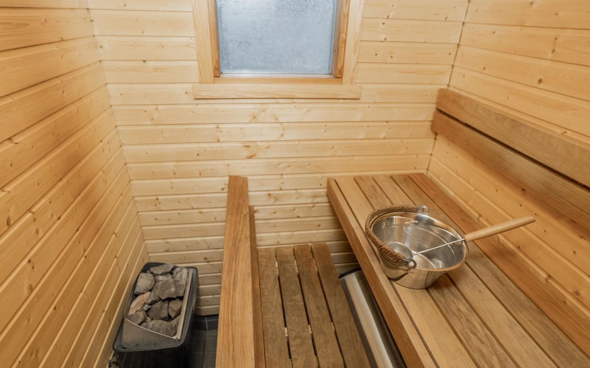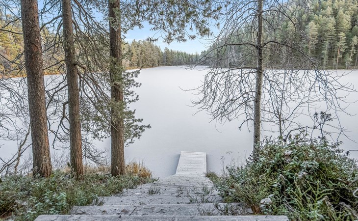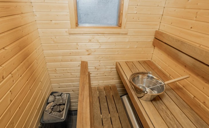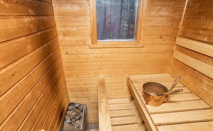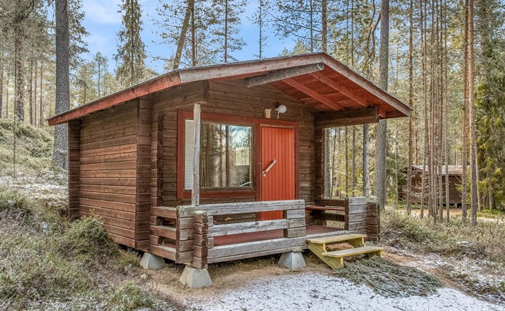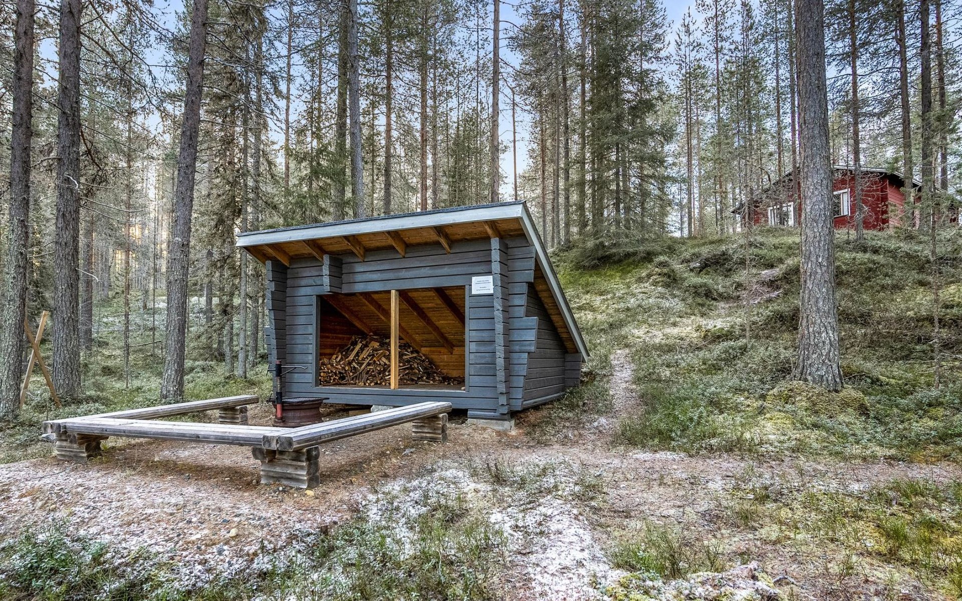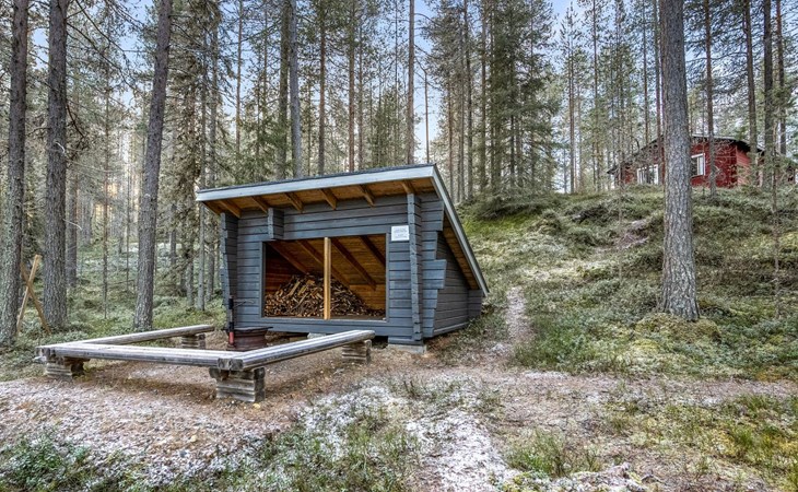 Lean-to shelter in shared use for 3 cottages. Lakeside sauna (wood-heated stove, water must be carried from the lake) on request during summer (additional fee).
