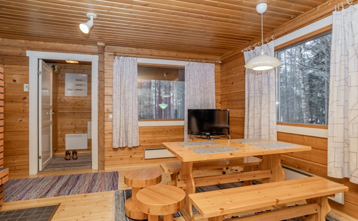 Cottage is located in Viipus camping area, where there are 3 cottages available year-round and additionally camping cottages during summer. Rainbow trout stocked in Törikänlampi pond nearby. Pond Törikänlampi is small, 15 m deep pond with bright water. Swimming possibility for persons who can swim. Lake Viipusjärvi deepens gently and there is also a pier. Beach is in joint use of camping site's customers. Rowing boat in shared use by the lake Viipusjärvi.
