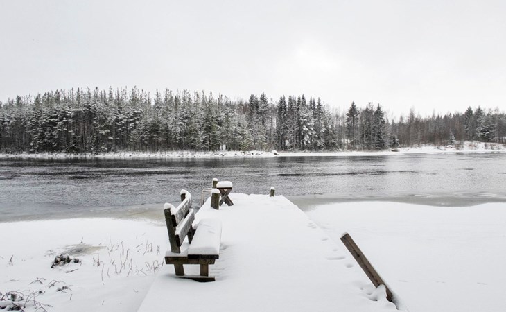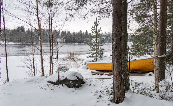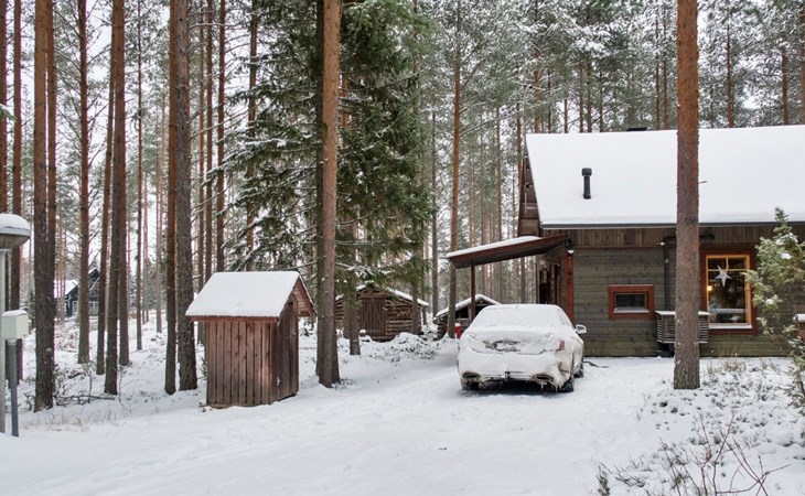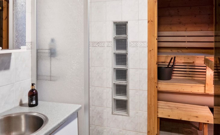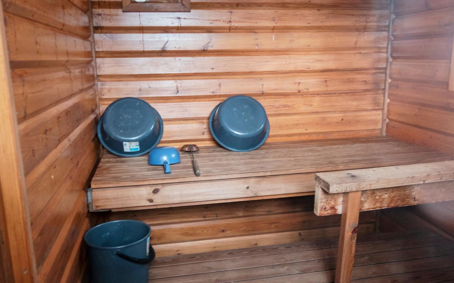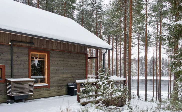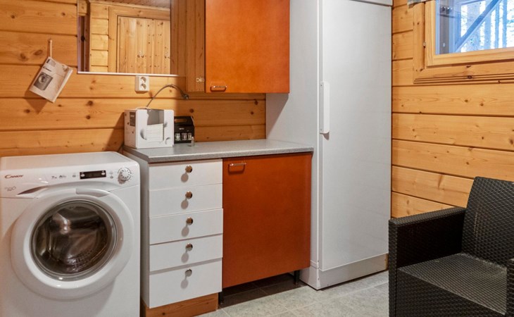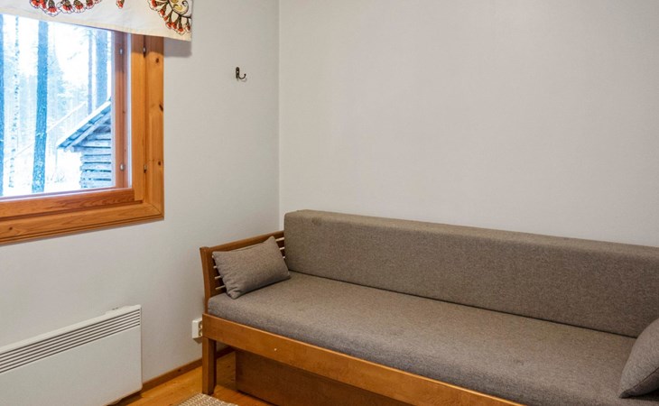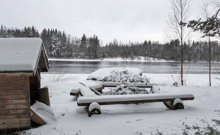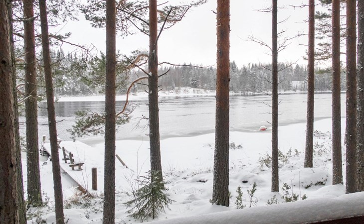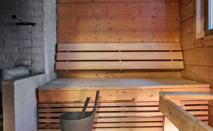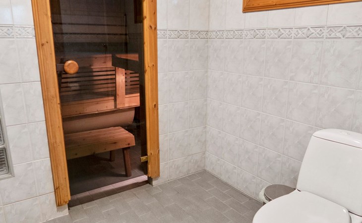 There is also a separate lakeside sauna with a wood-heated stove and cauldron. In connection with the sauna building, a small living area /dressing room. Sauna has electricity. Water to the sauna must be brought by using a bucket; in summer from the river, in winter from the cabin. Access to the sauna along a narrow path, no winter maintenance.