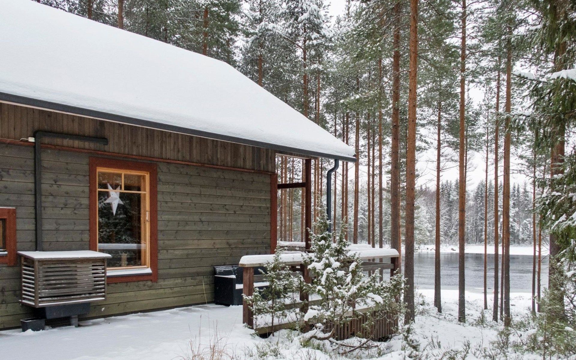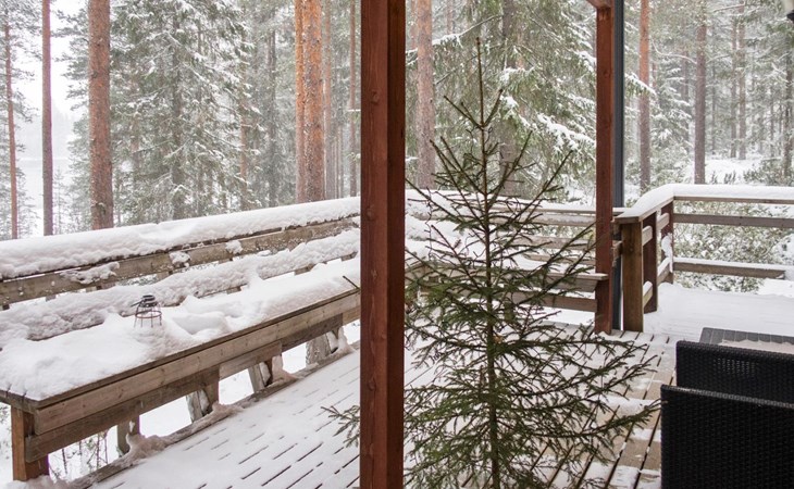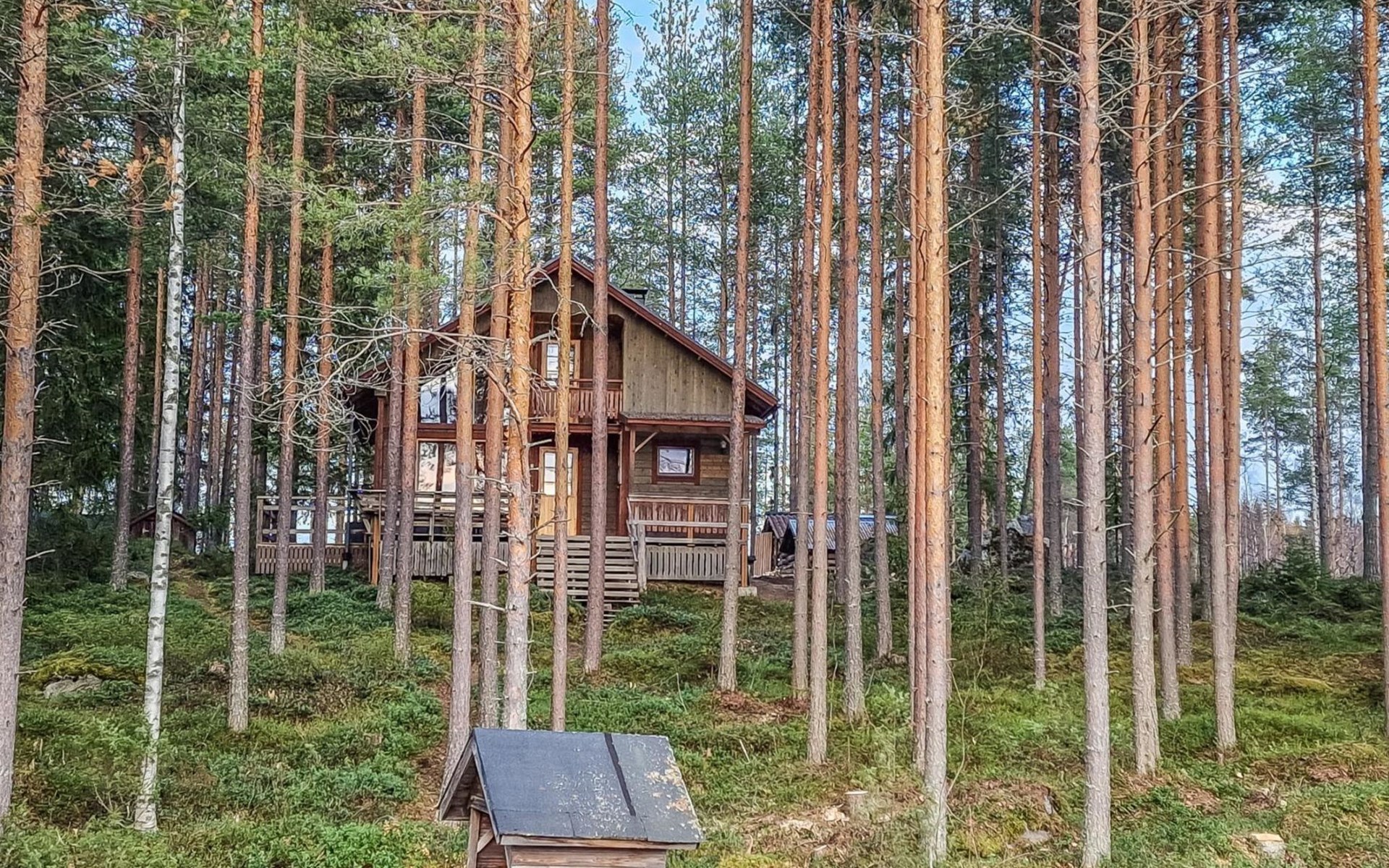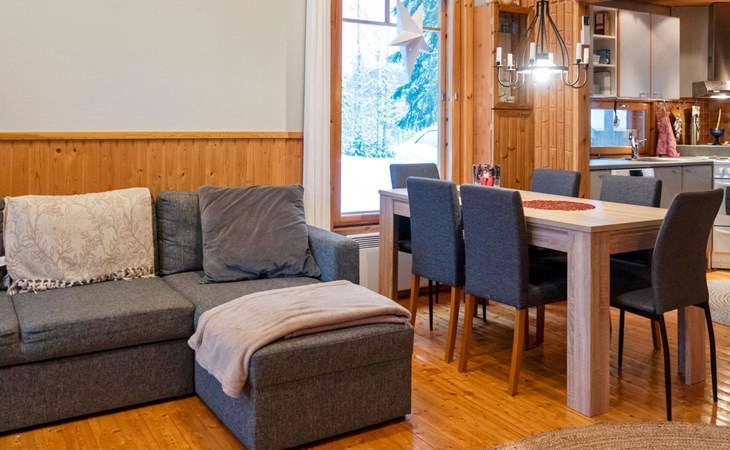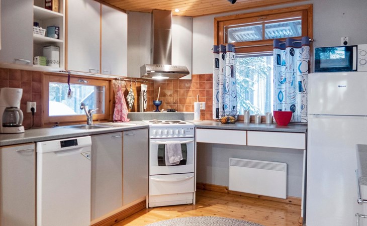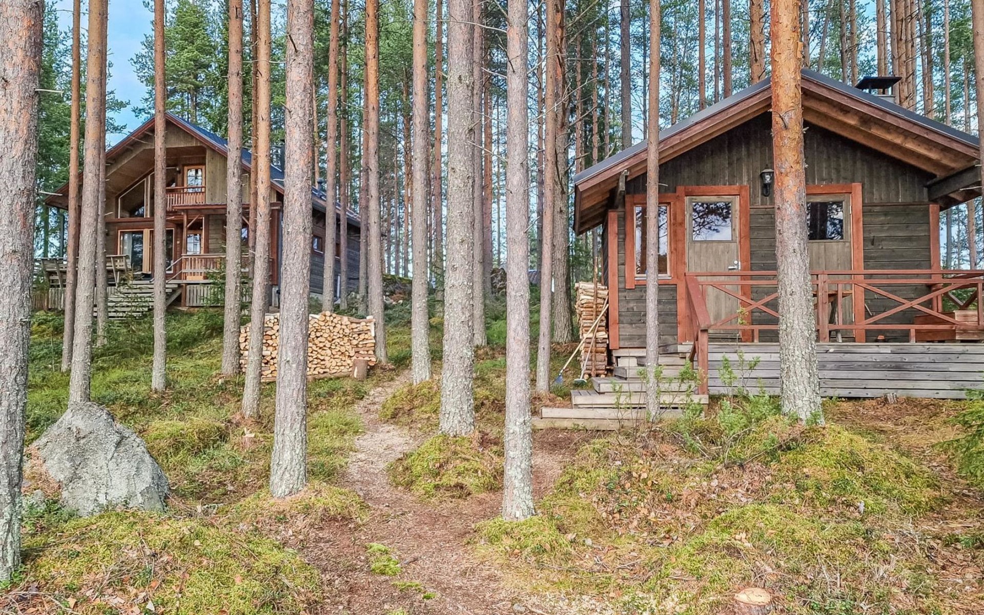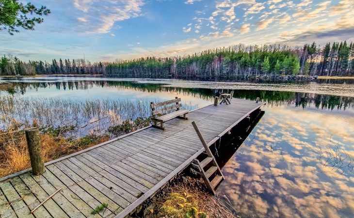 There is also a separate lakeside sauna with a wood-heated stove and cauldron. In connection with the sauna building, a small living area /dressing room. Sauna has electricity. Water to the sauna must be brought by using a bucket; in summer from the river, in winter from the cabin. Access to the sauna along a narrow path, no winter maintenance.