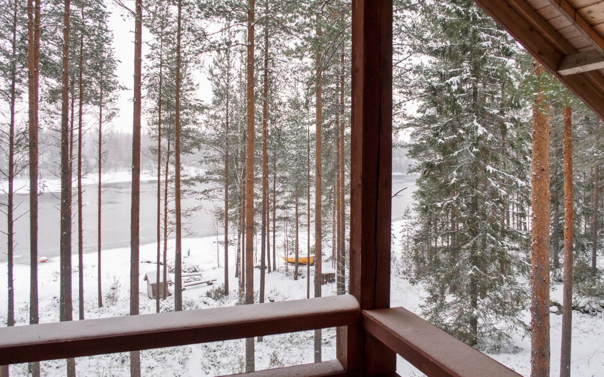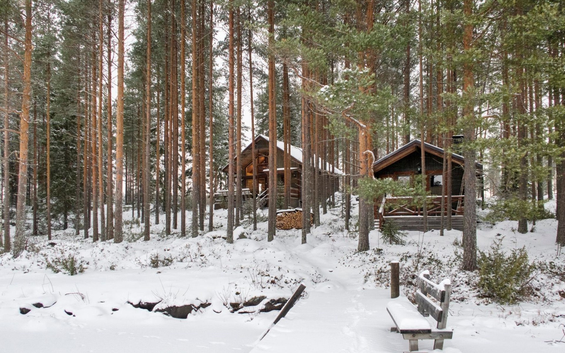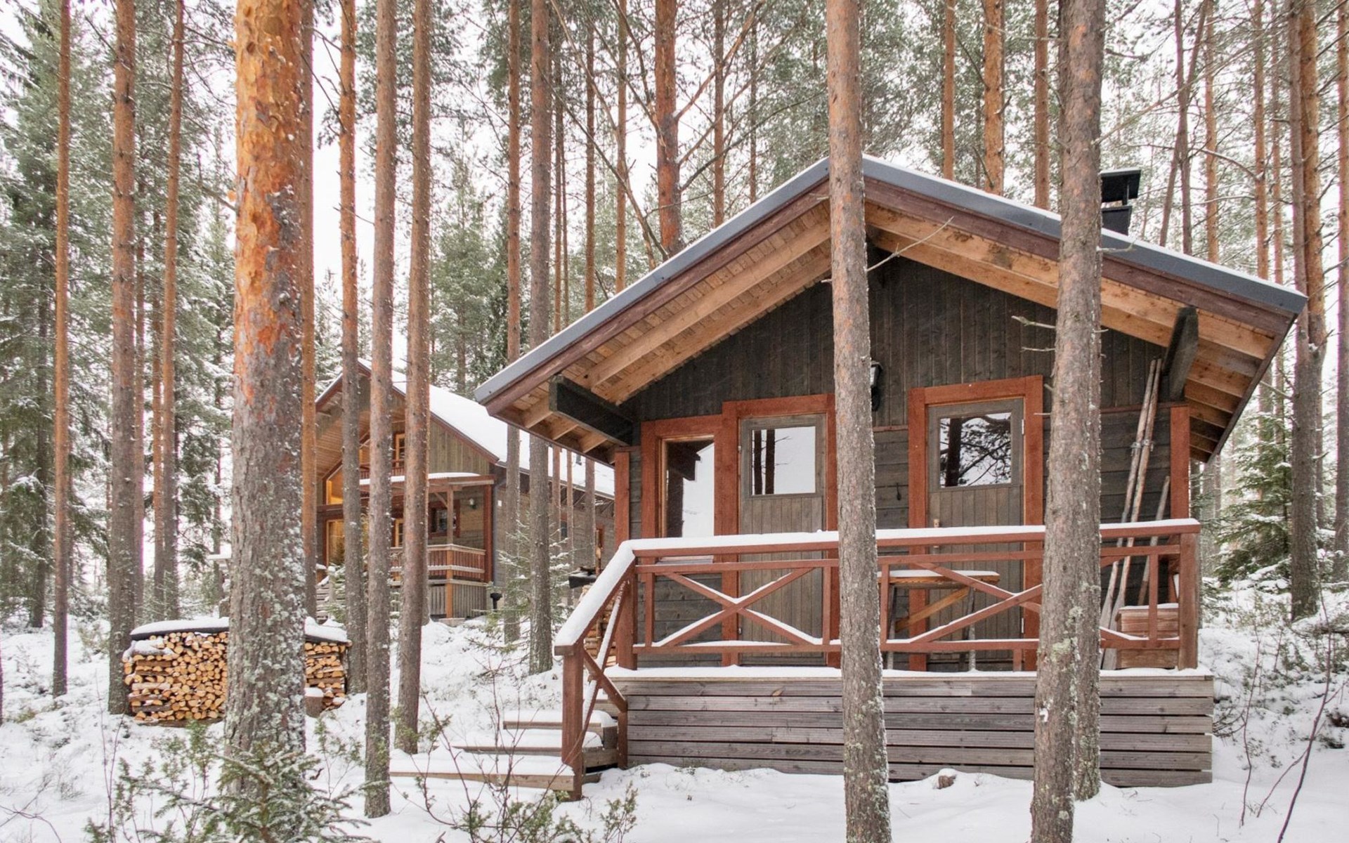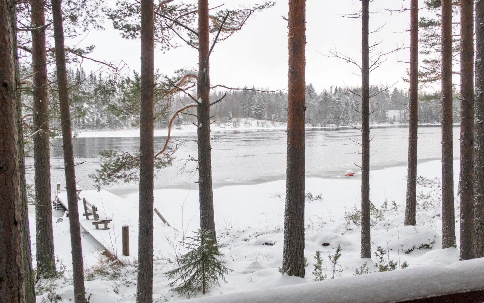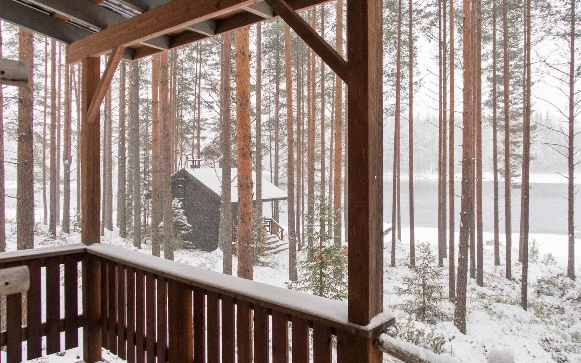 There is also a separate lakeside sauna with a wood-heated stove and cauldron. In connection with the sauna building, a small living area /dressing room. Sauna has electricity. Water to the sauna must be brought by using a bucket; in summer from the river, in winter from the cabin. Access to the sauna along a narrow path, no winter maintenance.