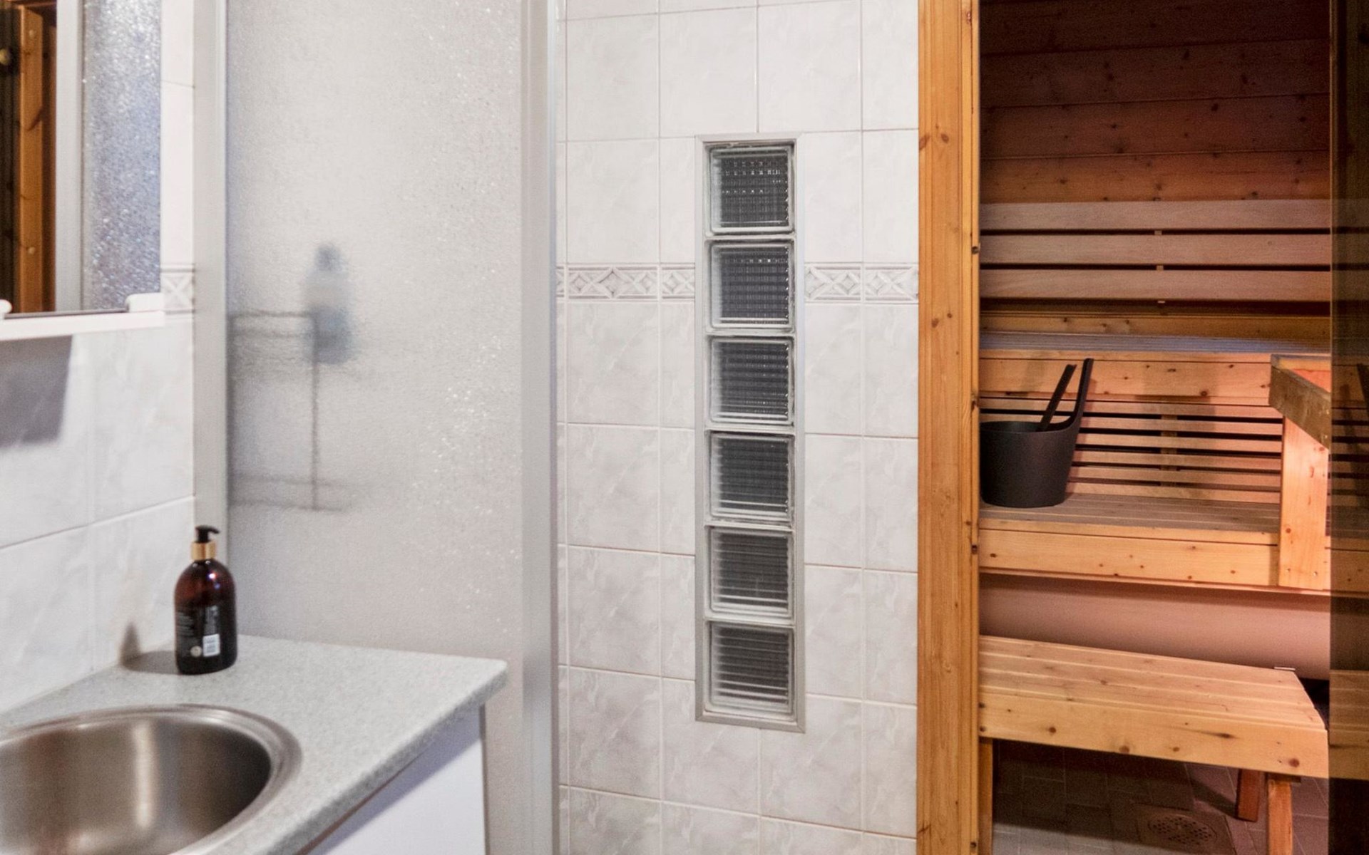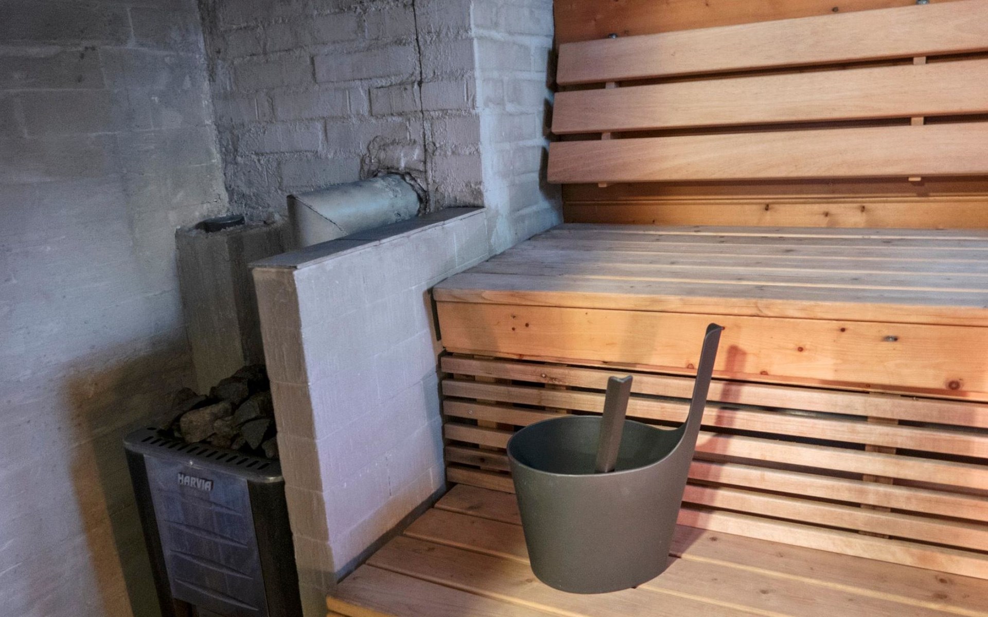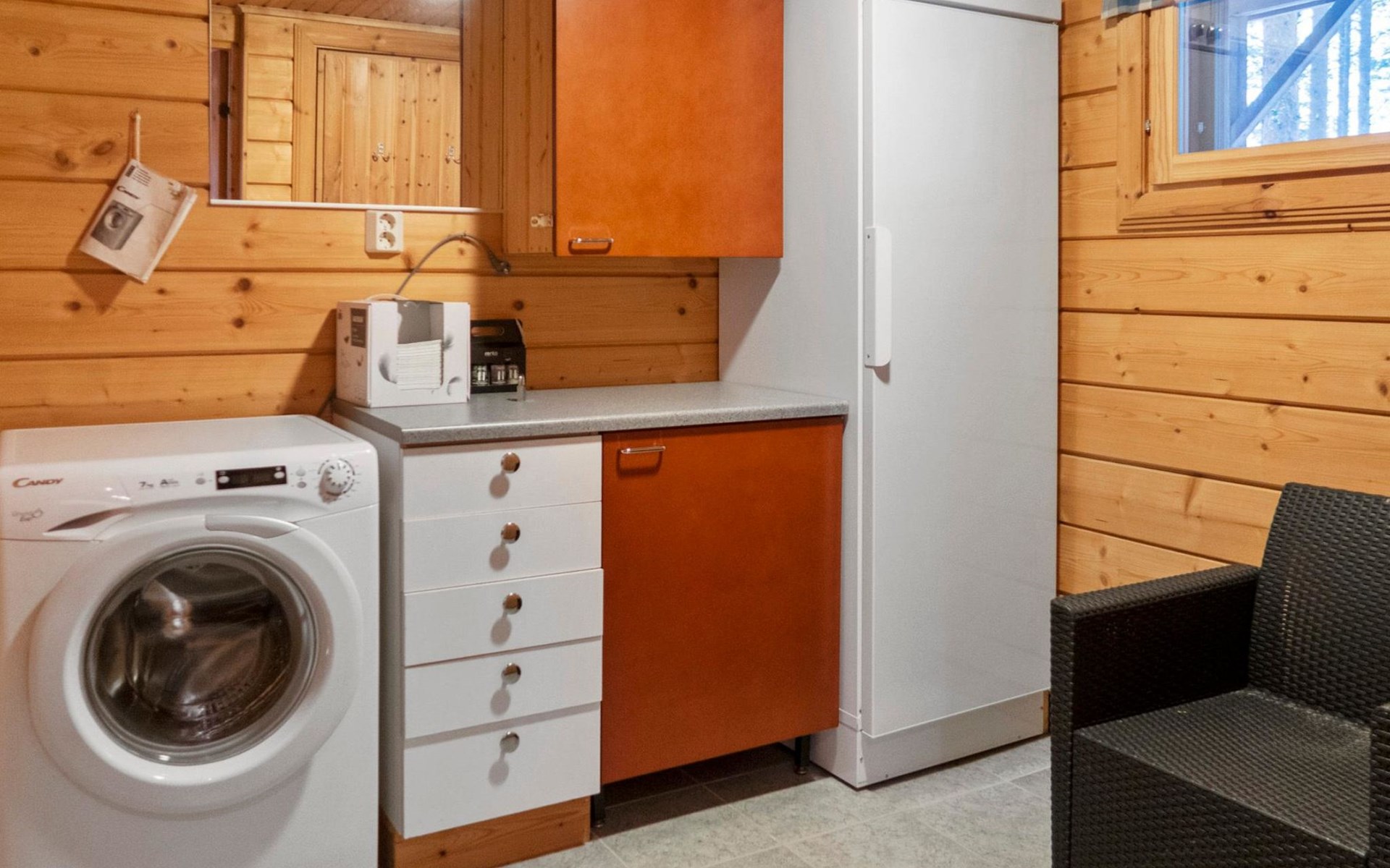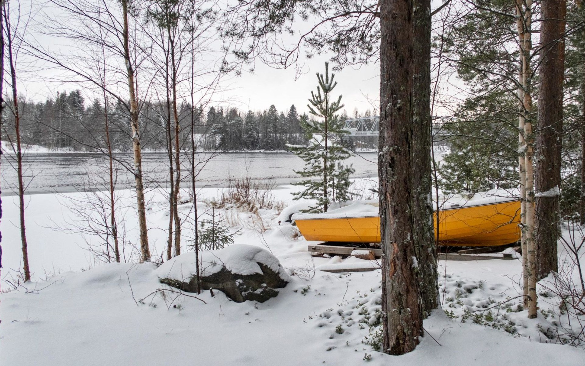 There is also a separate lakeside sauna with a wood-heated stove and cauldron. In connection with the sauna building, a small living area /dressing room. Sauna has electricity. Water to the sauna must be brought by using a bucket; in summer from the river, in winter from the cabin. Access to the sauna along a narrow path, no winter maintenance.
