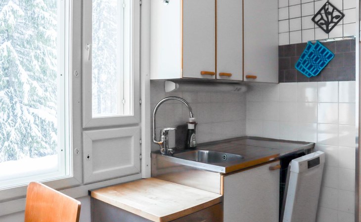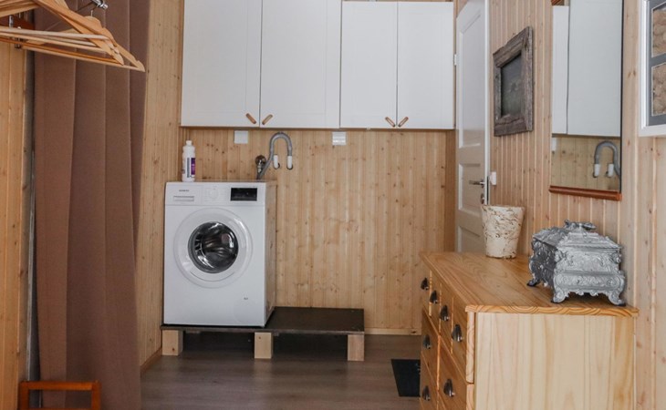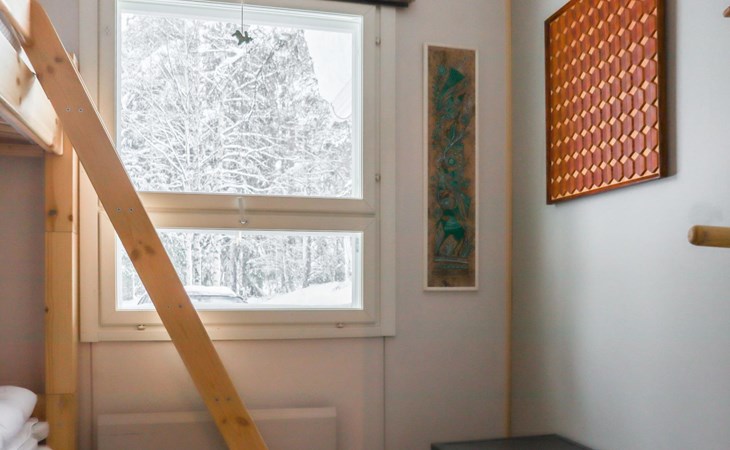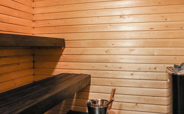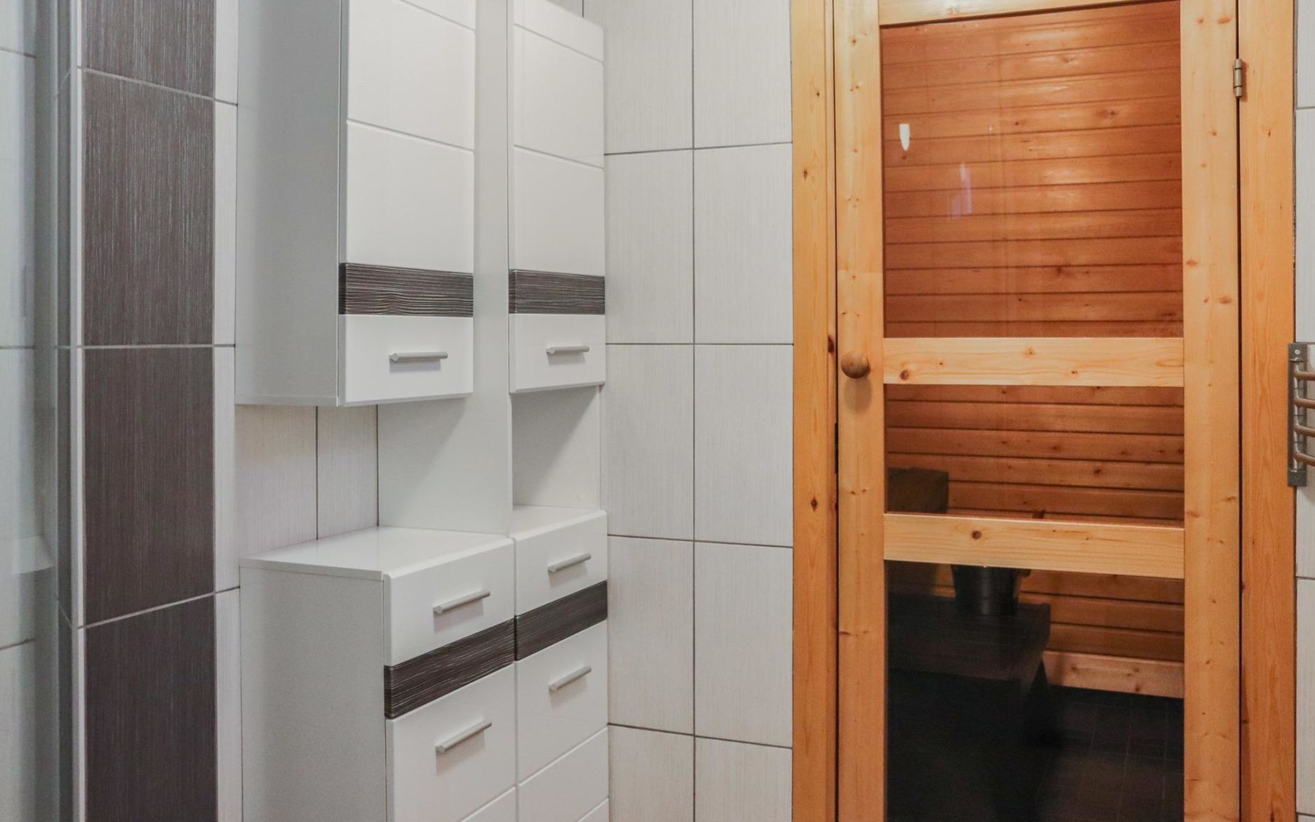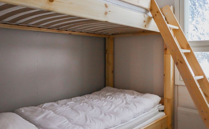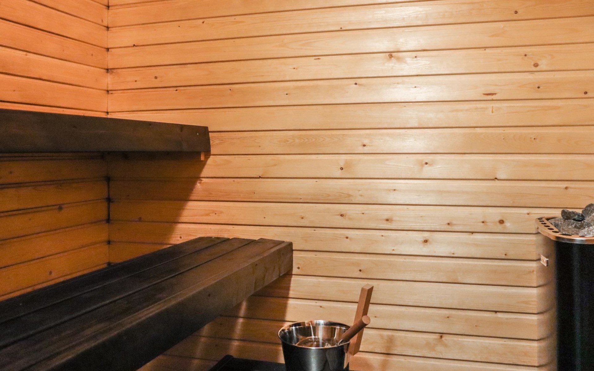 Two bedrooms, one with bunk bed and another with double bed, fully equipped kitchen, living room, sauna and washroom with WC.
