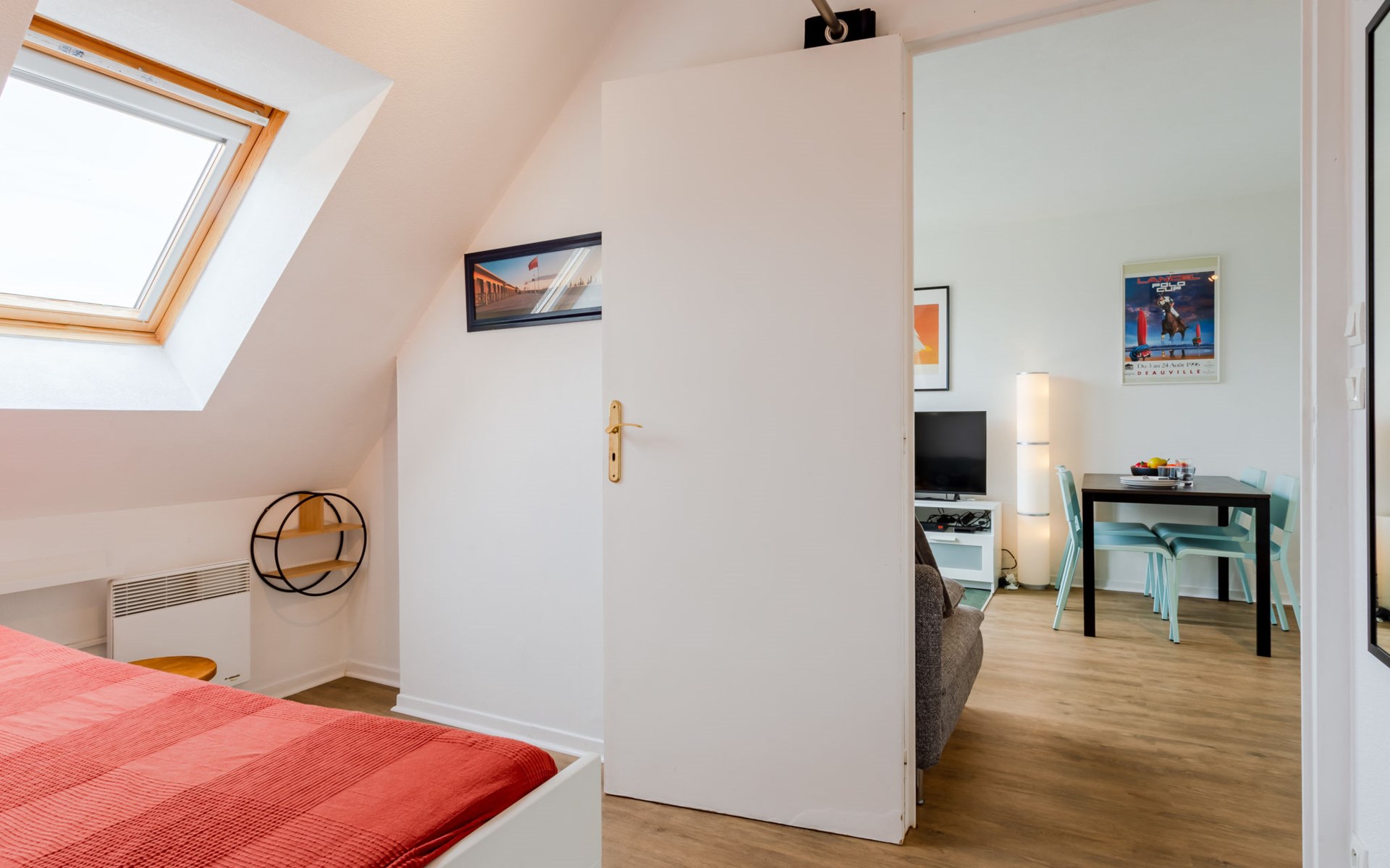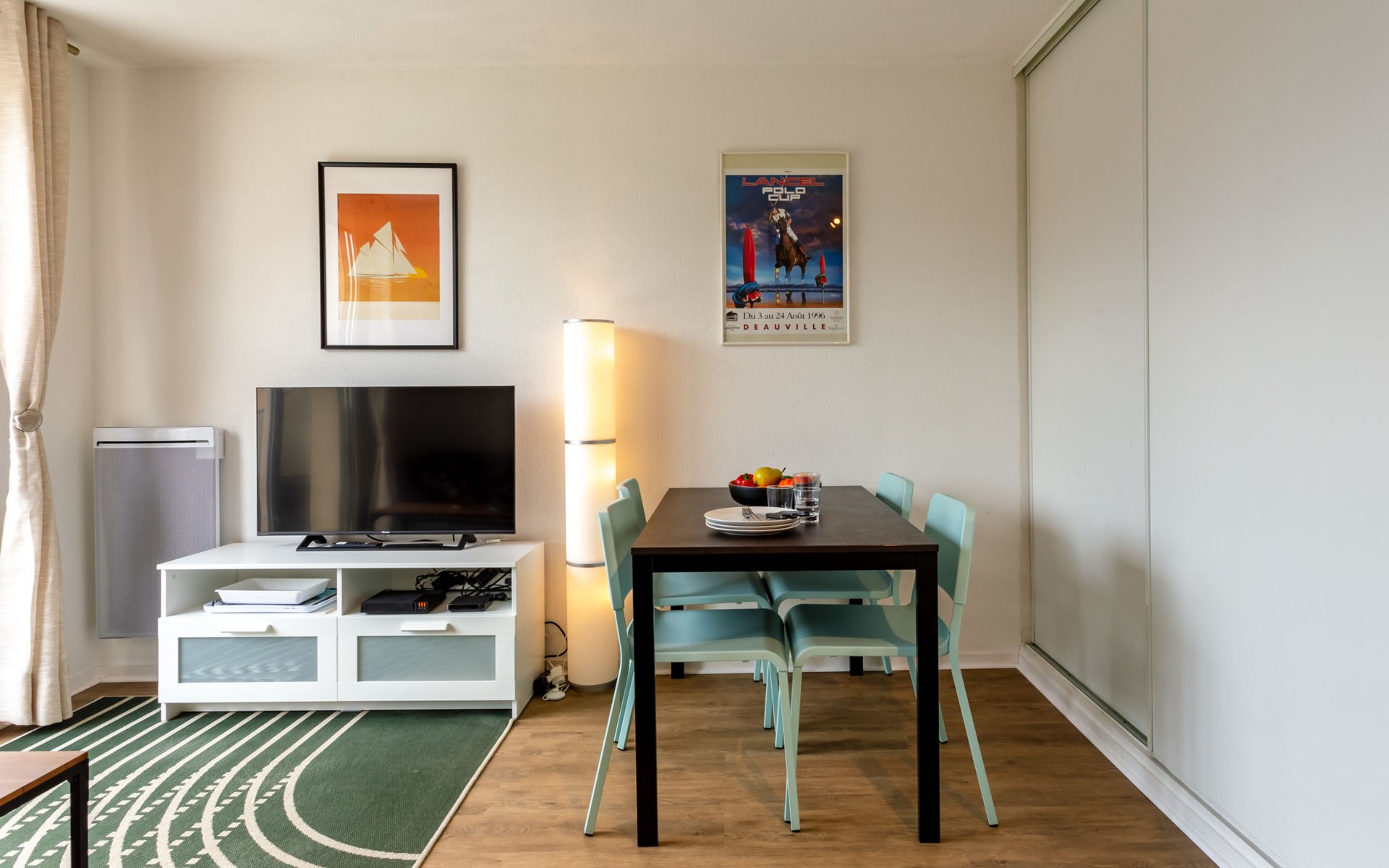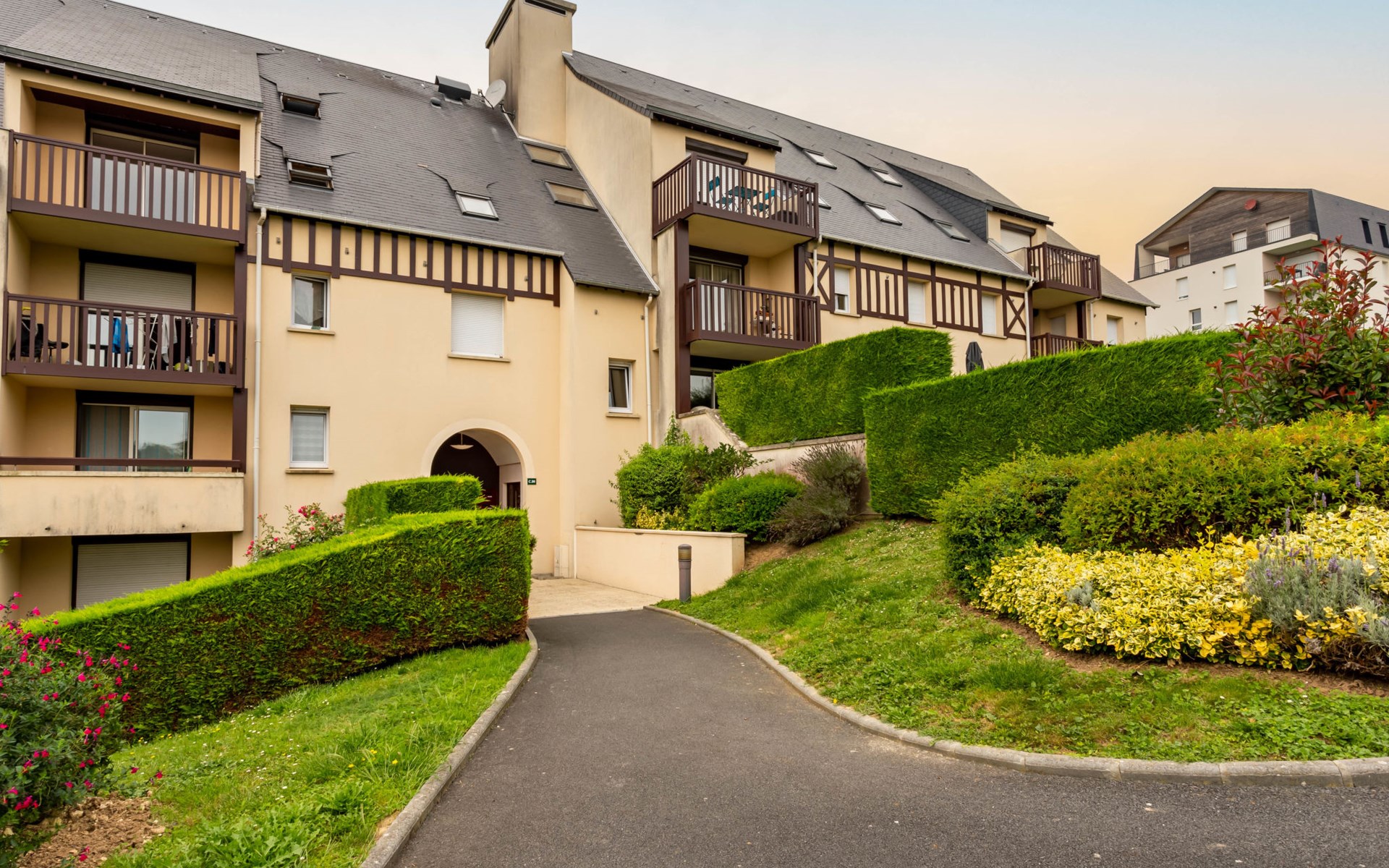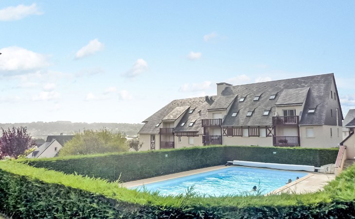 Touques 2 km from Deauville: Residence "Le Vert Coteau". 2.2 km from the sea, 2.2 km from the beach. For shared use: garden, swimming pool angular heated (seasonal availability: 15.Jun. - 15.Sep.). Outdoor shower, parking. Shop 1.2 km, grocery 1.2 km, supermarket 1.4 km, restaurant 1.2 km, bus stop "Mont Joly" 500 m, railway station "Deauville - Trouville" 2 km, indoor swimming pool 2.3 km, thermal baths "Les Cures Marines" 2.1 km. Golf course (18 hole) 5 km, sailing school 3.9 km, tennis 2.3 km. Nearby attractions: Casino de Trouville sur Mer 2 km, Hippodrome Deauville - La Touques 2.4 km, Honfleur 17 km, Mémorial de Caen 51 km, Plages du débarquement d'Arromanche 69 km. The keys‘ handover takes place by the agency Interhome in Deauville.