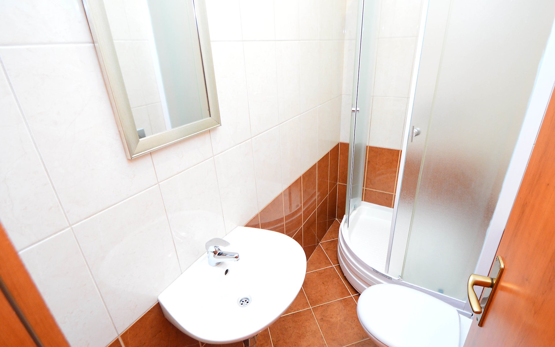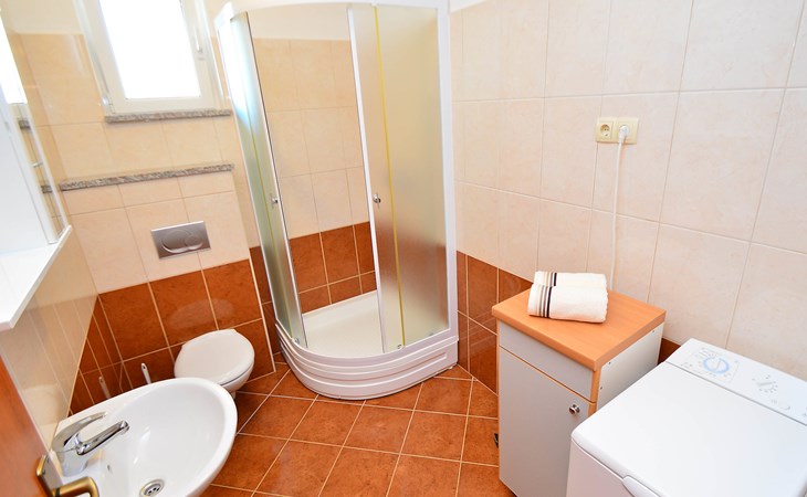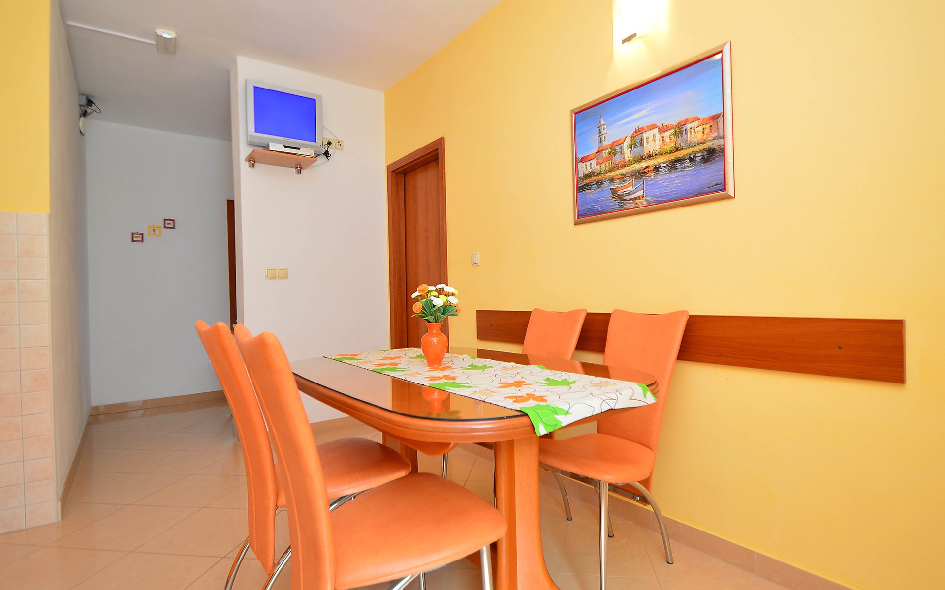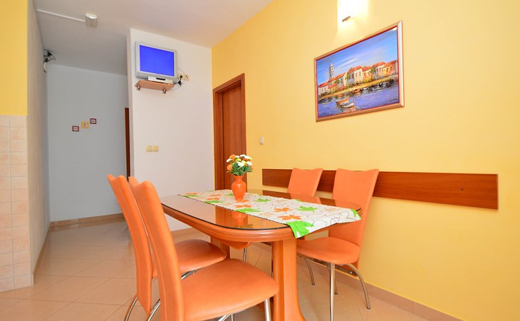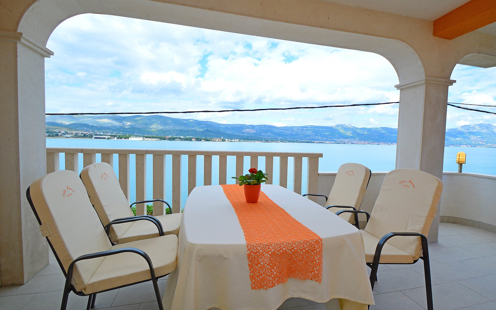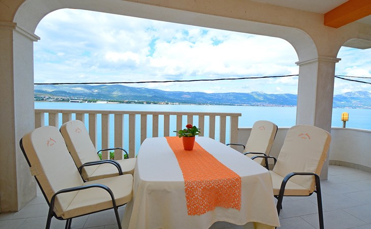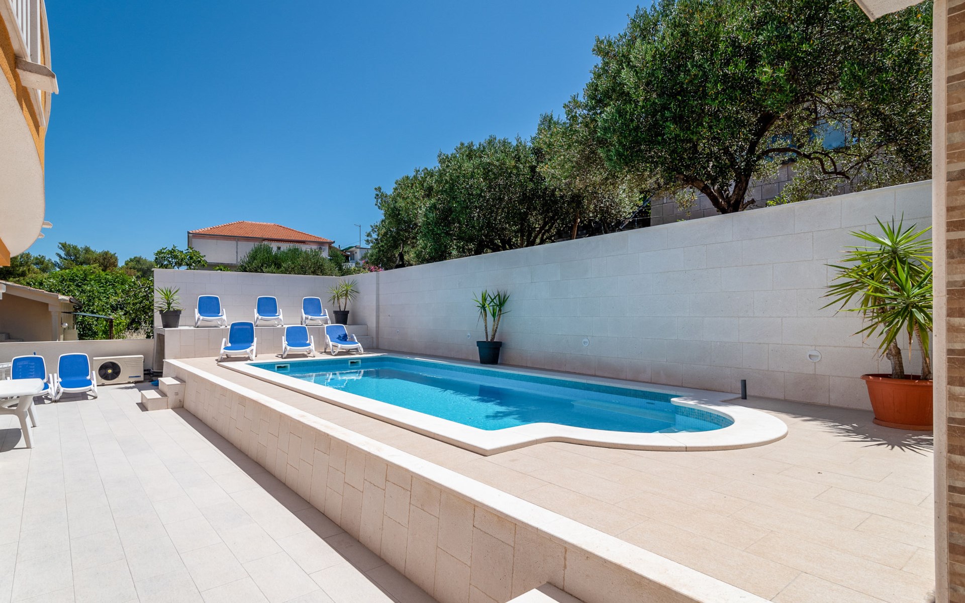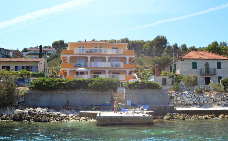 Arbanija (Čiovo) 4 km from Trogir: Apartment house "Mornar". 550 m from the centre of Arbanija, in a sunny position, 20 m from the sea, 20 m from the beach, road to cross, located by a road. For shared use: property 466 m2, swimming pool angular heated (7 x 3 m, 24 m2, depth 126 - 176 cm, seasonal availability: 01.Apr. - 15.Oct.) with internal staircase. Terrace (30 m2), barbecue. In the house: internet access. Available: boat (extra). Public parking on the road. Shop, restaurant 550 m, bus stop 100 m, pebble beach, rocky beach, concrete beach 20 m. Please note: private mooring (extra) on request. Motor boat of the house owner can be hired (on request, extra). Please note: licence required.