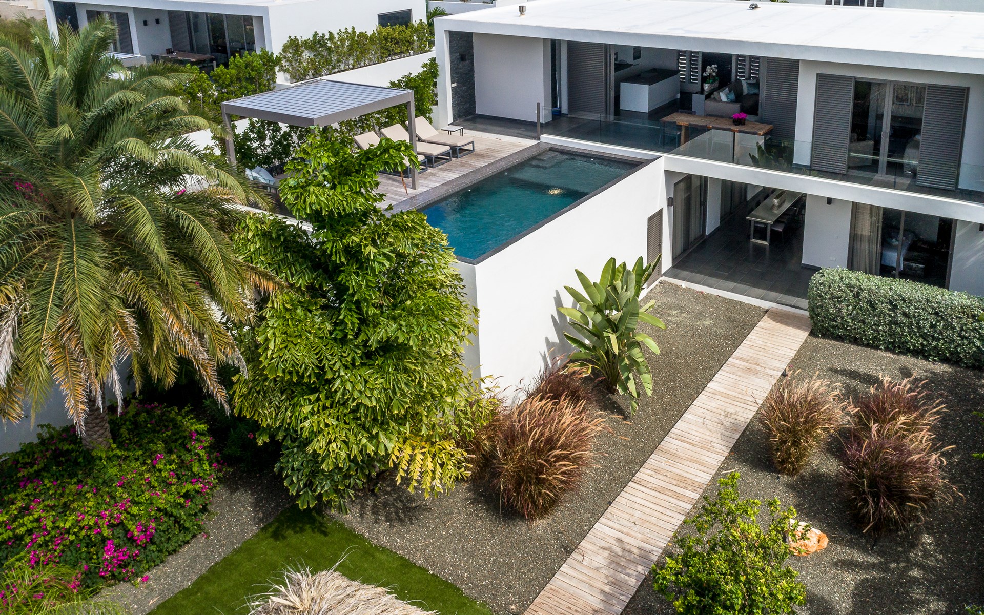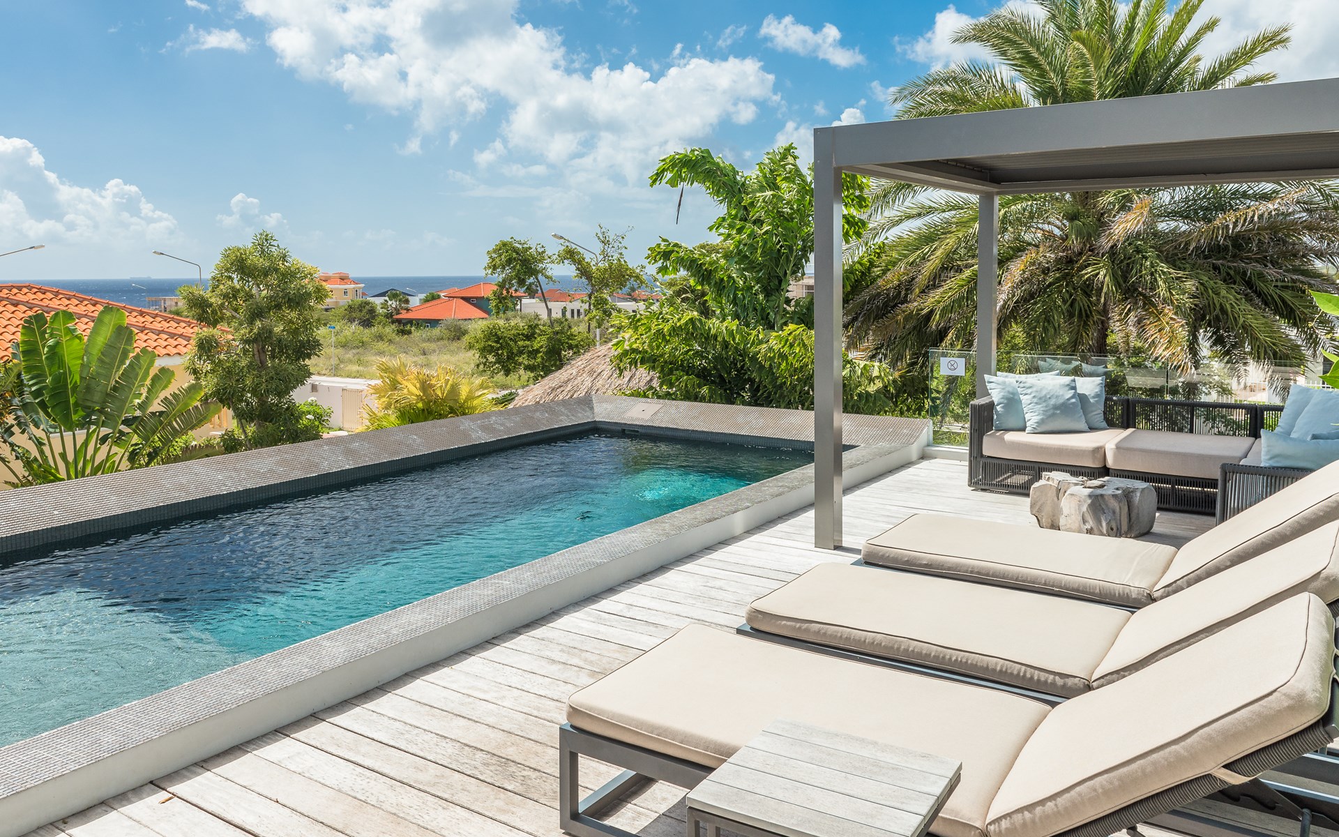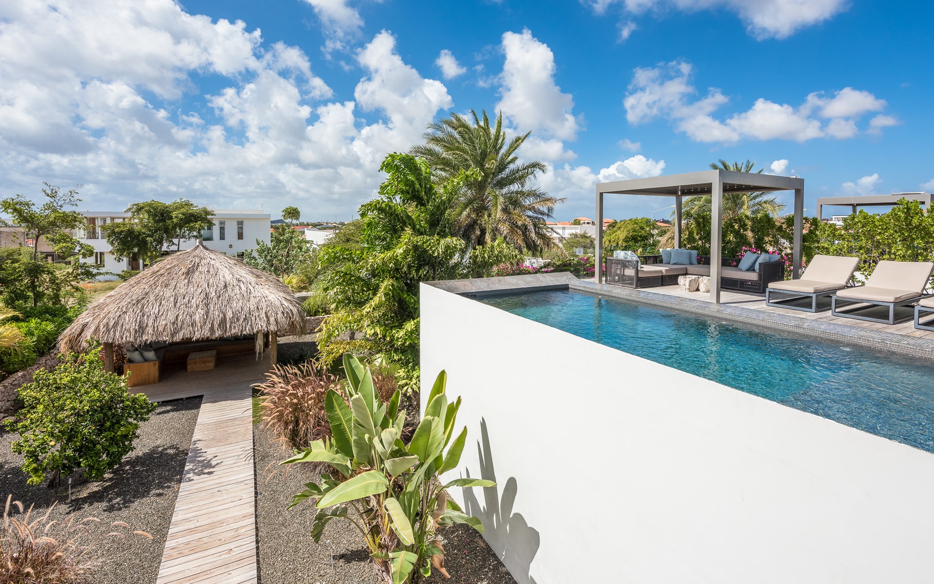 Villa Celestial Beach is the jewel of the Vista Royal district in Jan Thiel, a true haven for those looking for luxury, privacy, and comfort. The residence on which this villa is located consists of four villas. In the common room you can use the gym and the game room (with pool table, billiards, table football and playstation).