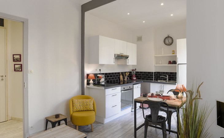 Apartment house "Le Paganini", 5 storeys. 950 m from the centre of Nice, in a busy position, 950 m from the sea, from the beach. Public car park at 350 m, extra. Shop 100 m, grocery 70 m, supermarket, shopping centre 500 m, restaurant 100 m, bakery 200 m, pedestrian zone 550 m, 10 minute walk to the centre, tram "Lignes 1 et 2 Jean Médecin" 400 m, bus stop "Gare Thiers" 450 m, shingle beach "publique" 950 m. Golf course (18 hole) 25 km, riding stable 10 km. Nearby attractions: Place Masséna 950 m, Vieux Nice 1.5 km, Musée d'Art Moderne et Contemporain 1.4 km, Promenade des Anglais 950 m, Villefranche sur Mer 8 km, Marineland Antibes 19 km. Well-known lakes can easily be reached: Saint Cassien 50 km. Hiking paths: Parc National du Mercantour 50 km, Col de Vence 32 km. Please note: no lift.
