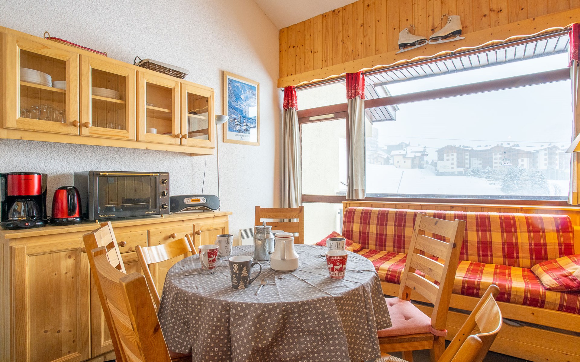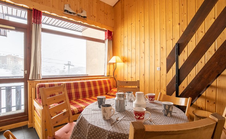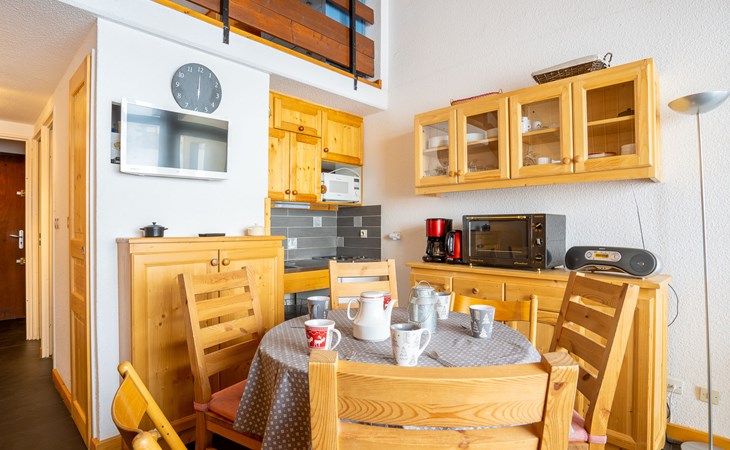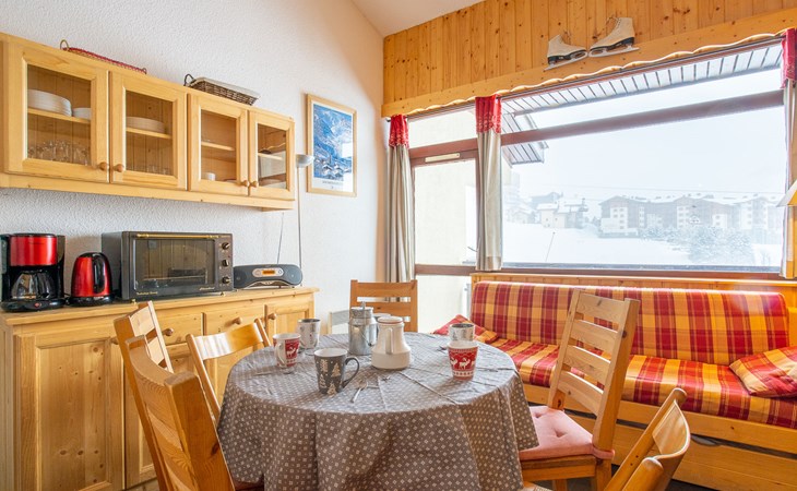 Small residence "Les Asters", 5 storeys. In the district of Fontanettes 800 m from the centre of La Croisette, in a quiet position, 200 m from the skiing area. Public parking on the road. Grocery, shopping centre 800 m, 10 minute walk to the centre, bus stop " ARRET les fontanettes" 500 m. Sports centre 800 m, chair lift, skisport facilities 200 m, slopes 50 m, ski rental 50 m, ski school 800 m, cross country ski track 1.5 km. Well-known ski regions can easily be reached: Les 3 Vallées. Please note: no lift. The photograph shows a typical example. Additional accommodations can be booked.