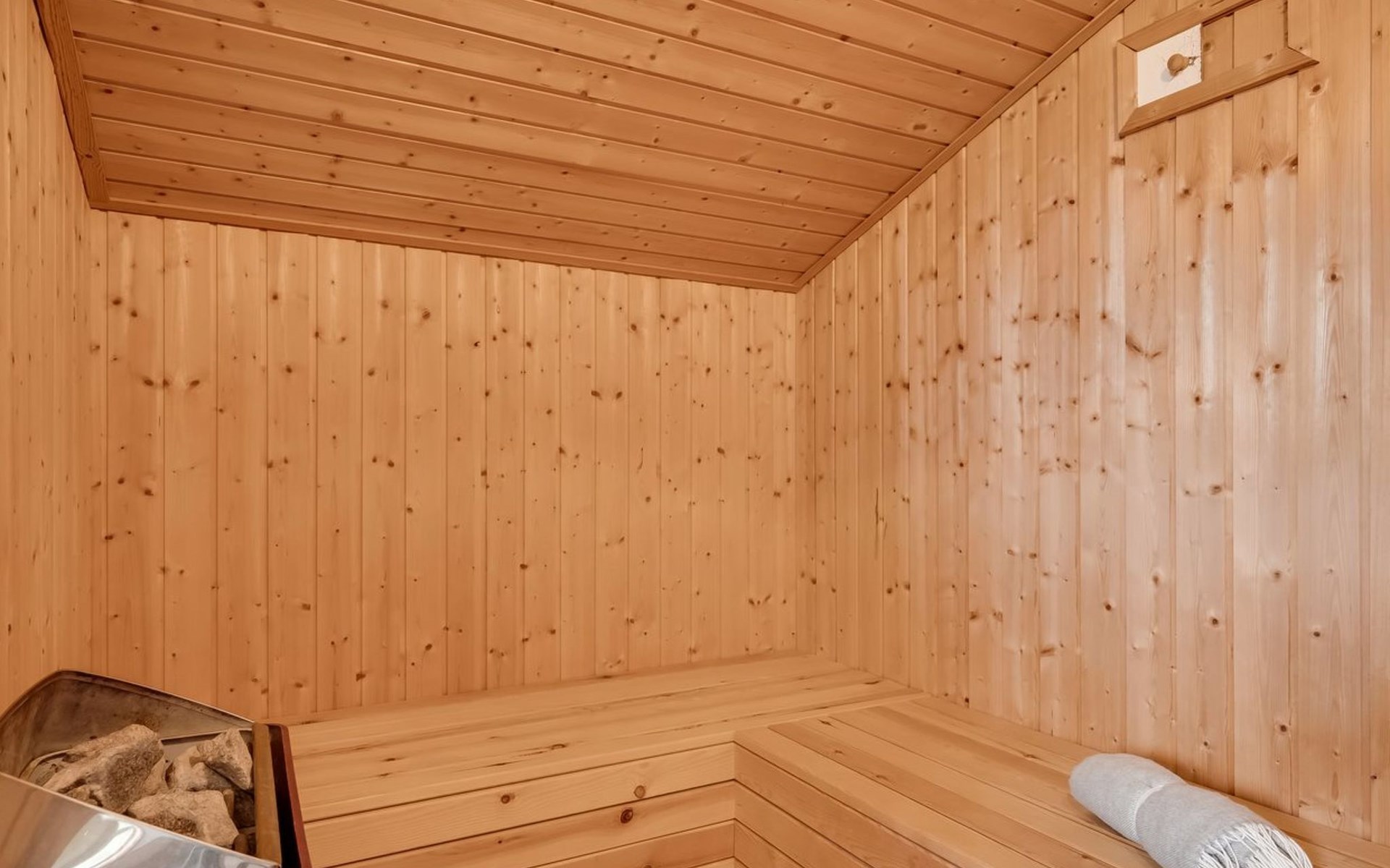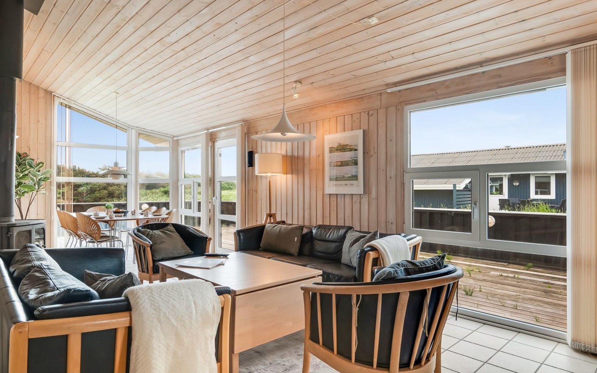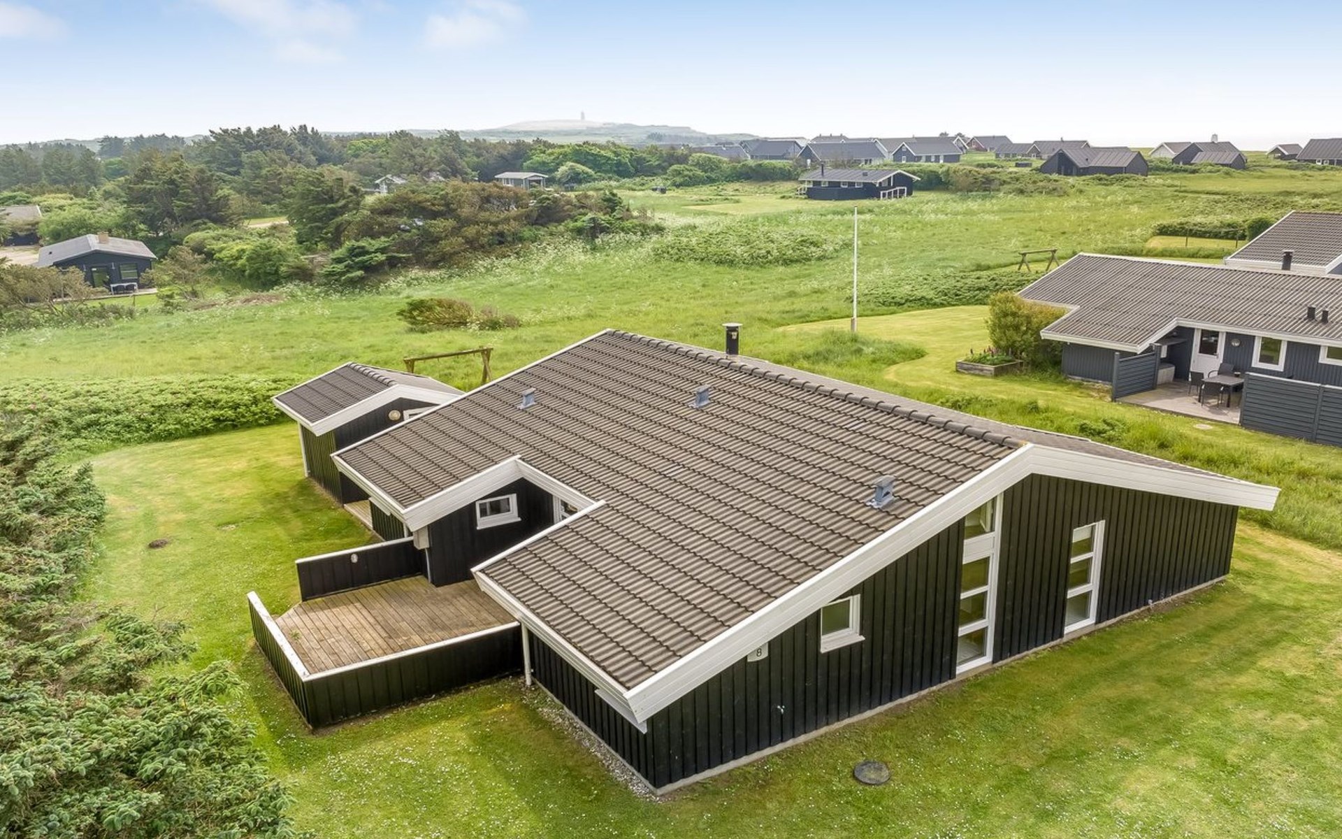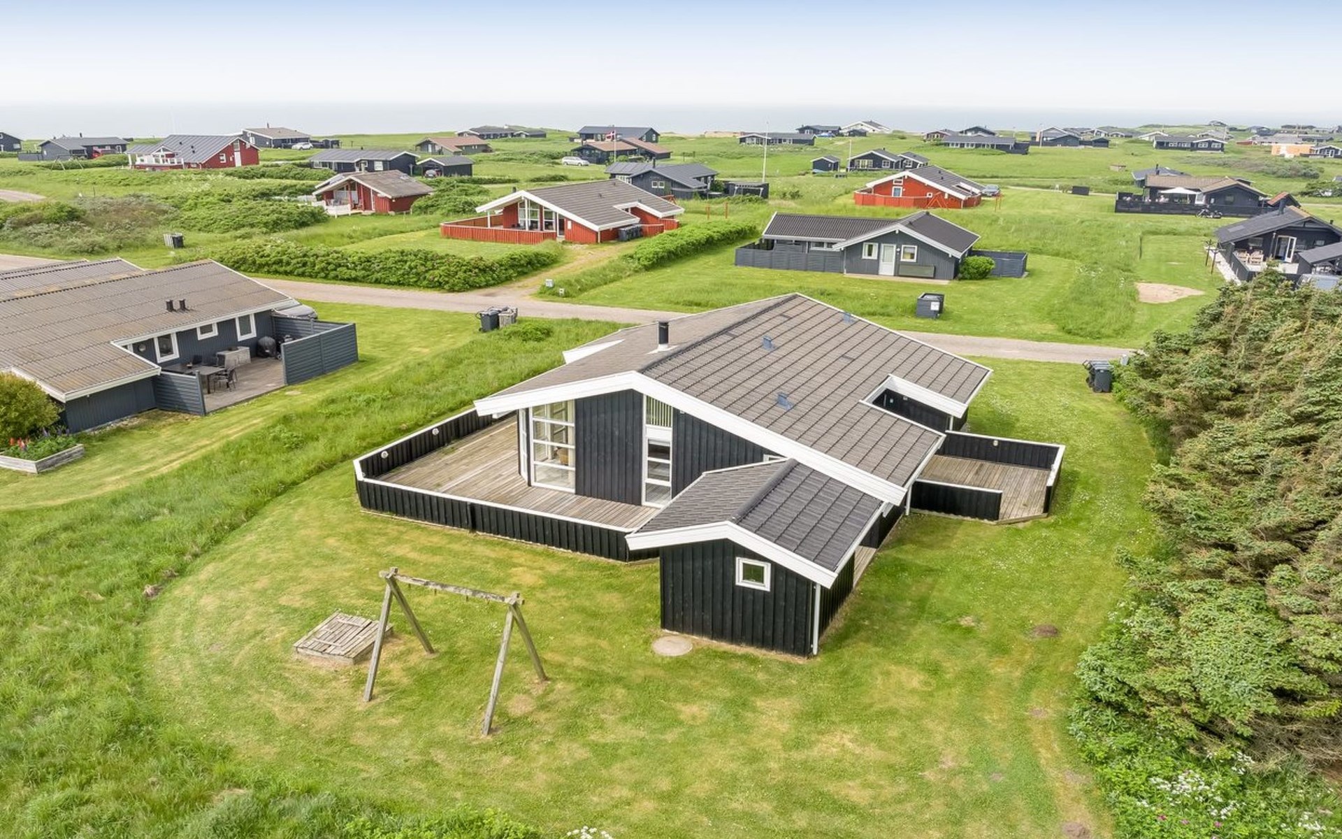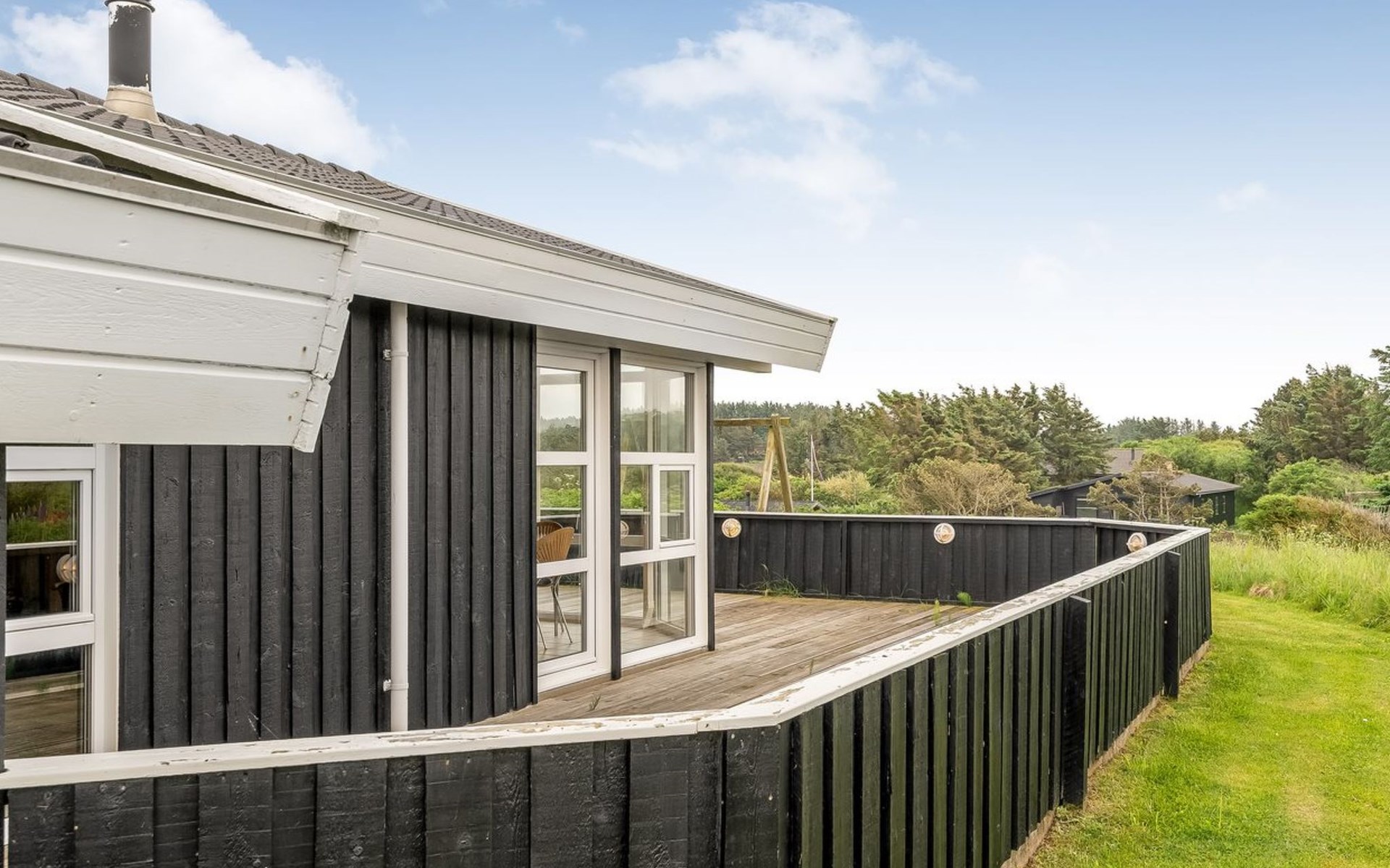 Single-family house, built in 1998. 150 m from the sea. Private: natural state property 1'114 m2. Terrace (65 m2), children's playground. In the house: sauna, washing machine, tumble dryer. Parking at the house. Grocery 400 m.