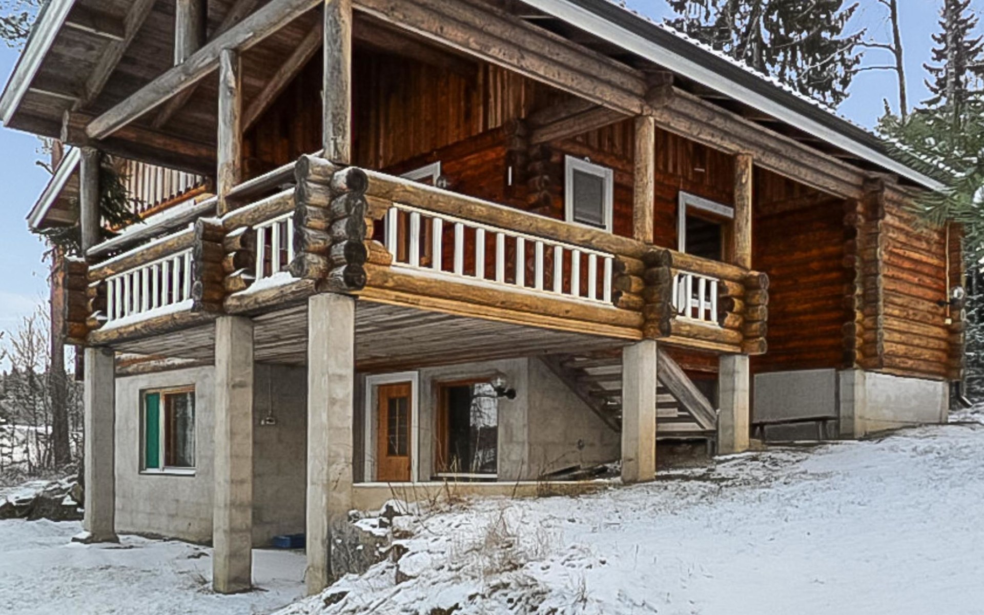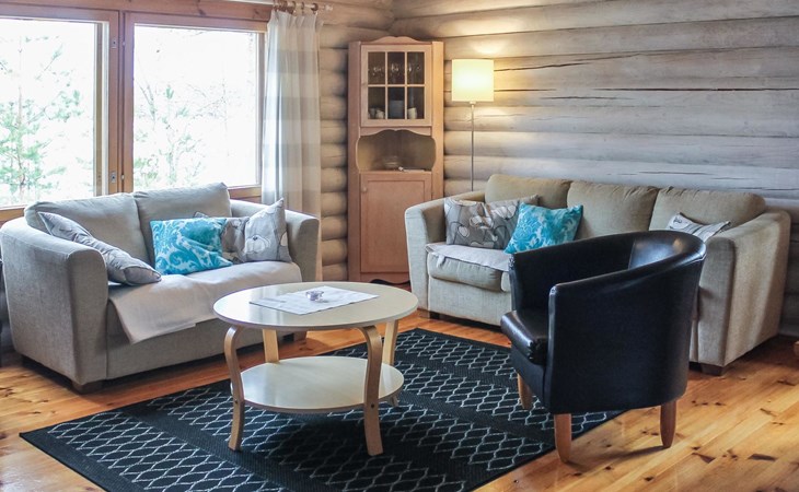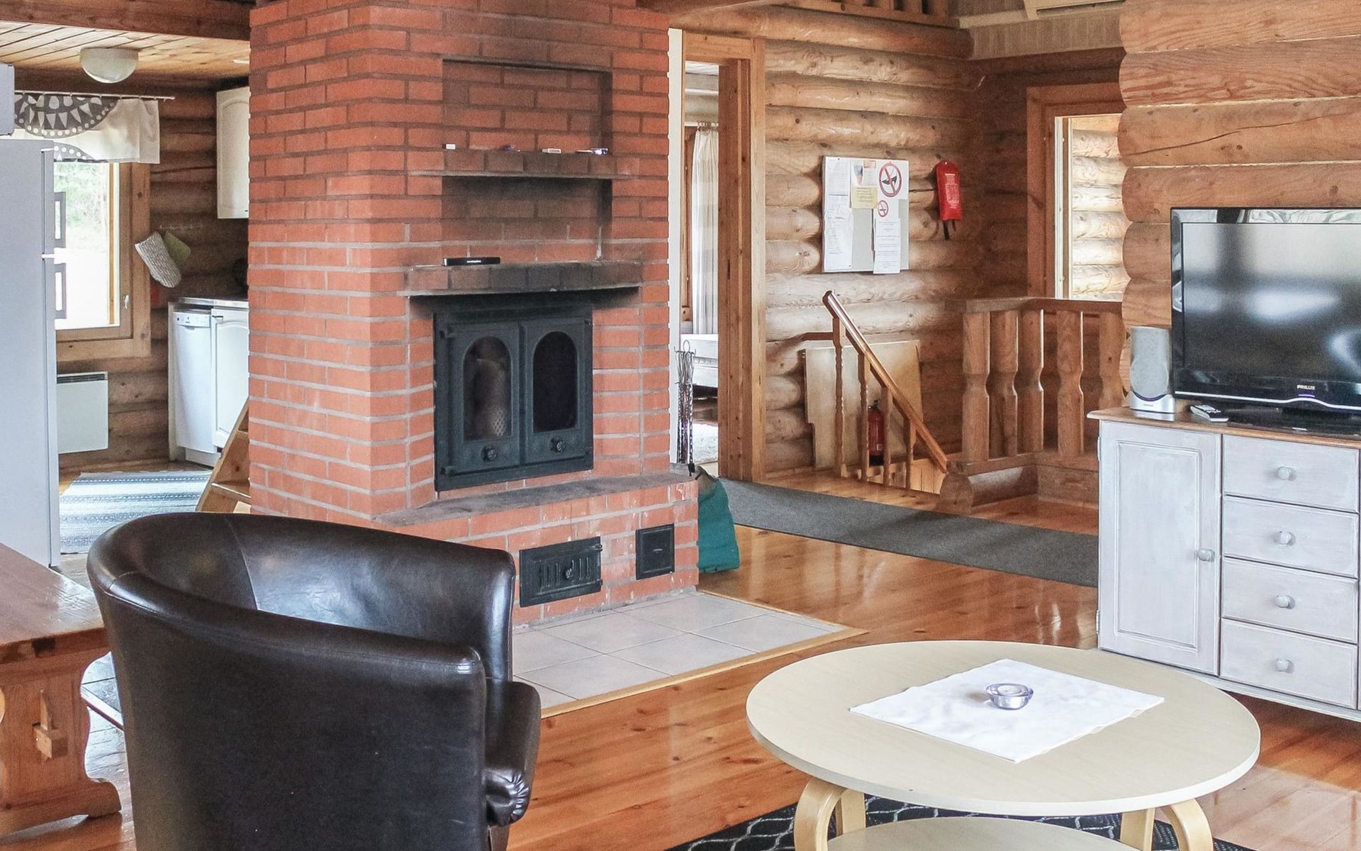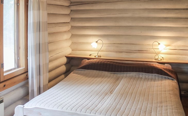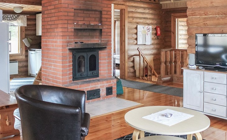 Log cabin 1995, (renovated 01/2010). Downstairs: hearth room, bedroom with 2 beds, washroom, sauna, veranda; upstairs: living room, bedroom with double bed, kitchen, sleeping loft (10 m², low room height) with 3 beds, veranda.